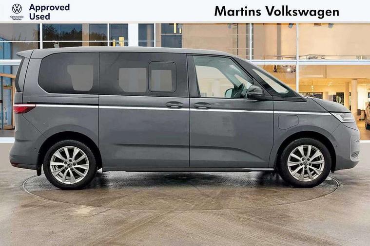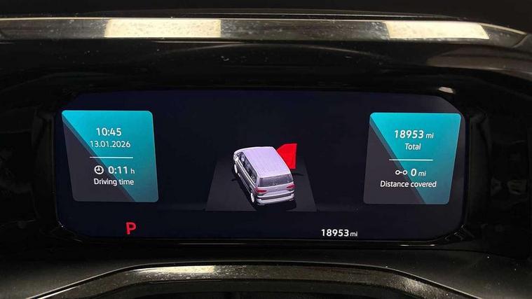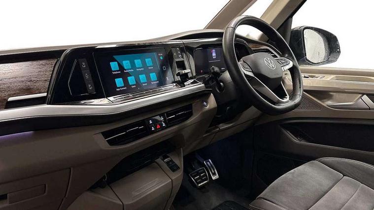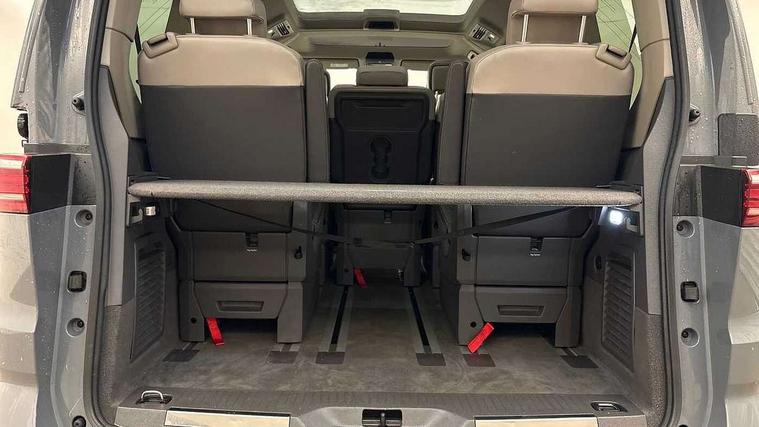 Adaptive cruise control with C2X including front assist and city emergency braking system, App-Connect incl. App-Connect Wireless for Apple CarPlay and Android Auto, Digital Cockpit Pro with 10.25" Display, Driver alert system, Dynamic road sign display, eCall emergency system, Electric tailgate with virtual pedal, Electrically-operated tailgate opening and closing function (Easy open), operated via foot movement under rear tailgate, Emergency assist, Lane keeping system Lane Assist, Mobile phone interface, PAS, Semi-automated driving assistance, Socket AC Type 2, Travel assist, Voice control system including Alexa web app, We connect preparation, 1 x 6 metre charging cables - 16amp AC cable for wallbox chargepoints (mode 3), Electronic differential lock, 2 USB-C ports in front and 4 USB-C ports in passenger compartment, Digital radio reception (DAB+), Additional interior noise reduction measures, Advanced high beam control dynamic light assist for LED matrix headlamps, Automatic headlight control with welcome home lights, Body coloured exterior door handles, Break away auto dimming rear view interior mirror, Chrome trim decorative strip mid-way on side and rear, Dynamic headlight range control with dynamic cornering light, Electric sliding rear side door on the left/right with easy open feature, Electrically adjustable, heated and folding door mirrors, Front fog lights, Glossy black painted radiator grille with 2 illuminated chrome trims, Heated rear window with window wiper and washer system, Heated windscreen, High gloss black exterior mirror housing, IQ.Light LED matrix headlamps with LED separate daytime running light, Laminated safety glass windshield, heat and sound insulating, LED 3rd brake lamp, LED rear combination lamps, Rear wiper, Sliding windows in front sliding doors and fixed rear windows, Stainless steel tailgate trim, Surround lighting in door area and tailgate with logo projection in door area, Windshield wiper intermittent control with rain sensor, 1 x 12V sockets on the dash panel, 12V socket in passenger compartment, 3 seat bench in 3rd row, 30 colours ambient interior lighting and tailgate surround lighting, 7 single seats removable/movable, Carpet mats in cab, Climatronic 3 zone air conditioning with 2nd evaporator, auxiliary heater, air conditioned headliner and additional passenger control, Front and rear head restraints, Grab handles on A pillar for access, on driver and front passenger side, Heated steering wheel, Height adjustable seats, Height and longitudinal adjustment steering wheel with gear shift paddles, Illumination lockable glovebox compartment, ISOFIX (including i-size) and top tether in all seats in 2nd and 3rd rows, LED luggage compartment lighting X 2, Load compartment partition to 20kg with bag hooks and luggage net, Luggage compartment lid power latching with unlatching from inside, Multifunction leather steering wheel with tiptronic, Reinforced carpet floor covering in passenger compartment, Removable armrests for front seats with power adjustable lumbar support and folding table for 2nd row passenger seats, Removable armrests in 2nd row passenger seats, Single front passenger seat, Slidable multifunction table/centre console with 3 cup holders, Stainless steel pedals, Storage compartment under the 2nd and 3rd row seat and two waste bins, Sun visors with illuminated vanity mirrors and airbag warning label on front passenger sun visors, 3x3 point rear seat belts, ABS, Automatic post collision braking system, Autonomous emergency braking front assist with pedestrian and cyclist monitoring, Driver and front passenger airbag with front passenger airbag deactivation, Electric childproof lock, Electronic stability control (ESC) and Electromechanical brake booster, ESP, First aid kit with warning triangle and safety vest, Front disc brakes, Hill hold assist, Seat belt warning for the drivers and all passengers seats if unfastened, Side and curtain airbags for driver and front passenger, curtain airbags for outer seats in rear, centre airbag in front, Single tone horn, Traction control, Tyre pressure monitoring system, Anti theft alarm system with interior monitoring in cab, backup horn and towing protection, Central locking system keyless entry with touch two stage unlocking, Start/stop button on centre console, Dark woodgrain optic decorative inserts,