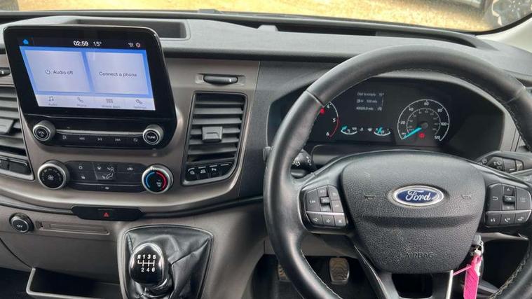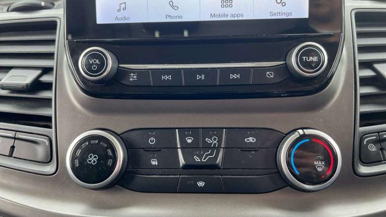 Curvature Control, Emergency brake warning, Ford SYNC with 8" TFT screen, PAS, Selectable drive mode, Vehicle maintenance monitor, Warning lights, Audio controls mounted on steering wheel, Automatic lights and wipers, Heated windscreen, Part body colour front bumper, Power foldable and heated door mirrors, Power windows, Projector style headlights with static cornering lights, Rear bumper with integral step, Rear mudflaps, Silver front grille, Wide bodyside mouldings, Cloth upholstery, Driver's armrest, Dual passenger seat tray and table, Fold out front passenger seat table, Lockable glove box, Reach and rake adjustable steering column, Driver seatbelt reminder, 2nd remote key, Remote central dead - locking, 2 x 12V power outlets, ABS + ESP + Hill start assist, Electronic dynamic cornering control, Side wind mitigation,