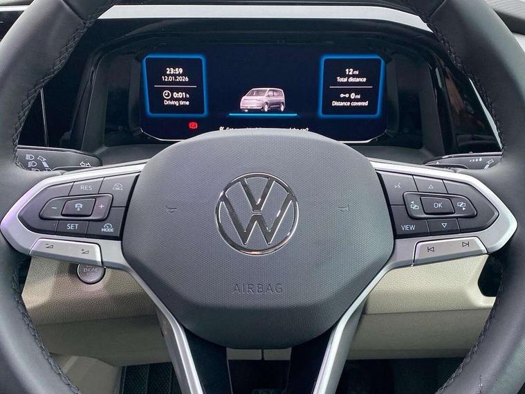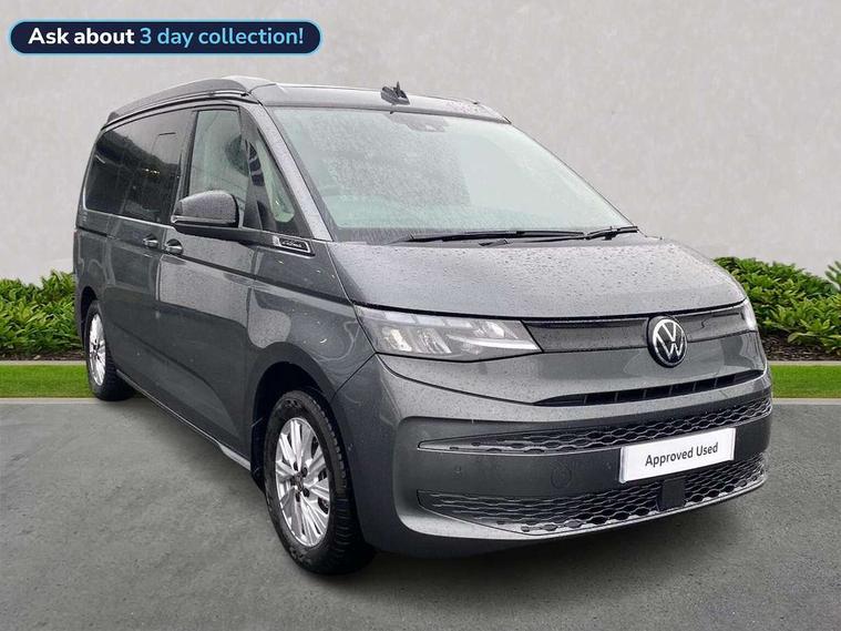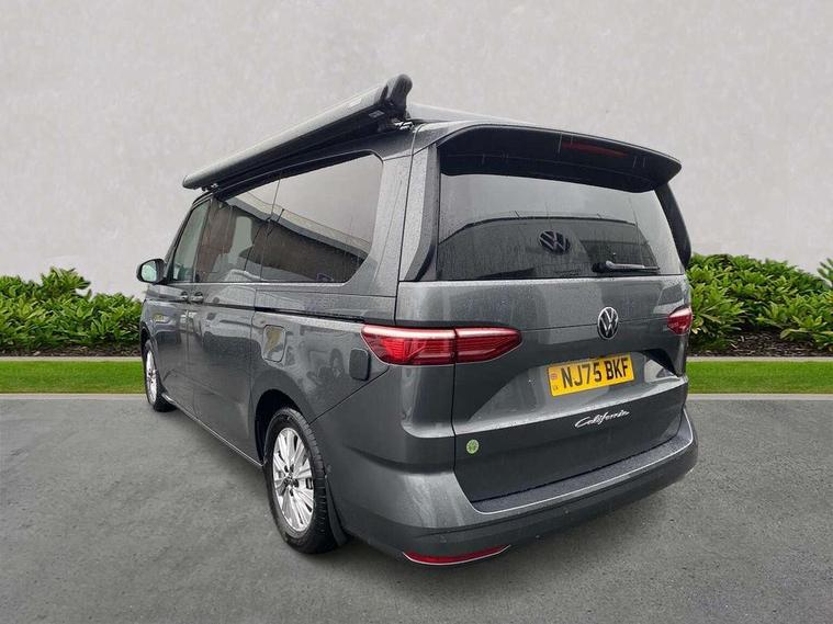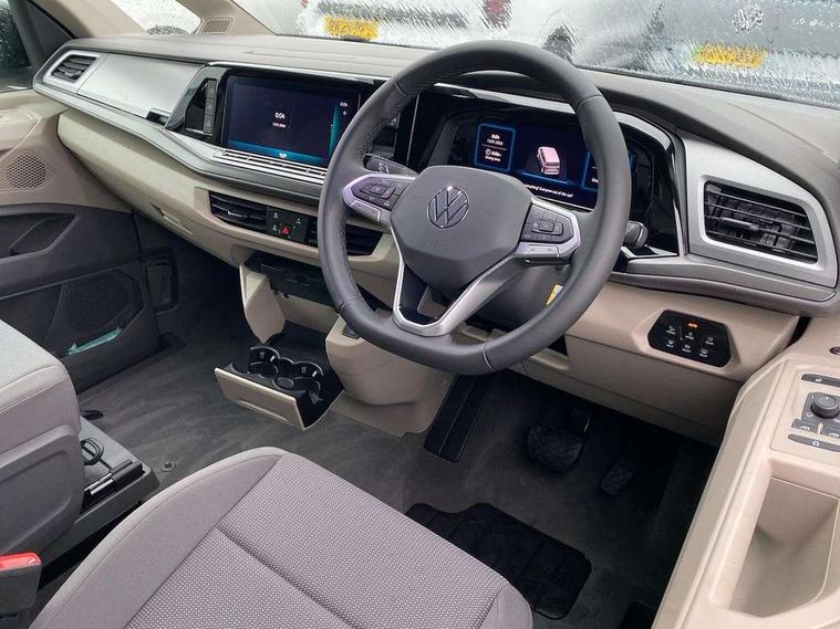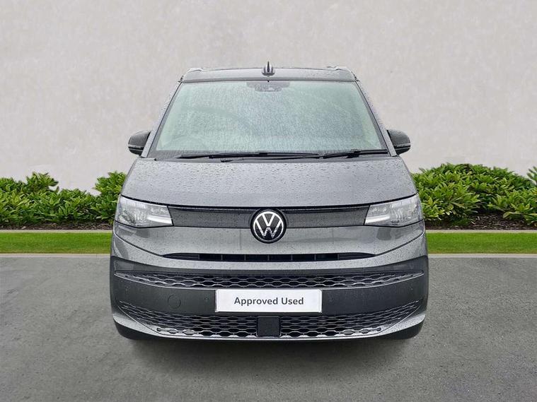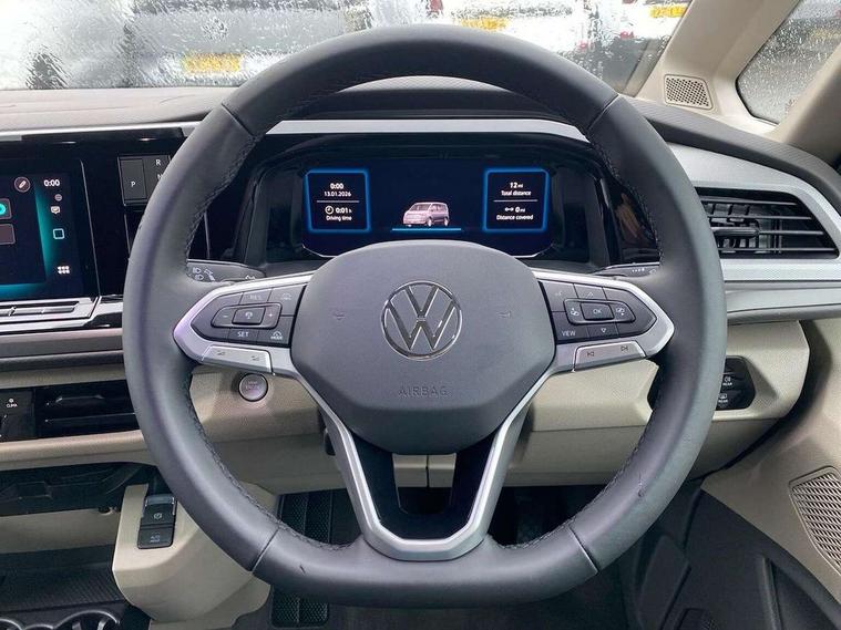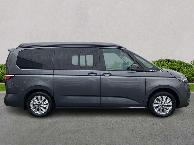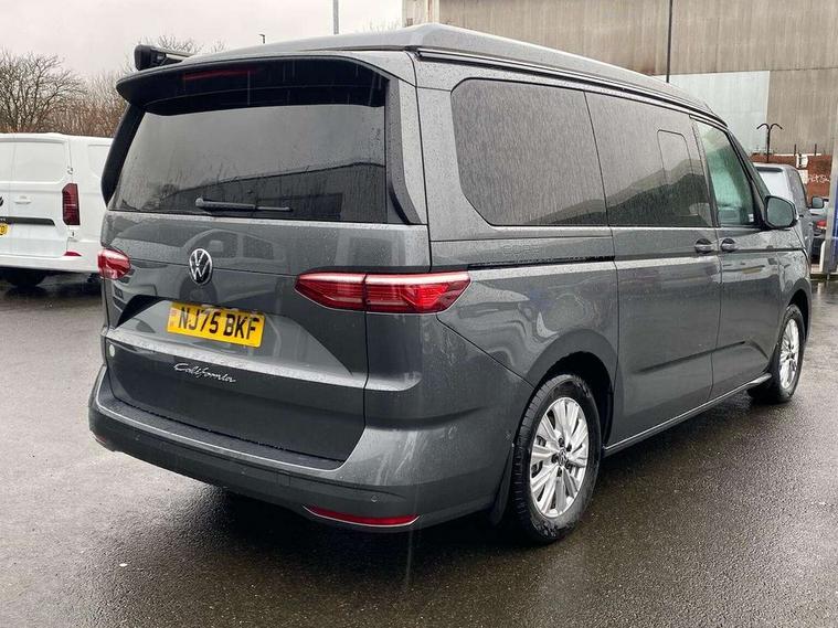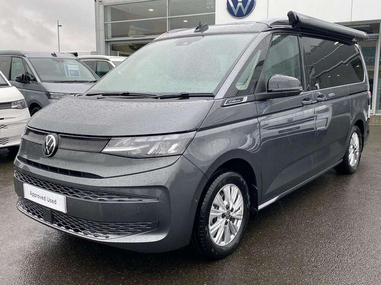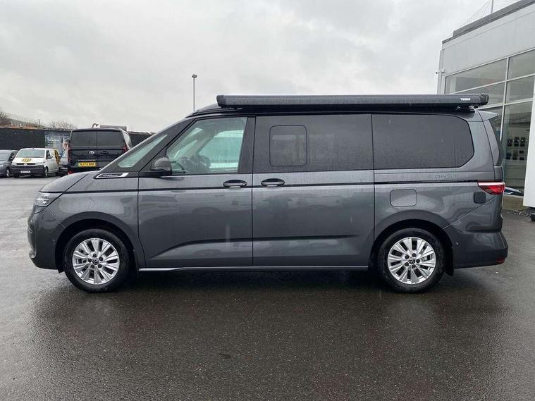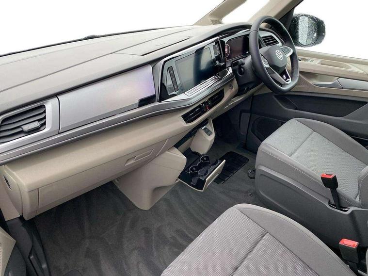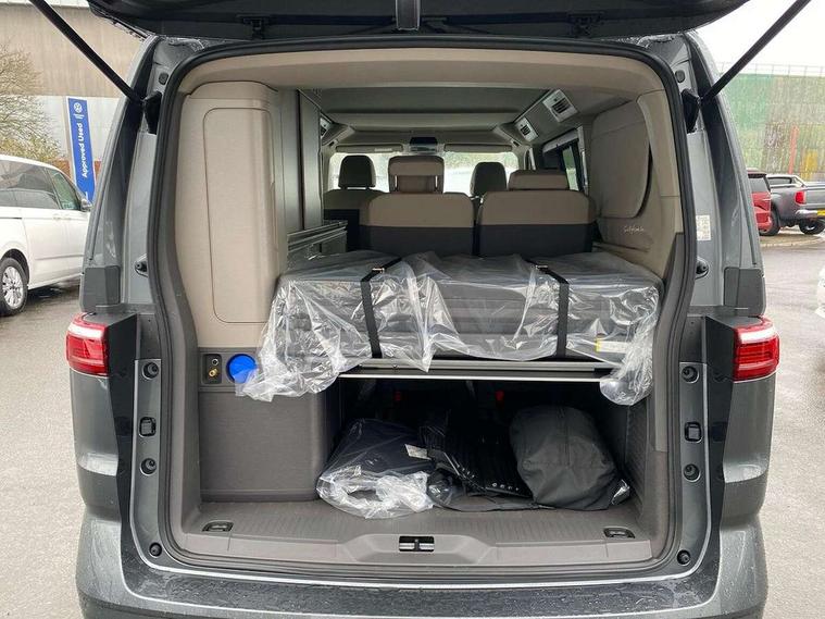 Adaptive cruise control ACC stop and go, Advanced driver attention and drowsiness monitor, California on tour app, Car2X high variant, Digital cockpit pro, Dynamic road sign display, eCall emergency system, Front cross traffic assist, Function control unit, IDA voice assistant and voice enhancer, Lane change assistant, Lane keeping system Lane Assist, Mobile phone interface, Motorhome Registration, Multifunction camera, PAS, Preparation for online services, Preparation for We connect and We connect plus, Servotronic speed sensitive power steering, Speed limiter and predicative speed limiter, Tailgate latching without unlatching function from inside, Turn assist with evasive assistance, Volkswagen wired and wireless app connect, 2nd and 3rd auxiliary batteries with low -voltage converter, Battery 380 A (68 Ah), Battery without capacity specification, Standard battery/generator, 10.4 inch infotainment system with scalable module options, 2 USB-C ports at the front, 4 USB-C charging sockets in the passenger compartment, 8 Speakers, Digital radio reception (DAB), Electro hydraulic elevating roof, with three windows including one front passengers panorama opening, canvas in Basalt Grey, Four speed control for windscreen wipers, Heat and sound insulating laminated safety glass windshield, Heated windscreen, High gloss black door mirrors, Interior noise reduction, LED 3rd brake light, LED Headlights, Molding between headlamps painted to glossy black, Nameplate set California, Poor weather light including cornering light, Radiator grille, Rear boot, Red LED tail lights, Sliding window in front and fixed window in rear in load/passenger compartment on driver side, Windscreen wiper intermittent control, 2 single seats with integrated seatbelt and sleeping mat, 230V external inlet with charging feature for vehicle batteries, 230V inverter with socket on driver seat, 3 Zone climatronic air conditioning system, Additional interior noise attenuation, Armrest on front swivel seats in both sides with electric lumbar support, Auxiliary pre-heater, Camper interior lighting, Darkening roller blinds and thermo mats, Drawers under the outer seats in the cab and passenger compartment & 2 waste bins, Front and rear headrests, Interior lighting on pop-up roof, tailgate & summer kitchen and ambient lighting in roof frame, Lockable glove compartment without lighting, Plastic floor covering in passenger/load compartment, Single front passenger seat, Storage compartment left and right 1st row of seats, Summer kitchen with outside folding table and 230-V outlet for cooking, in Raven/Platinum Sandwick, Sun visors with mirror, illuminated, ticket holder on the driver side, with airbag label on sun visor and B-pillar, Surround lighting in door area, Swivel seat on left with height adjustable including drawer, Swivel seat on right with height adjustable including drawer, Without loading edge protection, Without luggage compartment cover, Lighting package - California, 2x3 point automatic seatbelts at the rear outside with ECE label, with/without belt tensioner, Autonomous emergency braking, Child locks, Driver and front passenger airbags with front passenger airbag deactivation button, First aid kit with warning triangle and safety vest, Front Assist with pedestrian and cyclist detection, Front disc brakes, Height adjustable three point automatic seatbelts at front with belt and end fitting tensioners, Occupants detection only display, Side and curtain airbags for driver and front passenger, curtain airbags for outer seats in rear, centre airbag in front, Swerve support and oncoming vehicle braking when turning, Tyre pressure loss indicator, Warning signal and warning lamp for front and rear seat belts not fastened, Anti theft alarm system with interior monitoring in cab, backup horn and towing protection, Central locking + keyless locking and starting system Keyless Advanced with safe lock, Lockable wheel bolts, Preparation for alcohol interlock, 5+ Promise service plan, Scale light grey decorative inlays, Tool kit, Trims for alloy wheels, Tyre mobility kit, Without spare wheel,