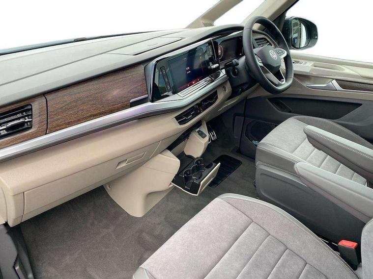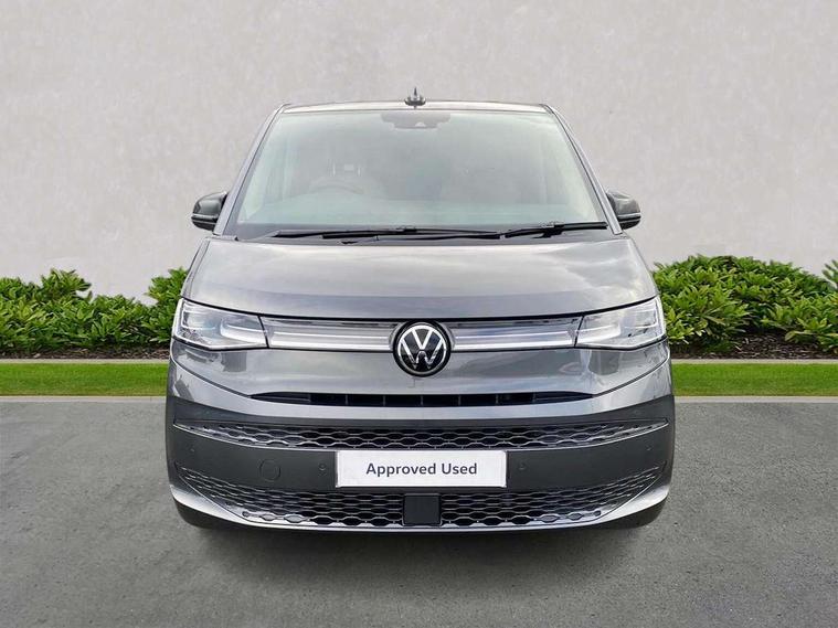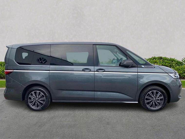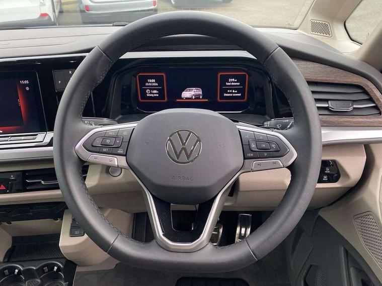 Adaptive cruise control with C2X including front assist and city emergency braking system, Digital Cockpit Pro with 10.25" colour display with adaptable display includes navigation map display, telephone contact images and audio information, Discover media pro navi system with 10" colour touch incl DAB+radio/appconnect for apple carplay/android auto/streaming and internet/gesture control, Driver alert system, Dynamic road sign display, eCall emergency system, Electrically-operated tailgate opening and closing function (Easy open), operated via foot movement under rear tailgate, Emergency assist, Front Cross Traffic Alert, Lane change system with side assist including blind spot monitor, rear traffic alert and exit warning system, Lane keeping system Lane Assist, Mobile phone interface, PAS, Semi-automated driving assistance, Tailgate, Travel assist, Voice control system including Alexa web app, We connect preparation, Electronic differential lock, 2 USB-C ports in front and 4 USB-C ports in passenger compartment, Additional interior noise reduction measures, Advanced high beam control dynamic light assist for LED matrix headlamps, Automatic headlight control with welcome home lights, Body coloured exterior door handles, Break away auto dimming rear view interior mirror, Chrome trim decorative strip mid-way on side and rear, Dynamic headlight range control with dynamic cornering light, Electrically adjustable, heated and folding door mirrors, Front fog lights, Glossy black painted radiator grille with 2 illuminated chrome trims, Heated rear window with window wiper and washer system, Heated windscreen, High gloss black exterior mirror housing, IQ.Light LED matrix headlamps with LED separate daytime running light, Laminated safety glass windshield, heat and sound insulating, LED 3rd brake lamp, LED rear combination lamps, Rear wiper, Stainless steel tailgate trim, Surround lighting in door area and tailgate with logo projection in door area, Windshield wiper intermittent control with rain sensor, 1 x 12V sockets on the dash panel, 12V socket in passenger compartment, 3 seat bench in 3rd row, 30 colours ambient interior lighting and tailgate surround lighting, 7 single seats removable/movable, Carpet mats in cab, Climatronic 3 zone air conditioning with additional control panel in passenger compartment, Front and rear head restraints, Grab handles on A pillar for access, on driver and front passenger side, Height adjustable seats, Height and longitudinal adjustment steering wheel with gear shift paddles, Illumination lockable glovebox compartment, ISOFIX (including i-size) and top tether in all seats in 2nd and 3rd rows, LED luggage compartment lighting X 2, Load compartment partition to 20kg with bag hooks and luggage net, Luggage compartment lid power latching with unlatching from inside, Multifunction leather steering wheel with tiptronic, Reinforced carpet floor covering in passenger compartment, Removable armrests for front seats with power adjustable lumbar support and folding table for 2nd row passenger seats, Single front passenger seat, Slidable multifunction table/centre console with 3 cup holders, Stainless steel pedals, Storage compartment under the 2nd and 3rd row seat and two waste bins, Sun visors with illuminated vanity mirror, ticket holder on driver side with airbag warning label on sunvisor and B-pillar, Easy open package - Multivan, 3x3 point rear seat belts, ABS, Automatic post collision braking system, Autonomous emergency braking front assist with pedestrian and cyclist monitoring, Driver and front passenger airbag with front passenger airbag deactivation, Electric childproof lock, Electronic stability control (ESC) and Electromechanical brake booster, ESP, First aid kit with warning triangle and safety vest, Front disc brakes, Hill hold assist, Seat belt warning for the drivers and all passengers seats if unfastened, Side and curtain airbags for driver and front passenger, curtain airbags for outer seats in rear, centre airbag in front, Single tone horn, Traction control, Tyre pressure monitoring system, Anti theft alarm system with interior monitoring in cab, backup horn and towing protection, Central locking system with interior control and safe lock, Keyless advanced with keyless entry, Start/stop button on centre console, Dark woodgrain optic decorative inserts,