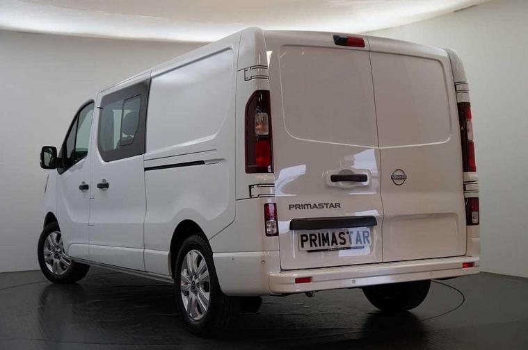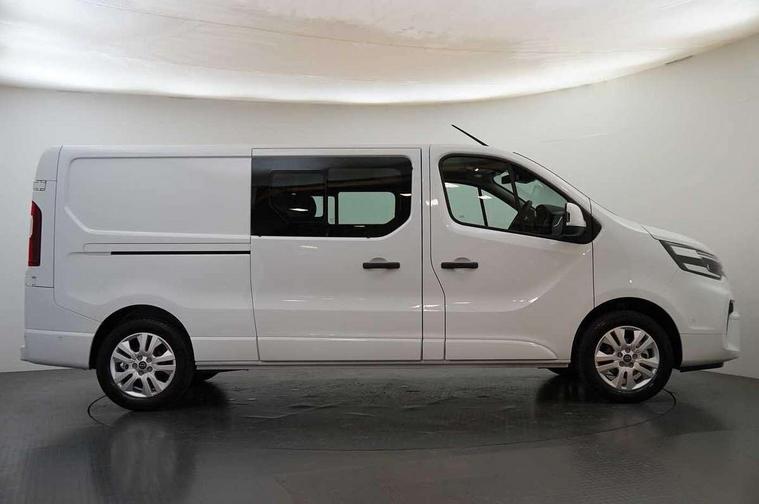 7" Colour TFT screen in dials dash, Blind Spot warning system, Bluetooth, Car phone pre installed, Driver drowsiness and attention warning, eCall, Front parking sensor, Intelligent Speed Assist (cruise control with speed limiter and traffic sign recognition), Lane departure warning system, Low fuel level warning light, Navigation system, Nissan connected services, PAS, Rear parking sensor, Rear view camera, Service indicator, Trip computer, AM/FM Radio, Apple Carplay/Android Auto, Audio switch on steering wheel, Aux port, Digital radio (DAB), Media center with 8" Touchscreen at centre of dashboard and multi-touch support, USB socket, 180 degree unglazed rear french doors, Automatic headlights and wipers, Blind spot mirror in sunvisor, Body coloured exterior mirrors, Body coloured front and rear bumper, side mouldings and rear columns, Daytime running lights, Electric front windows with one touch drivers window, Electric heated and folding door mirrors, Glazed left side sliding door, Glazed right sliding side door, High low headlights beam, LED front fog lights, LED headlights, Sliding window in sliding glazed doors, 2nd row (3 seats), 3 x cargo floor load mounting hooks on each side, Cloth upholstery, Cupholders on dashboard, Drivers armrest, Front automatic AC, Front head restraints, Glazed bulkhead, Height adjustable driver seat with lumbar support, Imitation leather steering wheel, Passenger bench with underseat storage, Steering wheel rake adjustment, Steering wheel reach adjustment, Automatic door locking (at 5mph), Driver's airbag, Passenger airbag, Tyre pressure monitoring system, Alcohol interlock predisposition, Deadlocks, I Key, Insurance approved immobiliser, Radio frequency remote central locking, Thatcham alarm system, 12V socket in load area, ABS + EBD, Automatic forward emergency braking system (AEBS), ESP, Hill start assist and Extended grip, 17" alloy wheels, Full size spare wheel,