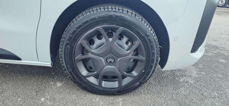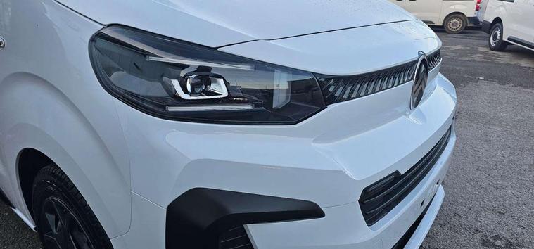 10" digital instrumental cluster, Citroen connect box with emergency and assistance system, Cruise control with speed limiter, Driver Attention Alert, level - 3, Electronic power steering (EPS), Intelligent speed assistant, Lane keeping assist, Locking fuel cap, Multi-function on-board trip computer, Rear parking distance sensor, Rev counter with maintenance and gear efficiency indicators (GEI), TPMS (Tyre pressure monitoring system), 10" Colour touchscreen + Citroen connect DAB radio, Apple CarPlay and Android Auto, Bluetooth handsfree, USB socket, bituner, coffee break alert, Audio controls mounted on steering wheel, Flexible multi-functional short antenna (200mm), Two speakers and two tweeters, Automatic headlamps on/off, Automatic two speed and intermittent front wipers, Eco LED headlamps with integrated daytime running lights, Electrically adjustable + heated door mirrors, Front electric windows with one touch operation and anti-pinch, Front windows tinted to 30 percentage opacity, High beam assist, High level third brake light, Laminated acoustic windscreen, Offside and nearside sliding side access doors, Painted decor strips, Painted exterior door handles, Painted front bumpers, Painted rear bumper corners, Preparation for towbar-wiring and connector for towbar interface, Rain sensitive windscreen wipers, 12V socket in cabin, 12V socket in lower glove box (1 only in cabin), Air recirculation facility, Chilled glovebox facility, Closed upper and open lower gloveboxes, Cloth upholstery, Cup holders for driver and passenger in top of dashboard, Dashboard storage areas, Ergonomic 6-way adjustable driver's seat with reach, rake, height and lumbar adjustment, Fixed floor mounted load restraint lashing eyes x8, Front door pockets with 1.5L bottle holder, Hard plastic floor protection in cabin, Height adjustable head restraints for driver and front passengers seats, Height and reach adjustable steering wheel, Interior roof trim, Load through bulkhead and dual front passengers bench seat with under seat storage tray, Manual air conditioning, Overhead console with 1 ceiling lamp (dome type and 3 lamps), Polyurethane steering wheel, TPO plastic flooring, USB socket in cabin (dashboard), Connected nav pack with dynamic surround view - Dispatch, Automatic fuel cut-off and door unlocking in event of accident, Door opening warning and audible lights on warning, Driver and front passenger's airbags with passenger's airbag deactivate switch, Height-adjustable 3-point pre-tensioner seat belts with force limiter, Unfastened seat belt warning for driver and passengers, Dashboard mounted central locking push button and auto locking above 7mph, Perimeter and volumetric thatcham category 1 approved alarm, Remote central locking with deadlocking, selective cab and load area locking via 3 button plip remote control key, Rolling code transponder immobiliser, ABS, Advance emergency braking system, EBA, Electronic brake force distribution (EBFD), ESC, Hill start assist, Manual parking brake, Mistral black dashboard trim with liquid paladium decor strip in mid-section, Michelin Agilis tyres - 215/60 R17C,
