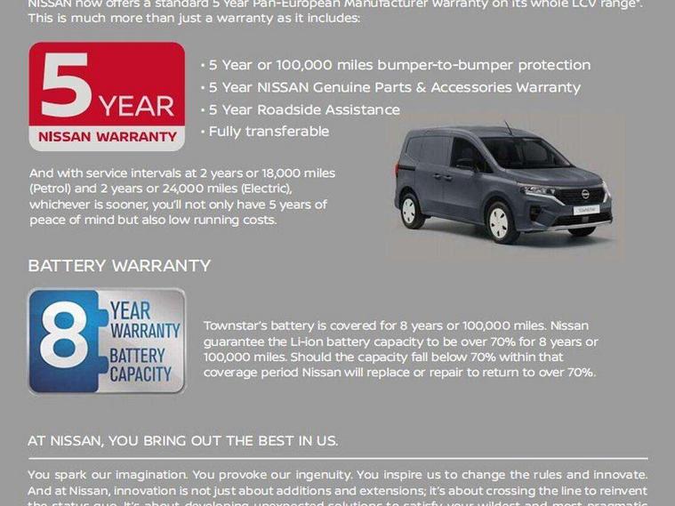 7" TFT colour display, 8" colour touchscreen infotainment system with Apple carplay/android auto and Navigation, Cruise control with speed limiter, Driver attention warning, eCall emergency system, Emergency lane keeping assist, Front, side and rear parking sensor, Lane departure warning system, PAS, Rear view camera, Smartphone holder, 180 degree opening paneled rear door, Auto high low beam, Automatic lights and wipers, Body coloured exterior door handles, Body coloured exterior door rails, Electric front windows with one touch drivers window, Electrically adjustable, folding and heated door mirrors, LED front fog lights, LED headlights with daytime running light, Nearside side loading door, Offside side loading door, Passenger side wide view mirror, Automatic dual zone air conditioning, Centre console with storage and armrest, Cloth upholstery, Full width bulkhead, Height adjustable driver seat, LED lighting in load area, Load lashing points, Advanced emergency braking with pedestrian/cyclist protection, Driver and passenger seatbelt reminder, Driver's airbag, Passenger airbag, front side and front curtain airbags, Tyre pressure monitoring system, Alarm Predisposition, Alcohol interlock predisposition, Central door locking, Deadlocks, Keyless entry and go, 12V socket in load area, Electronic parking brake, 16" steel wheels, Full size spare wheel, Full wheel trims,