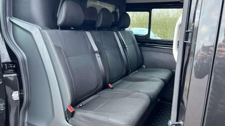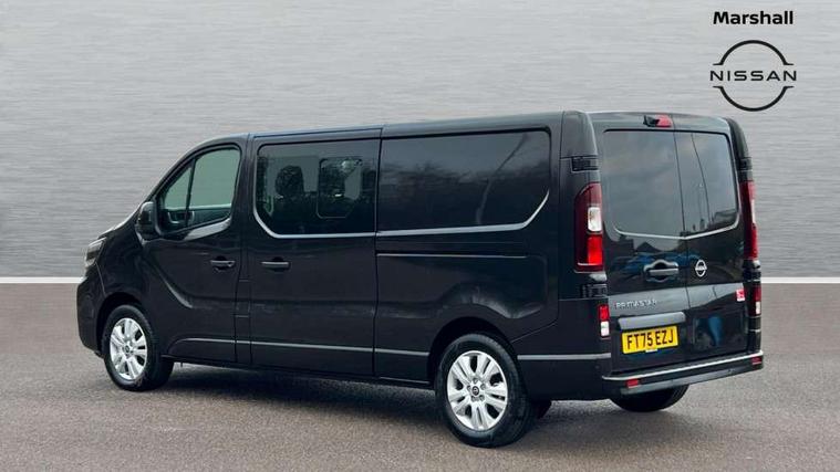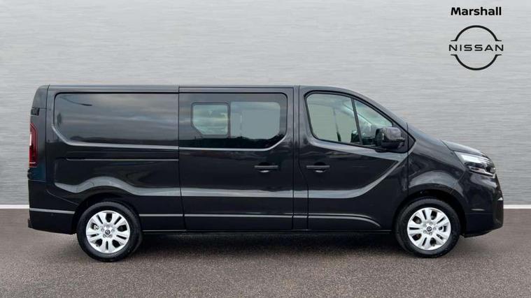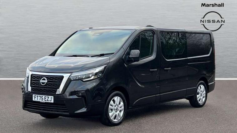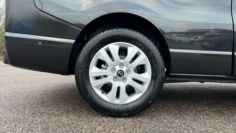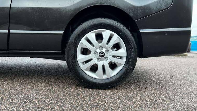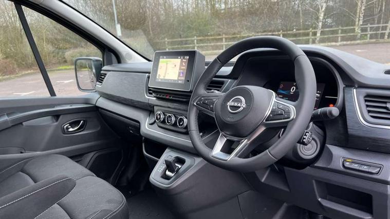 7" Colour TFT screen in dials dash, Blind Spot warning system, Bluetooth, Car phone pre installed, Driver drowsiness and attention warning, eCall, Front parking sensor, Intelligent Speed Assist (cruise control with speed limiter and traffic sign recognition), Lane departure warning system, Low fuel level warning light, Navigation system, Nissan connected services, PAS, Rear parking sensor, Rear view camera, Service indicator, Trip computer, AM/FM Radio, Apple Carplay/Android Auto, Audio switch on steering wheel, Aux port, Digital radio (DAB), Media center with 8" Touchscreen at centre of dashboard and multi-touch support, USB socket, 180 degree unglazed rear french doors, Automatic headlights and wipers, Blind spot mirror in sunvisor, Body coloured exterior mirrors, Body coloured front and rear bumper, side mouldings and rear columns, Daytime running lights, Electric front windows with one touch drivers window, Electric heated and folding door mirrors, Glazed left side sliding door, Glazed right sliding side door, High low headlights beam, LED front fog lights, LED headlights, Sliding window in sliding glazed doors, 2nd row (3 seats), 3 x cargo floor load mounting hooks on each side, Cloth upholstery, Cupholders on dashboard, Drivers armrest, Front automatic AC, Front head restraints, Glazed bulkhead, Height adjustable driver seat with lumbar support, Imitation leather steering wheel, Passenger bench with underseat storage, Steering wheel rake adjustment, Steering wheel reach adjustment, Automatic door locking (at 5mph), Driver's airbag, Passenger airbag, Tyre pressure monitoring system, Alcohol interlock predisposition, Deadlocks, I Key, Insurance approved immobiliser, Radio frequency remote central locking, Thatcham alarm system, 12V socket in load area, ABS + EBD, Automatic forward emergency braking system (AEBS), ESP, Hill start assist and Extended grip, 17" alloy wheels, Full size spare wheel,