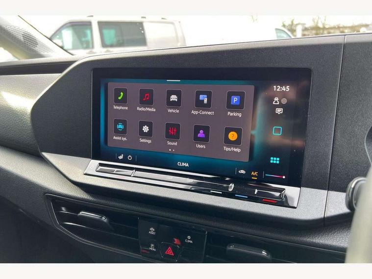 Bluetooth - Mobile phone interface, Car2X technology, Driver alert system, eCall emergency system, Intelligent Speed Assist, Lane assist, Seatbelt warning indicator, Service indicator, Start-stop system with regenerative braking, 2 USB interfaces type C in dashboard, DAB Radio, We Connect Basic Preparation, Automatic hazard light activation under emergency braking, Electric front windows, Heat insulating windscreen, Roof rail preparation, Windscreen wiper with variable intermittent delay and wash-wipe system, Dimming breakaway interior rear view mirror, Electronically controlled heating system, ergoComfort seats for driver, Interior light in headliner incorporting LED technology, Lockable glove compartment door with light, Manual heating and ventilation system, Manual height adjustment for front seats and seat cushion inclination and depth adjustment on drivers seat, Multi function leather steering wheel, Power-adjustable lumbar support for drivers seat, Reach and rake adjustable steering column, Six lashing points for securing loads, Steering wheel paddle shift, Storage compartments under driver and front passenger seats, Sun visors with mirror, airbag label on front passenger sun visor, 3-point seat belts in front, with pretensioner and height adjustment, Driver and front passenger airbag with front passenger airbag deactivation, Tyre pressure monitoring system, Anti-theft alarm system, interior monitoring, backup horn, and towing protection, Electronic engine immobiliser, Remote central locking with deadlocks, interior locking, Anti locking braking system (ABS), Automatic post collision braking system, Brake assist, Diesel particulate filter, Electric parking brake with auto hold function, Electronic brake force distribution (EBD), Electronic differential lock (EDL), Electronic stabilisation programme (ESP), Engine drag torque control (MSR), Hill hold assist, Traction control system (TCS), Decorative beige birch vein inserts, Full size wheel trims,