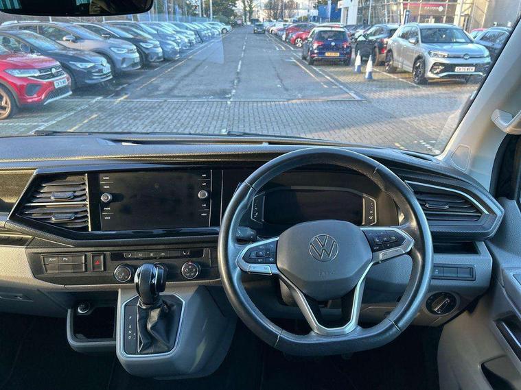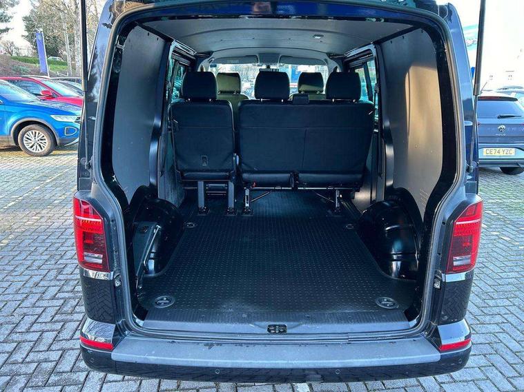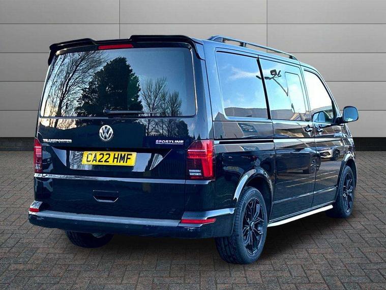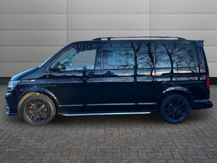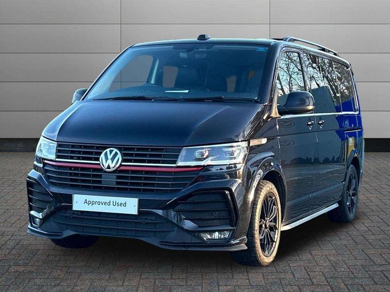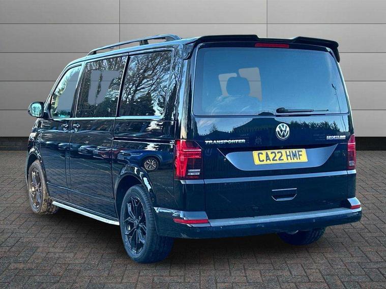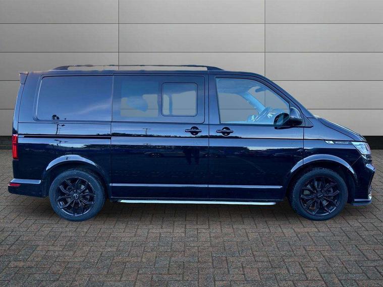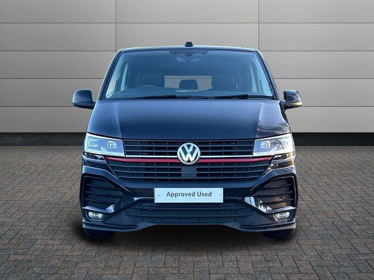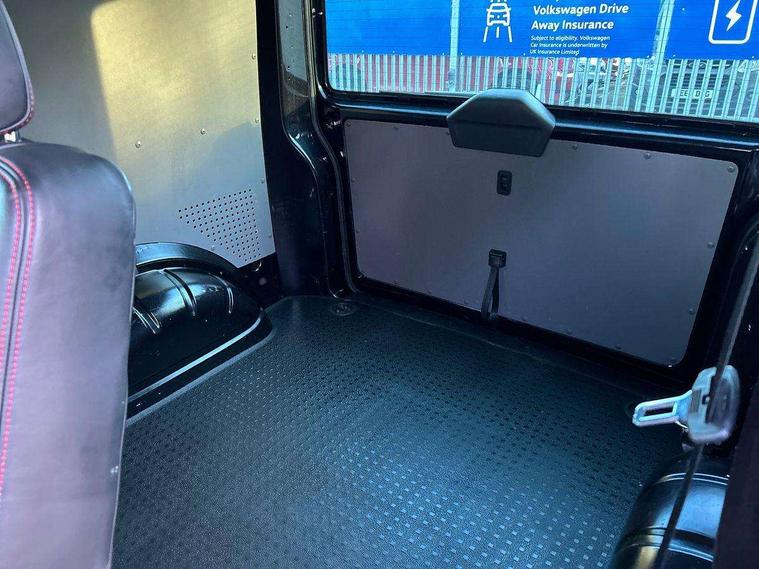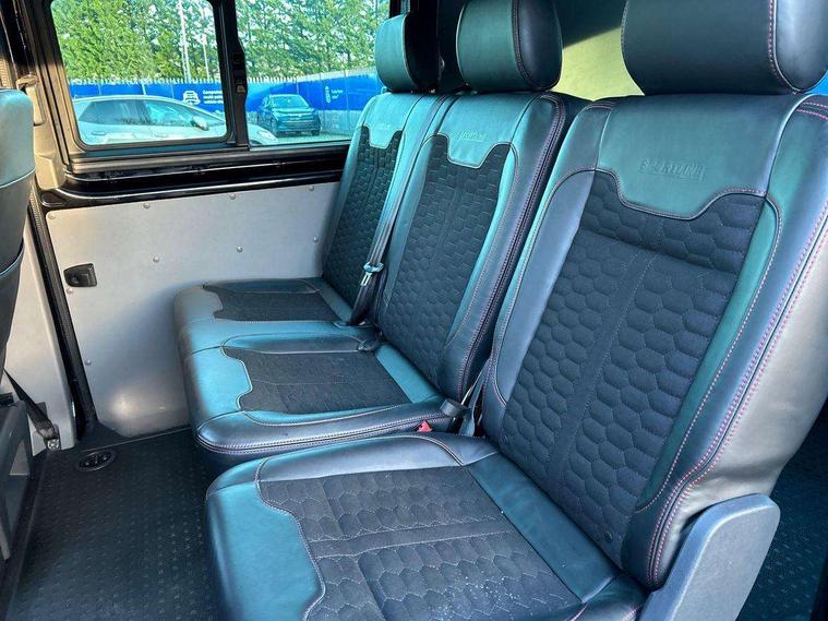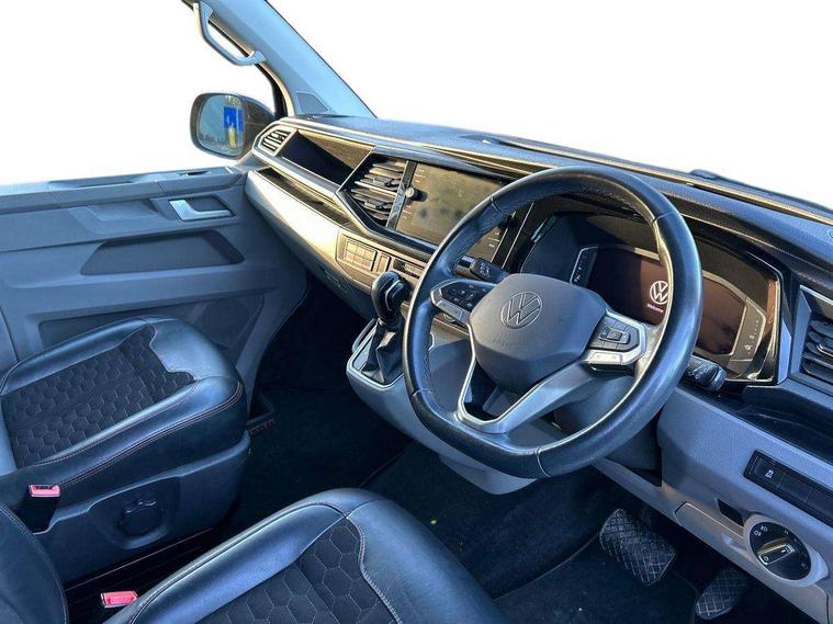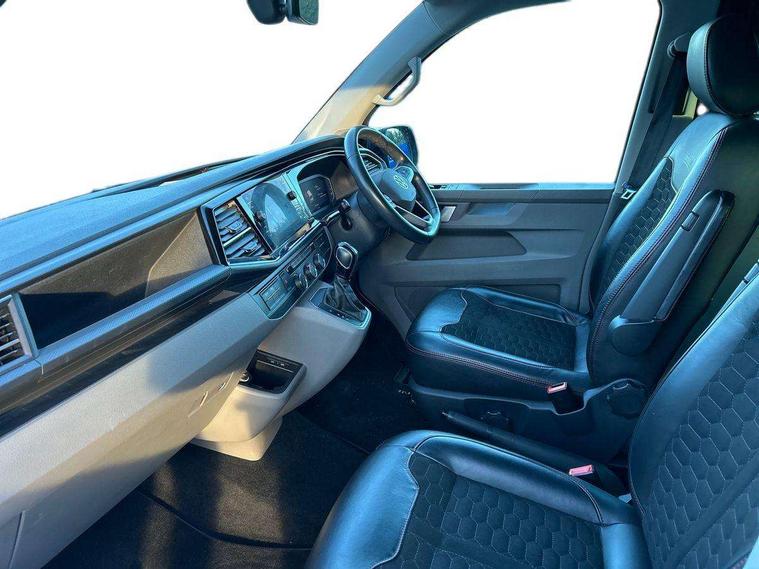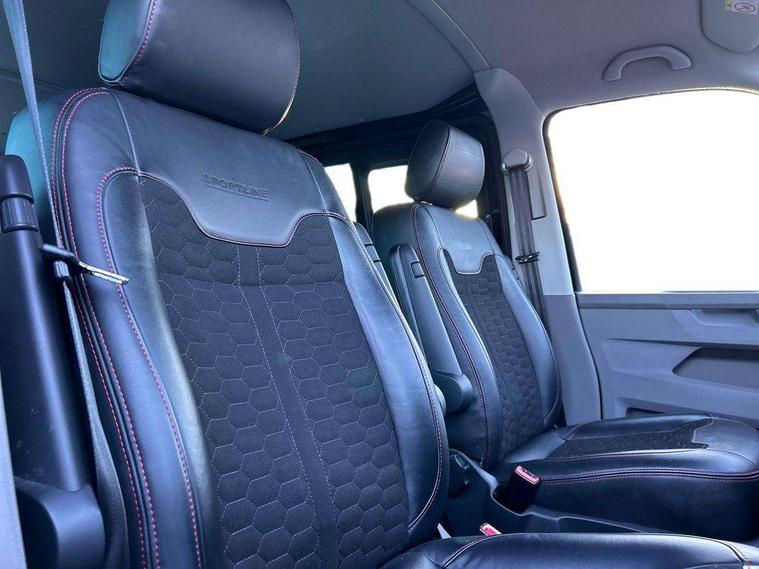Adaptive cruise control, Cross wind assist, Digital cockpit, Dimmable dashboard ilumination, Driver alert system, eCall emergency system, Electromechanical steering, Front and rear parking sensors, Front assist including city emergency braking system, Multi function display plus with black and white display, Rear view camera, Tyre pressure loss indicator, 2 USB interfaces type C in dashboard, 4 speakers with 2 tweeters and 2 woofers, Digital radio reception (DAB+), Discover Media navigation system with 8.0" touch-screen including Streaming and Internet, Volkswagen app connect, Auto dimming interior rear view mirror, Automatic headlight control, leaving home and manual coming home feature, Body colour bumpers, Body coloured door handles, Enhanced front bumper including lower front diffuser, Front electric windows, Front fog lamps with cornering light, Front sliding window and rear closed left side panel in load/passenger compartment, Front sliding window and rear closed right side panel in load/passenger compartment, Gloss black wing mirrors, Heat insulating windows in cab, Heated laminated windshield, High beam assist, Illuminated chrome side bars, Illuminated steps in passenger/load compartment, LED headlights with LED daytime running lights and LED tail lights, Power folding door mirrors, Privacy glass from the B-pillar and heat-insulating glass in front, Rear tailgate spoiler, Rear window in tailgate with wiper and washer system, Sportline front wing and rear tailgate badging, Tailgate closing with unlatching from the inside, Windshield wiper with intermittent control with rain sensor, 12V socket, 2 bench seats on driver side and individual seat with easy entry on the passenger side in 2nd row seats, Armrests for both front seats, Carpet floor covering in cab, Comfort dashboard, Dash panel with open stowage compartments, drink holders and lockable glovebox, Dust/pollen filter, Entry handle on A-pillar on drivers and front passengers side, Folding grab handles on roof frame, Full height side trim panels in the load compartment, Gloss black inserts in dashboard, Glove compartment with illumination, Heated driver and front passenger seats, Heavy duty tool kit and jack, Interior lighting with LED technology in load compartment, Interior styling and badging, ISOFIX and top tether child seat anchors for the outer seats of the three-seater bench seat, Leather trimmed multi-function steering wheel with height and longitudinal adjustment, LED Interior lighting with two reading lights in the roof console, Manual height adjustable and lumbar support for driver and single passenger seats, Nappa leather/alcantara upholstery with red contrast stitching, One waste bin in door storage compartment, Reinforced Folding lashing rings for load restraint system, Single front passenger seat, Sportline carpet mats, Sun visors with mirror and airbag label on front passenger sun visor, Driver and front passenger airbag with front passenger airbag deactivation, Single tone horn, 2 remote control folding keys, Anti theft alarm system with interior monitoring in cab, backup horn and towing protection, Engine immobiliser, Lockable wheel bolts, Additional 12V socket, Automatic post collision braking system, Diesel particulate filter, Eibach 30mm lowering springs, Electronic stability control, ABS, ASR with deactivation button, electronic differnetial lock, hill start assist and brake assist system, Start/stop system with regenerative breaking, Dashboard upper in Titanium Black, dashboard lower in Palladium and floor covering in Titanium Black, 18" Sportline Gloss black alloy wheels, Tyre mobility kit in lieu of spare wheel with 12 volt compressor and tyre sealant,