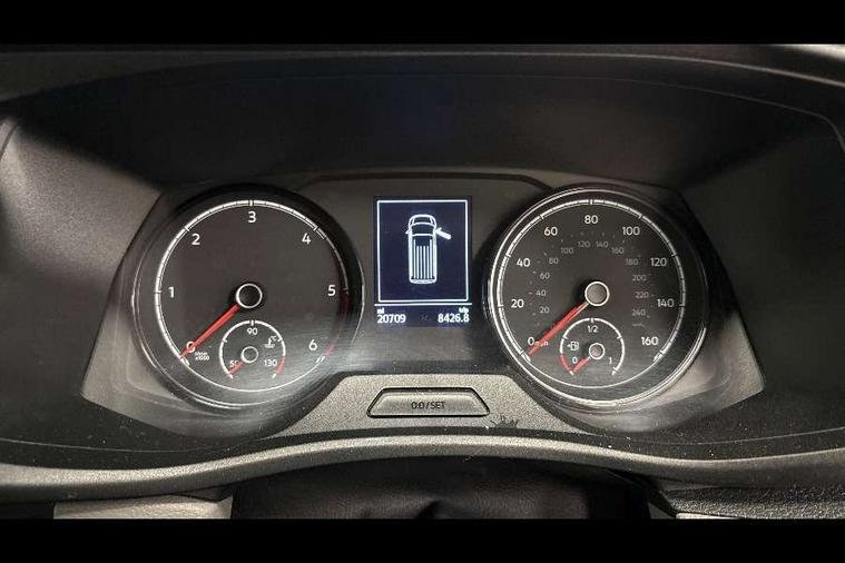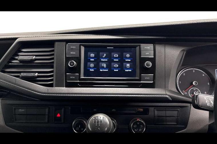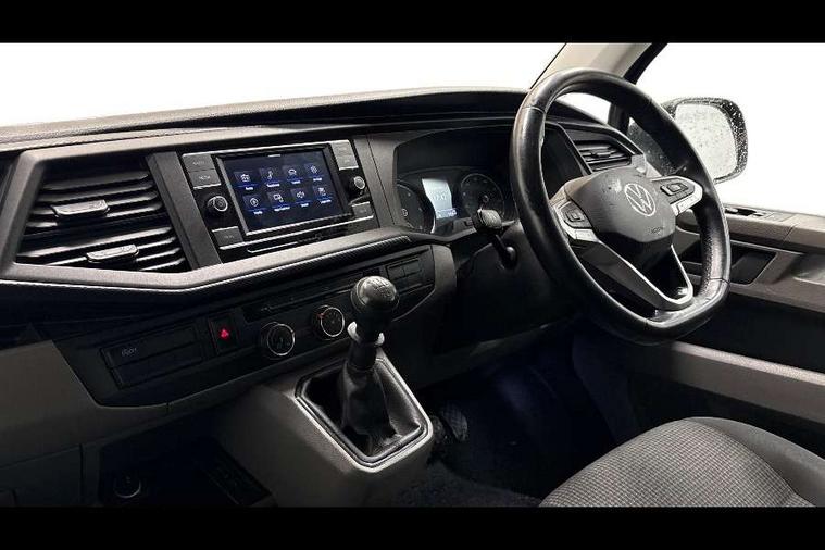 Cross wind assist, Dimmable illuminated instruments, Driver alert with Multi-function display plus, eCall emergency system, Forward collision warning front assist with autonomous emergency braking, Mobile phone interface, Multi function display plus with black and white display, 2 USB interfaces type C in dashboard, 4 speakers with 2 tweeters and 2 woofers, Composition colour radio with 6.5" touchscreen, Digital radio reception (DAB+), Volkswagen app connect, 4 stages windshield wiper intermittent control for windshield wipers, Closing rear wing door with unlatching from the inside, H7 twin halogen headlamps, Heat insulating glass (green) in cab and passenger/load compartment, Heat insulating windshield made of laminated glass, Left convex exterior mirror, Rear wing doors without window apertures, Right convex exterior mirror, Separate Daytime running lights, Transporter nameplate on the rear fender, Unpainted radiator grille with 2 chrome trims, 3 spoke leather wrapped multi function steering wheel, Comfort headliner in cab, hardboard roof trim in passenger and load compartment, Dust/pollen filter, Folding grab handles on roof frame, Front and rear left without window closed side panel in load compartment, Front seats on the right in 1st row of seat, Glove compartment without illumination, Heavy duty tool kit and jack, High partition, Interior plastic loading edge protection, LED Interior lighting in load and passenger compartment, Manual adjustable lumbar support for right single seat in 1st row seats, Standard lower part dashboard in palladium, Without breakaway interior rear view mirror, Without refrigerant, Without right side window apertures in passenger and load compartment, Non smoker pack - Transporter, 3 point height adjustable seat belts on outer seats cab with electric pretensioners, Driver and front passenger airbag with front passenger airbag deactivation, Warning buzzer and light for driver and front passenger seat belt not fastened, Without child safety lock in passenger compartment, Electronic immobiliser, Wheel bolts without wheel locks, 16" chassis with 16" brake system, Diesel particulate filter, Electronic stability control, ABS, ASR with deactivation button, hill start assist and brake assist system, Standard anti drum measures, Start/stop system with regenerative breaking,