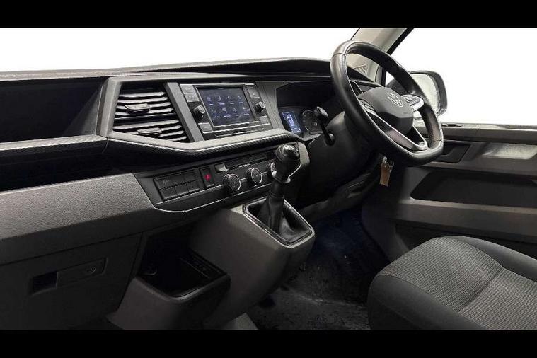 Cross wind assist, Dimmable illuminated instruments, Driver alert with Multi-function display plus, eCall emergency system, Forward collision warning front assist with autonomous emergency braking, Mobile phone interface, Multi function display plus with black and white display, 2 USB interfaces type C in dashboard, 4 speakers with 2 tweeters and 2 woofers, Composition colour radio with 6.5" touchscreen, Digital radio reception (DAB+), Volkswagen app connect, Closing rear wing door with unlatching from the inside, H7 twin halogen headlamps, Heat insulating glass (green) in cab and passenger/load compartment, Heat insulating windshield made of laminated glass, Left convex exterior mirror, Rear wing doors without window apertures, Right convex exterior mirror, Separate Daytime running lights, Transporter nameplate on the rear fender, Unpainted radiator grille with 2 chrome trims, 3 spoke leather wrapped multi function steering wheel, Comfort headliner in cab, hardboard roof trim in passenger and load compartment, Dust/pollen filter, Folding grab handles on roof frame, Front and rear left without window closed side panel in load compartment, Front seats on the right in 1st row of seat, Heavy duty tool kit and jack, High partition, Interior plastic loading edge protection, LED Interior lighting in load and passenger compartment, Standard lower part dashboard in palladium, Without refrigerant, Without right side window apertures in passenger and load compartment, Non smoker pack - Transporter, 3 point height adjustable seat belts on outer seats cab with electric pretensioners, Driver and front passenger airbag with front passenger airbag deactivation, Warning buzzer and light for driver and front passenger seat belt not fastened, Without child safety lock in passenger compartment, Electronic immobiliser, Wheel bolts without wheel locks, 16" chassis with 16" brake system, Diesel particulate filter, Electronic stability control, ABS, ASR with deactivation button, hill start assist and brake assist system, Standard anti drum measures, Start/stop system with regenerative breaking,
