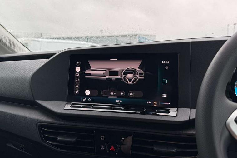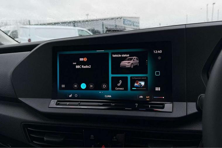 Bluetooth - Mobile phone interface, Car2X technology, Driver alert system, eCall emergency system, Intelligent Speed Assist, Lane assist, Seatbelt warning indicator, Service indicator, Start-stop system with regenerative braking, 2 USB interfaces type C in dashboard, DAB Radio, We Connect Basic Preparation, Automatic hazard light activation under emergency braking, Black front and rear bumpers, Electric front windows, Heat insulating windscreen, Roof rail preparation, Windscreen wiper with variable intermittent delay and wash-wipe system, Dimming breakaway interior rear view mirror, Electronically controlled heating system, Interior light in headliner incorporting LED technology, Lockable glove compartment door with light, Manual heating and ventilation system, Manual height adjustment for front seats, Reach and rake adjustable steering column, Six lashing points for securing loads, 3-point seat belts in front, with pretensioner and height adjustment, Driver and front passenger airbag with front passenger airbag deactivation, Tyre pressure monitoring system, Anti-theft alarm system, interior monitoring, backup horn, and towing protection, Electronic engine immobiliser, Remote central locking with deadlocks, interior locking, Anti locking braking system (ABS), Automatic post collision braking system, Autonomous Emergency Braking Front Assist with Pedestrian Monitoring, Brake assist, Diesel particulate filter, Electric parking brake with auto hold function, Electronic brake force distribution (EBD), Electronic differential lock (EDL), Electronic stabilisation programme (ESP), Engine drag torque control (MSR), Hill hold assist, Traction control system (TCS), Decorative beige birch vein inserts, Full size wheel trims,