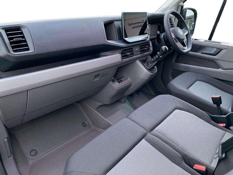 Bluetooth, Digital clock, Driver alert system, E-call + We connect basic preparation, Instrument cluster, Lights on warning buzzer, Locking fuel cap, Multi-function Display Plus, Rev counter, Service indicator, Speedometer, Voice control system, Composition media with 6.5" with we connect plus prep, 4 speaker, multifun display plus, USB, mob interface, app con, "We connect function", DAB Radio, Auto low beam mode, Leaving home function and manual coming home function, Cab doors, Convex and wide angle mirror, Driver seatbelt warning light, Electric windows, Electrically heated and adjustable door mirrors, Half painted front bumper, Heat insulating glass, Indicators in front door mirrors, One towing eye in front, Rear wing doors with 270 degree hinges, Special identification plate, Unpainted radiator grille, Air recirculation system, Ashtray, Centre console storage tray, CFCU preparation, Charcoal filter, Climatic air conditioning, Document holder on centre console, Drinks holders, Electromechanical Servotronic steering, Electronically controlled heating system, Fully adjustable suspension type driver seat, Grab handles on rear entry pillars, Height adjustable head restraints, Height and reach adjustable steering wheel, Illuminated glove compartment with lockable lid, Interior light, including 2 reading lights, Interior light, switchable by door, Jack and tool kit, Preparation for interface for external use with terminal block, Storage compartments in doors and in step, right, Storage tray on dashboard, Two 12V outlets in the cab (in the dashboard), Without rear side trim panel passenger load compartment, Non-smokers pack - Crafter, 3 point inertia reel belt on all seats, Automatic hazard light with emergency braking, Crosswind assist, Driver and front passenger airbag with front passenger airbag deactivation, Height adjustable seatbelts for outer cab seats, 1 rigid key, Anti-theft alarm with interior monitor, back up horn and tow away protect, overhead storage with two 1-DIN, reading light, SAFELOCK with 2 remote keys, Engine immobiliser, ABS, Automatic post collision braking system, EBA, EBD, EDL, ESP, Front disc brakes, HBA, Hill start assist, Parking brake - hill hold control, Start and stop system with regenerative braking, TCS, Hub cap covers,