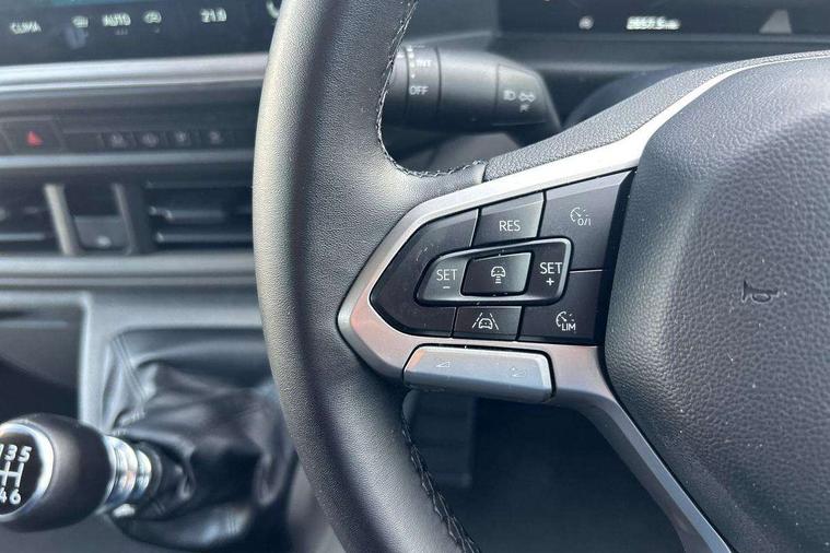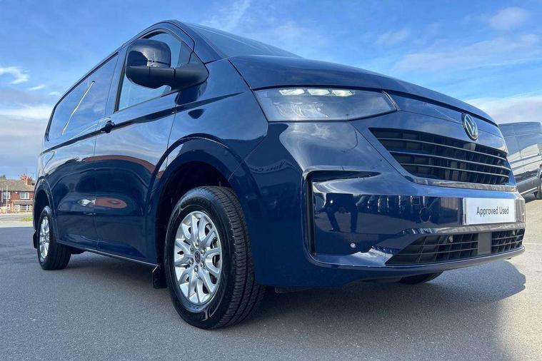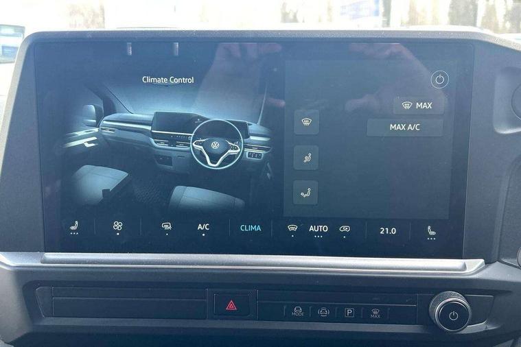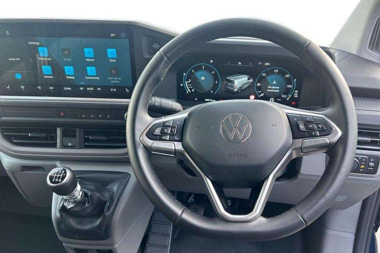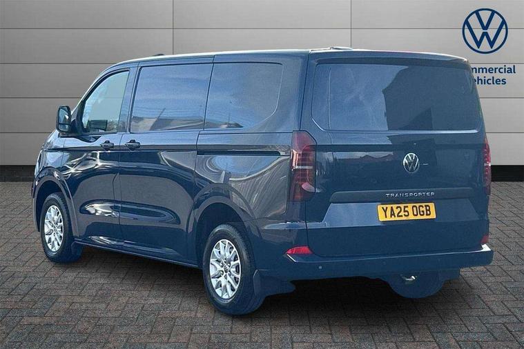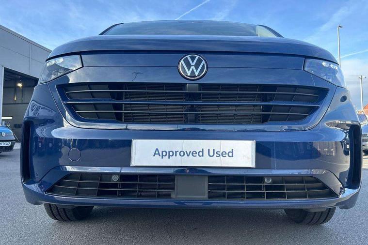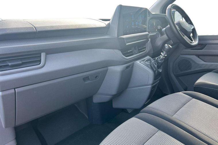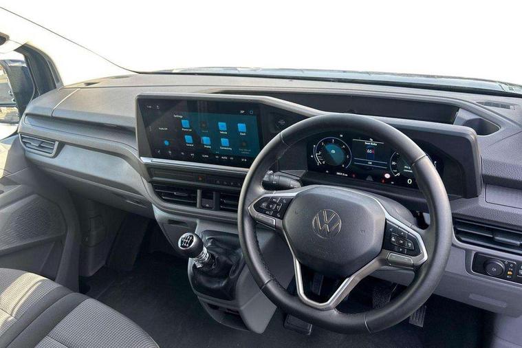 12" digital drivers display, 13" touchscreen infotainment display with wireless app connect and DAB radio, 5G Modem, Adaptive cruise control, Apple CarPlay and Android Auto, Dynamic road sign display, eCall emergency system, Electromechanical speed sensitive power steering, height and longitudinally adjustable steering column, Lane and blind spot assist with exit warning system, Preparation of VW connect and connect plus, Wireless mobile phone charging, Wrong way driver warning, Body colour bumpers, Body coloured door handles, Body coloured door mirrors, Body coloured radiator grille, Electrically heated, adjustable and folding door mirrors, Heat reflecting side window glass, Mud flaps front and rear, Rear Transporter nameplate in black grained decorative trim, Vehicle opening configuration 1x 1st row of seats, 2x all doors, 12V outlet in centre console and 12V outlet on rear right D-pillar, 2x 15-W USB data/charging ports in dashboard and 1x USB-C, 1x USB-A center bottom, 2x LED lights in load compartment, 3x additional super bright LED lights in load compartment, 4 way height and tilt adjustable head restraints, 5 additional USB-C charging ports, Black plastic scuff plate for sliding door in cargo without illumination, Cabin interior lighting, Glasses compartment in driver side roof, Grab handle on A-pillar passenger side, Illuminated lockable glovebox, Lashing rings for reinforced floor covering, Leatherette gear lever, Narrow centre console with cup holder and compartment for mobile phone, Overhead storage compartment, Rubber floor covering in cab, Striped fabric upholstery, Without passenger seats in load compartment, Driver and front passenger airbag with front passenger airbag deactivation, Dual tone horn, Front and curtain airbags for driver and front passenger, Seat belt pretensioner for driver seat, Anti theft alarm system with interior monitoring in cab, backup horn and towing protection, Electronic immobiliser, Lockable wheel bolts, Preparation for alcohol ignition interlock, 5+ Promise, Alternator - 230A, Electromechanical brake booster, Electronic stability control, ABS, ASR with deactivation button, hill start assist and brake assist system,
