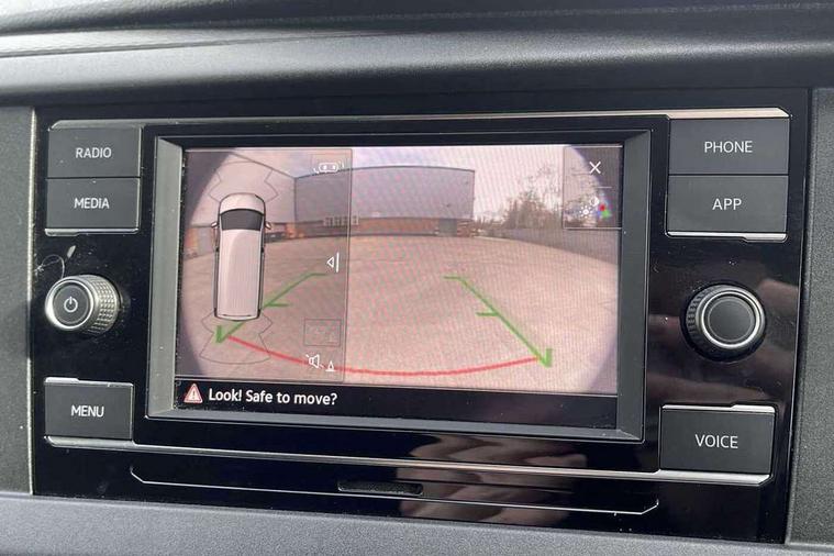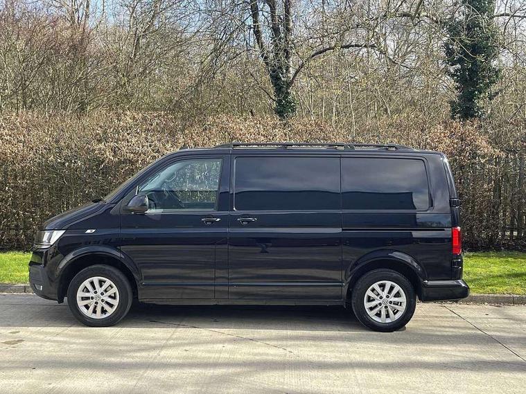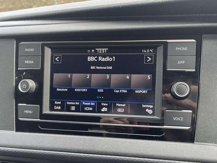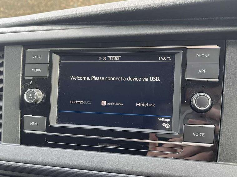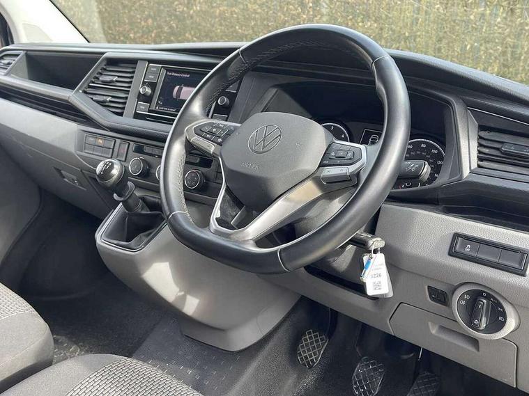 Adaptive cruise control, Cross wind assist, Dimmable illuminated instruments, Driver alert with Multi-function display plus, eCall emergency system, Forward collision warning front assist with autonomous emergency braking, Mobile phone interface, Multi function display plus with black and white display, 2 USB interfaces type C in dashboard, 4 speakers with 2 tweeters and 2 woofers, Composition colour radio with 6.5" touchscreen, Digital radio reception (DAB+), Volkswagen app connect, Automatic headlight control, leaving home and manual coming home feature, Closing rear wing door with unlatching from the inside, Front fog lamps with cornering light, Heat insulating glass (green) in cab and passenger/load compartment, Heated front windscreen, Left convex exterior mirror, Power folding adjustable door mirrors with separately heated, Radiator grille with 2 chrome trims, Rear wing doors without window apertures, Right convex exterior mirror, Transporter nameplate on the rear fender, Windshield wiper intermittent control with rain sensor for windshield wipers, 3 spoke leather wrapped multi function steering wheel, Auto dimming breakaway interior rear view mirror, Comfort headliner in cab, hardboard roof trim in passenger and load compartment, Dust/pollen filter, Front and rear left without window closed side panel in load compartment, Front seats on the right in 1st row of seat, Glove compartment with illumination, Heavy duty tool kit and jack, High partition, Interior plastic loading edge protection, LED Interior lighting in load and passenger compartment, Manual adjustable lumbar support for right single seat in 1st row seats, Refrigerant R134a, Standard lower part dashboard in palladium, Storage compartments on cab seats and reading light, Without right side window apertures in passenger and load compartment, Comfort pack - Transporter, Exterior pack without fog light- Transporter, Non smoker pack - Transporter, 3 point height adjustable seat belts on outer seats cab with electric pretensioners, Driver and front passenger airbag with front passenger airbag deactivation, Warning buzzer and light for driver and front passenger seat belt not fastened, Without child safety lock in passenger compartment, Anti theft alarm system with interior monitoring in cab, backup horn and towing protection, Lockable wheel bolts, 16" chassis with 16" brake system, Diesel particulate filter, Electronic stability control, ABS, ASR with deactivation button, hill start assist and brake assist system, Start/stop system with regenerative breaking, 16" Clayton alloy wheels,