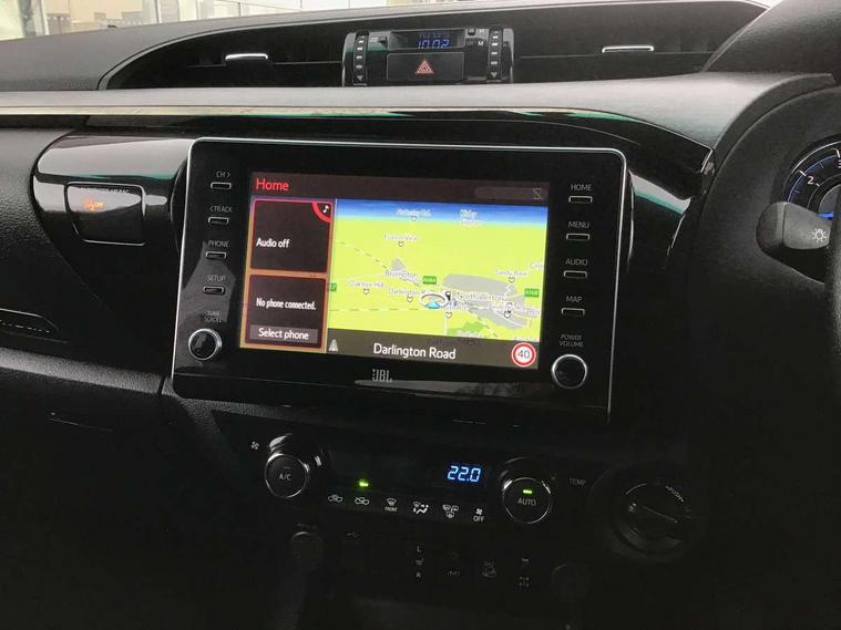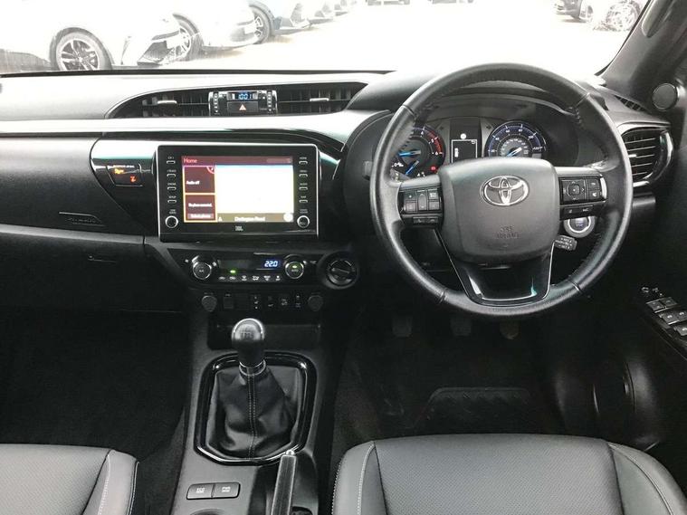 4.2" Multi information display, Bluetooth connectivity, Front and rear parking sensors, Fuel heater, Intelligent adaptive cruise control, Lane departure warning system, Lights on warning buzzer, PAS, Pre-collision system with pedestrian detection, Rear view camera, Road sign assist, Smart phone integration with Android auto & Apple CarPlay, Static guidelines on rear view camera, Tachometer, Touch 2 multimedia system with 8" display + GO navigation system, Digital radio (DAB), JBL Premium sound system with 9 speakers, MP3 compatibility, Steering wheel mounted audio controls, USB connector, Auto Headlights, Automatic headlamp levelling, Black door mirrors, Black side steps, Body coloured front bumper, Dark grey rear bumper, Emergency brake light assist (EBS), Follow me home headlights, Front power windows with auto up and down function, Front wiper De-icer, Green tinted glass, Headlight cut-off reminder, Headlight washers, Heated rear window, Invincible exterior - front bumper, body mouldings, tailgate handle, LED Daytime running lights, LED dual beam projector headlights, LED front fog lights, LED rear lights, Mud flaps front and rear, Power rear side window, Power retractable door mirrors, Rear fog lights, Rear window privacy glass, Trailer sway control, Underbody protection cover, Variable front wipers, Windscreen shadeband, 220V power socket, 60/40 split tip-up rear bench seat, Ambient door lighting, Carpet covered floor, Centre console coolbox, Centre console with lid, storage and armrest, Cooler in upper glove box, Dual tone leather upholstery, Heated front seats, Inner load hooks on cargo deck, Leather steering wheel and gearshift lever, Locking glovebox, Power adjustable drivers seat, Rear passenger footwell heating, Tilt adjustable steering wheel, Automatic front passenger airbag on/off switch, Child proof rear door locks, Front passenger airbag detector, Front seatbelt pre-tensioners + force limiters, Front seatbelt reminder, Isofix child seat preparation, Rear seatbelt pre-tensioners with load limiters, Supplement restraint system (SRS) 7 airbags - driver and passenger, knee, side and curtain, Immobiliser, Lockable tailgate, Remote central locking, Smart entry and start system button, 2 12v sockets, ABS with EBD, Auto limited slip differntial, Brake assist, Downhill Assist Control (DAC), Hill start assist, Load sensing proportioning system, Rear differential lock with auto disconnect, Stop/start function, Traction control, Vehicle stability control, 18" alloy wheels, Full size alloy spare wheel, Highway terrain tyres,