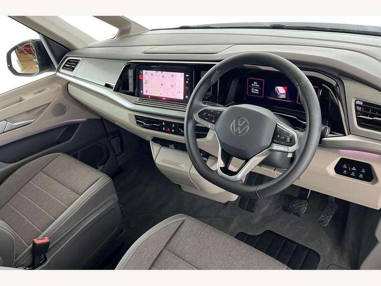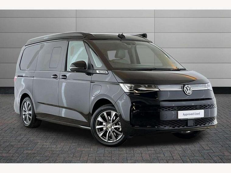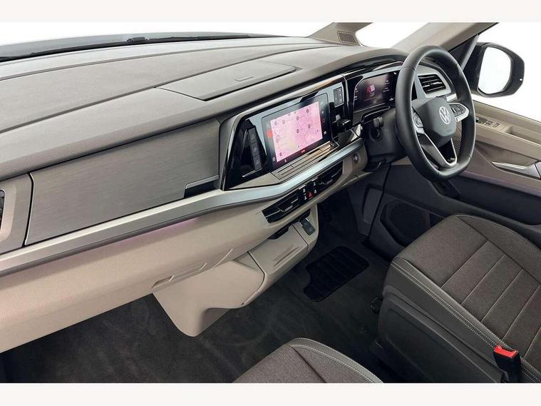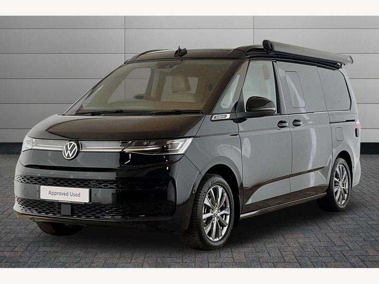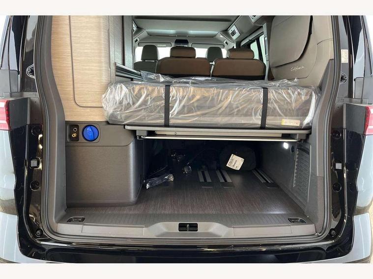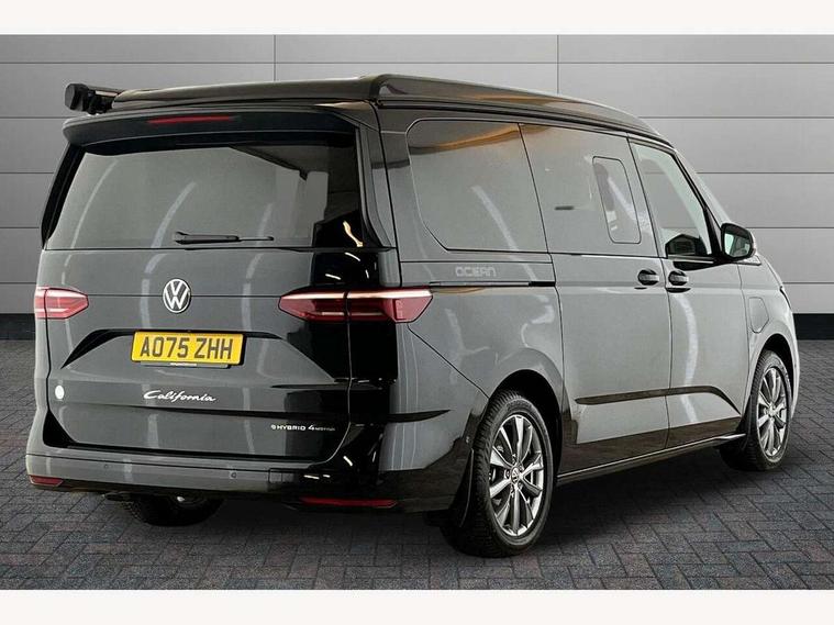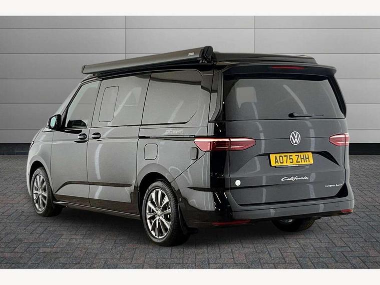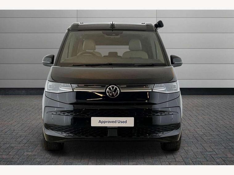 Advanced driver attention and drowsiness monitor, California on tour app, Digital cockpit pro, Discover Pro Navigation system, Driving profile selection, Dynamic road sign display, eCall emergency system, Emergency assist, Front cross traffic assist, Function control unit, IDA voice assistant and voice enhancer, Lane keeping system Lane Assist, Mobile phone interface, Motorhome Registration, Multifunction camera, PAS, Preparation for online services, Preparation for We connect and We connect plus, Servotronic speed sensitive power steering, Speed limiter and predicative speed limiter, Tailgate latching without unlatching function from inside, Tailgate with window aperture and with power latching, Travel assist, Turn assist with evasive assistance, Volkswagen wired and wireless app connect, Alternator 60A, 2nd and 3rd auxiliary batteries with low -voltage converter, Battery 380 A (68 Ah), Battery without capacity specification, Charging cable mode 3, type 2/3, 16 A, Standard battery/generator, Standard suspension and shock absorption, 10.4 inch infotainment system with scalable module options, 2 USB-C ports at the front, 4 USB-C charging sockets in the passenger compartment, 8 Speakers, Digital radio reception (DAB), 3rd brake light, Dynamic headlight range control, Electro hydraulic elevating roof, with three windows including one front passengers panorama opening, canvas in Basalt Grey, Four speed control for windscreen wipers, Gloss black grille with 2 illuminated chrome trim, Heat and sound insulating laminated safety glass windshield, Heated windscreen, High gloss black door mirrors, Illuminated molding between headlamps, Nameplate set California, Poor weather light including cornering light, Rear boot, Red LED tail lights, Sliding window in front with fly screen in passenger compartment left/right & including privacy glass in rear, Windscreen wiper intermittent control, 2 single seats with integrated seatbelt and sleeping mat, 230V external inlet with charging feature for vehicle batteries, 230V inverter with socket on driver seat, Additional interior noise attenuation, Ambient interior lighting, Armrest on front swivel seats in both sides with electric lumbar support, Camper parking heater for continuous operation, Darkening roller blinds and thermo mats, Drawers under the outer seats in the cab and passenger compartment & 2 waste bins, Front and rear headrests, Heated front seats, Heated steering wheel, Kitchen with outdoor folding table for cooking and roof storage box in décor 2, Lockable glove compartment with lighting, Luggage compartment with power latching, Multifunction leather steering wheel with paddle shifters, Reinforced plastic floor covering in wood look, Single front passenger seat, Storage compartment left and right 1st row of seats, Summer kitchen with outside folding table and 230-V outlet for cooking and roof storage box, Surround lighting in door area, Swivel seat on left with height adjustable including drawer, Swivel seat on right with height adjustable including drawer, Velour floor mats in cab, Without loading edge protection, Without luggage compartment cover, Advanced assistance pack - California, Top package - California, 2x3 point automatic seatbelts at the rear outside with ECE label, with/without belt tensioner, Autonomous emergency braking, Child locks, Driver and front passenger airbags with front passenger airbag deactivation button, First aid kit with warning triangle and safety vest, Front Assist with pedestrian and cyclist detection, Front disc brakes, Height adjustable three point automatic seatbelts at front with belt and end fitting tensioners, Occupants detection only display, Side and curtain airbags for driver and front passenger, curtain airbags for outer seats in rear, centre airbag in front, Swerve support and oncoming vehicle braking when turning, Tyre pressure loss indicator, Warning signal and warning lamp for front and rear seat belts not fastened, Anti theft alarm system with interior monitoring in cab, backup horn and towing protection, Central locking + keyless locking and starting system Keyless Advanced with safe lock, Lockable wheel bolts, Preparation for alcohol interlock, 5+ Promise service plan, Dark silver brushed decorative inlays, 235/50 R18 tyres with low rolling resistance, Tool kit, Trims for alloy wheels, Tyre mobility kit, Without spare wheel,