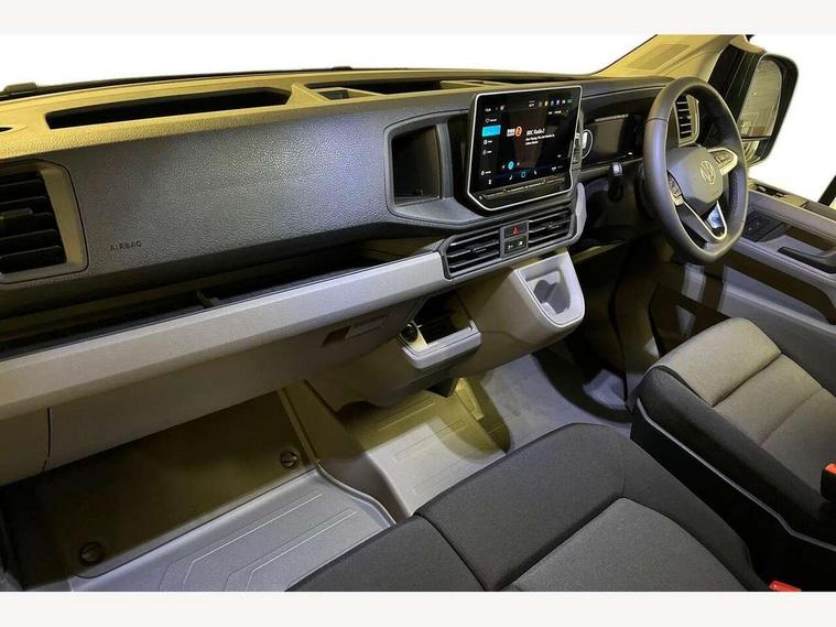 Bluetooth, Digital clock, Driver alert system, E-call + We connect basic preparation, Instrument cluster, Lights on warning buzzer, Locking fuel cap, Multi-function Display Plus, Rev counter, Service indicator, Speedometer, Voice control system, Composition media with 6.5" with we connect plus prep, 4 speaker, multifun display plus, USB, mob interface, app con, "We connect function", DAB Radio, Auto low beam mode, Leaving home function and manual coming home function, Cab doors, Convex and wide angle mirror, Driver seatbelt warning light, Electric windows, Electrically heated and adjustable door mirrors, Half painted front bumper, Heat insulating glass, Indicators in front door mirrors, One towing eye in front, Rear wing doors with 270 degree hinges, Special identification plate, Unpainted radiator grille, Air recirculation system, Ashtray, Centre console storage tray, CFCU preparation, Charcoal filter, Climatic air conditioning, Document holder on centre console, Drinks holders, Electromechanical Servotronic steering, Electronically controlled heating system, Fully adjustable suspension type driver seat, Grab handles on rear entry pillars, Height adjustable head restraints, Height and reach adjustable steering wheel, Illuminated glove compartment with lockable lid, Interior light, including 2 reading lights, Interior light, switchable by door, Jack and tool kit, Preparation for interface for external use with terminal block, Storage compartments in doors and in step, right, Storage tray on dashboard, Two 12V outlets in the cab (in the dashboard), Without rear side trim panel passenger load compartment, Non-smokers pack - Crafter, 3 point inertia reel belt on all seats, Automatic hazard light with emergency braking, Crosswind assist, Driver and front passenger airbag with front passenger airbag deactivation, Height adjustable seatbelts for outer cab seats, 1 rigid key, Anti-theft alarm with interior monitor, back up horn and tow away protect, overhead storage with two 1-DIN, reading light, SAFELOCK with 2 remote keys, Engine immobiliser, ABS, Automatic post collision braking system, EBA, EBD, EDL, ESP, Front disc brakes, HBA, Hill start assist, Parking brake - hill hold control, Start and stop system with regenerative braking, TCS, Hub cap covers,