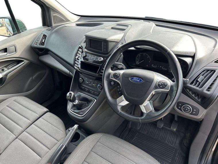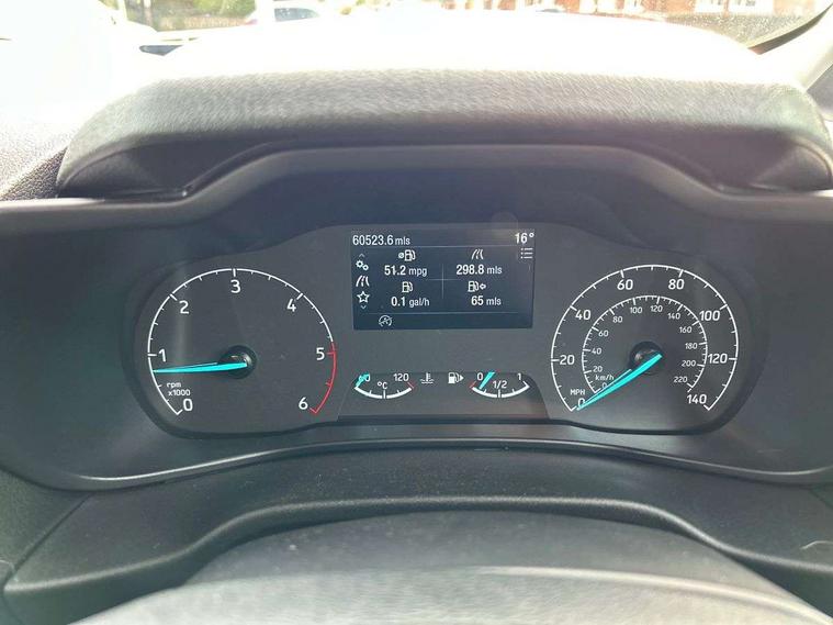 Easy fuel capless refuelling system, Eco coach, On board modem with FordPass Connect, PAS, Trip computer, Steering wheel mounted audio controls, Active grille shutter, Body colour side protection mouldings, Body coloured door handles, Body coloured door mirrors, Body coloured front bumper, Body coloured rear bumper end caps, Electrically folding and heated door mirrors, Front electric windows with power up and down, Quickclear heated windscreen, Rain sensitive wipers and auto headlights, Static cornering lights including front fog lights, Cargo area tie down loops, Easy clean floor, Glovebox with lid, Interior roof rack / Interior Overhead stowage, Ligne cloth upholstery, Load box LED lights, Plastic cargo area lining, Reach and rake adjustable steering column, Driver seatbelt reminder, Driver's airbag, 2nd remote key, Configurable Unlocking, Immobiliser, Keyless start, Remote central double locking, Thatcham category 1 alarm with 2nd remote key, ABS + EBD, Auto start/stop system, ESC, Heavy duty battery, Hill start assist, 16" 5 spokes sparkle silver alloy wheels,
