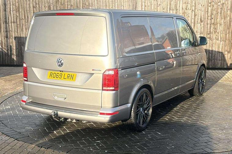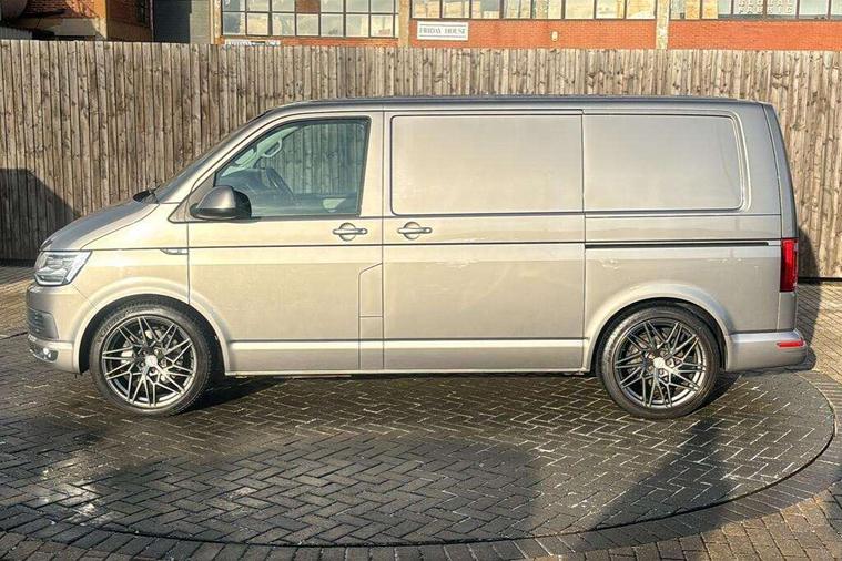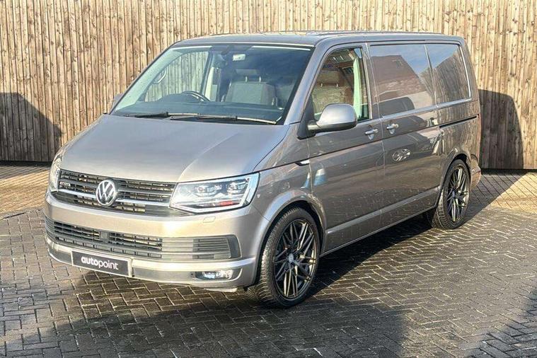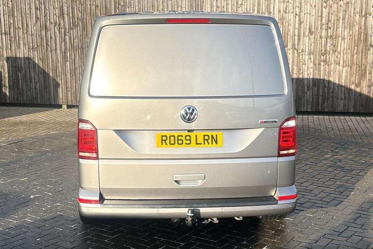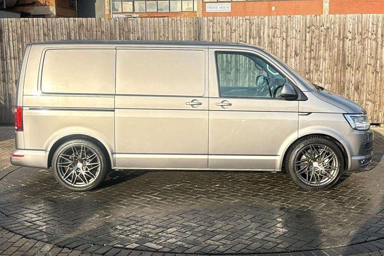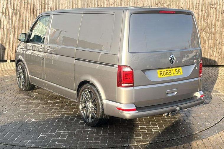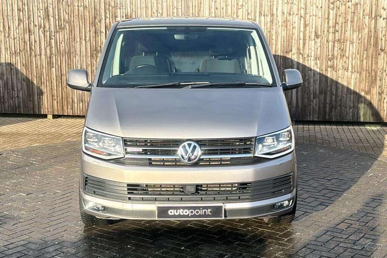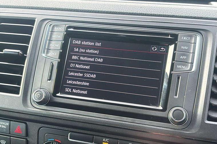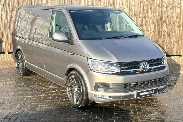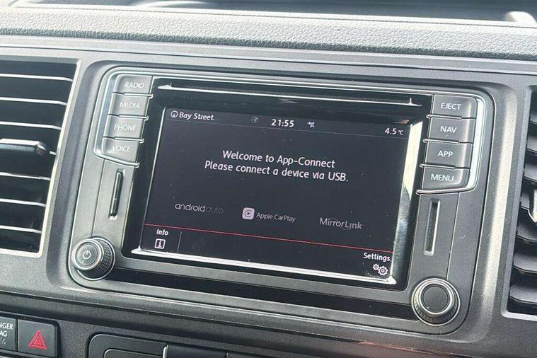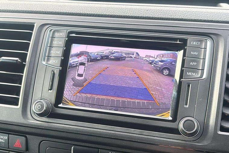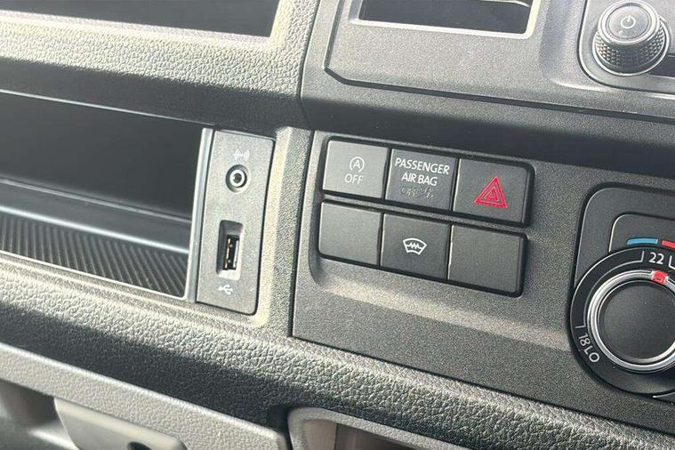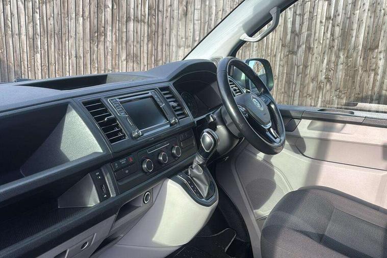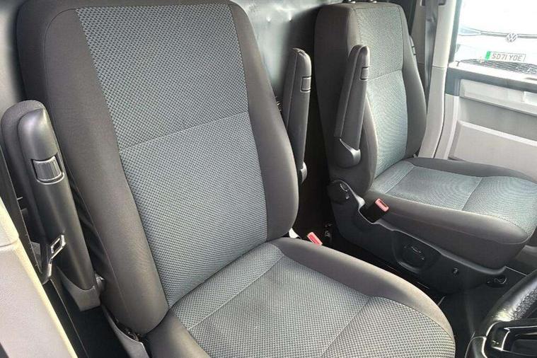 Bluetooth connectivity, Collision prevention assist, Digital clock, Driver alert with Multi-function display plus, Gearshift indicator, Headlight range control, Lights on warning buzzer, PAS, Rear door interior release lever, Rev counter, SD card slot, Service indicator, 4 speakers, Aux input socket, DAB radio/CD player, USB connection, 180 degree opening rear doors, 2 speed windscreen wipers/intermittent wash, 8 securing points for roof load rack system, Auto dimming rear view mirror, Automatic coming/leaving home lighting function, Electric front windows, Front and rear towing rings, Front fog lights with cornering function, Green heat insulating glass, Heat reflective glass, Heated front windscreen, Laminated windscreen, Rear wing doors without windows, 1 coat hook, 1 hook on lower dash on front passenger side, 2 rear interior lights, switchable by door, 2 storage trays in dashboard, 2 sun visors folding and pivoted, 6 lashing points for securing loads, Additional 12v accessory socket, Cab interior light, Drinks holder, Driver's seat armrest, Dust/pollen filter, Front door pockets with bottle holder, Full height hardboard side lining, Half height hardboard side lining, Half height load lining, Height adjustable head restraints, Height and rake adjustable steering column, Interior entry steps, Interior roof trim - hardboard, Interior roof trim as headliner, Locking glovebox, Multifunction leather steering wheel, gearknob and gaiter, Open storage compartment in dash panel including mobile phone holder, Passenger seat with reach and rake adjustment, Sheet steel flooring, Side roof frame trim, Storage box integrated in roof headliner, Storage compartments in doors, Storage compartments in outer side of driver & passenger seats, Storage net on lower dash passenger side, Cab comfort pack - Transporter Van, Electric pack A - Transporter, Exterior pack - Transporter, Lights and vision pack - Transporter, Non smoker pack, 3 point inertia reel belt on all seats, Brake pad wear indicator, Front passenger airbag deactivation, Height adjustable seatbelts with tensioners, Anti-theft alarm with rear control in cab, backup horn and towing protection, Locking wheel bolts, 70 litre fuel tank, ABS with electronic brake distribution, ASR traction control, Diesel particulate filter, EDL, Engine braking control (MSR), ESP, Hill start assist, Traction control, Platinum grey trim, 17" Devonport alloy wheels,