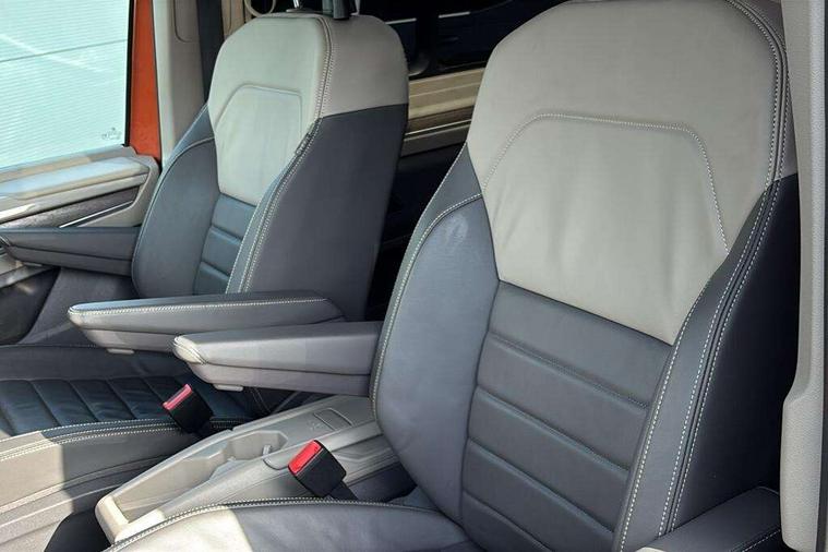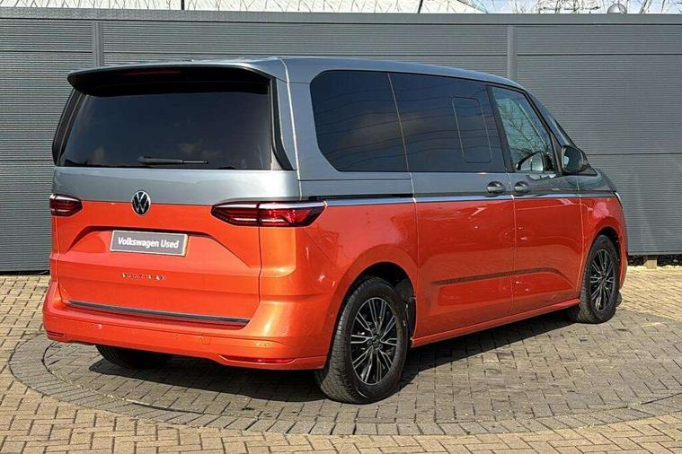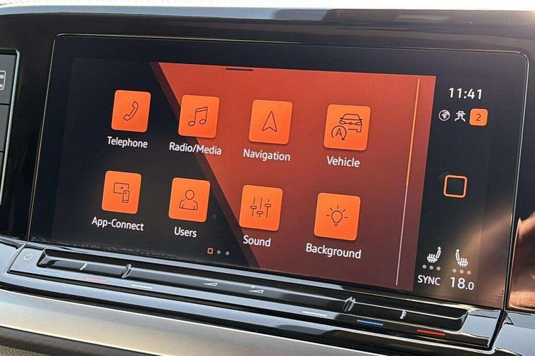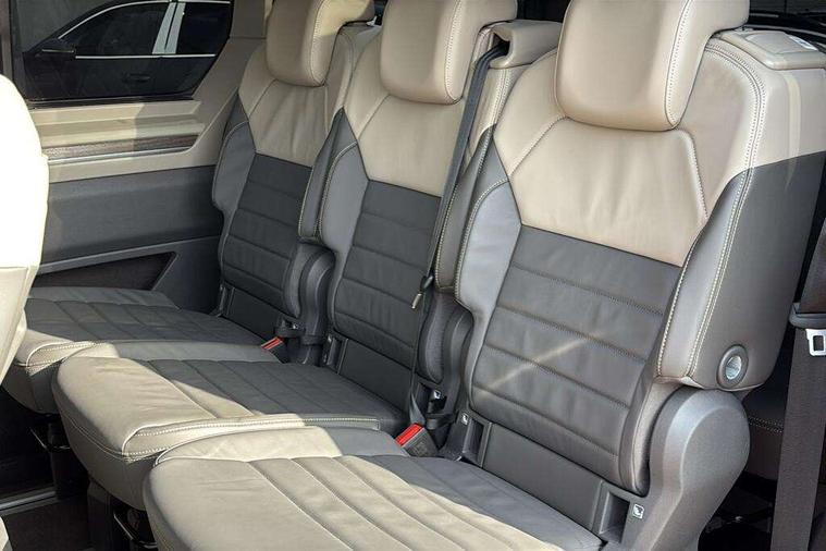 Adaptive cruise control with C2X including front assist and city emergency braking system, App-Connect incl. App-Connect Wireless for Apple CarPlay and Android Auto, Digital Cockpit Pro with 10.25" Display, Driver alert system, Dynamic road sign display, eCall emergency system, Electric tailgate with virtual pedal, Electrically-operated tailgate opening and closing function (Easy open), operated via foot movement under rear tailgate, Emergency assist, Lane keeping system Lane Assist, Mobile phone interface, PAS, Semi-automated driving assistance, Travel assist, Voice control system including Alexa web app, We connect preparation, Electronic differential lock, 2 USB-C ports in front and 4 USB-C ports in passenger compartment, Digital radio reception (DAB+), Additional interior noise reduction measures, Advanced high beam control dynamic light assist for LED matrix headlamps, Automatic headlight control with welcome home lights, Body coloured exterior door handles, Break away auto dimming rear view interior mirror, Chrome trim decorative strip mid-way on side and rear, Dynamic headlight range control with dynamic cornering light, Electric sliding rear side door on the left/right with easy open feature, Electrically adjustable, heated and folding door mirrors, Front fog lights, Glossy black painted radiator grille with 2 illuminated chrome trims, Heated rear window with window wiper and washer system, Heated windscreen, High gloss black exterior mirror housing, IQ.Light LED matrix headlamps with LED separate daytime running light, Laminated safety glass windshield, heat and sound insulating, LED 3rd brake lamp, LED rear combination lamps, Rear wiper, Sliding windows in front sliding doors and fixed rear windows, Stainless steel tailgate trim, Surround lighting in door area and tailgate with logo projection in door area, Windshield wiper intermittent control with rain sensor, 1 x 12V sockets on the dash panel, 12V socket in passenger compartment, 3 seat bench in 3rd row, 30 colours ambient interior lighting and tailgate surround lighting, 7 single seats removable/movable, Carpet mats in cab, Climatronic 3 zone air conditioning with 2nd evaporator, auxiliary heater, air conditioned headliner and additional passenger control, Front and rear head restraints, Grab handles on A pillar for access, on driver and front passenger side, Heated steering wheel, Height adjustable seats, Height and longitudinal adjustment steering wheel with gear shift paddles, Illumination lockable glovebox compartment, ISOFIX (including i-size) and top tether in all seats in 2nd and 3rd rows, LED luggage compartment lighting X 2, Load compartment partition to 20kg with bag hooks and luggage net, Luggage compartment lid power latching with unlatching from inside, Multifunction leather steering wheel with tiptronic, Reinforced carpet floor covering in passenger compartment, Removable armrests for front seats with power adjustable lumbar support and folding table for 2nd row passenger seats, Removable armrests in 2nd row passenger seats, Single front passenger seat, Slidable multifunction table/centre console with 3 cup holders, Stainless steel pedals, Storage compartment under the 2nd and 3rd row seat and two waste bins, Sun visors with illuminated vanity mirrors and airbag warning label on front passenger sun visors, 3x3 point rear seat belts, ABS, Automatic post collision braking system, Autonomous emergency braking front assist with pedestrian and cyclist monitoring, Driver and front passenger airbag with front passenger airbag deactivation, Electric childproof lock, Electronic stability control (ESC) and Electromechanical brake booster, ESP, First aid kit with warning triangle and safety vest, Front disc brakes, Hill hold assist, Seat belt warning for the drivers and all passengers seats if unfastened, Side and curtain airbags for driver and front passenger, curtain airbags for outer seats in rear, centre airbag in front, Single tone horn, Traction control, Tyre pressure monitoring system, Anti theft alarm system with interior monitoring in cab, backup horn and towing protection, Central locking system keyless entry with touch two stage unlocking, Start/stop button on centre console, Dark woodgrain optic decorative inserts,