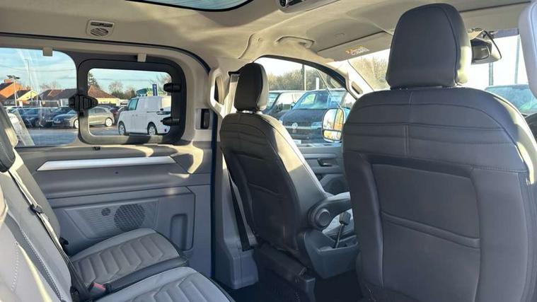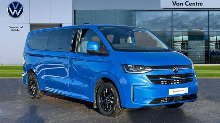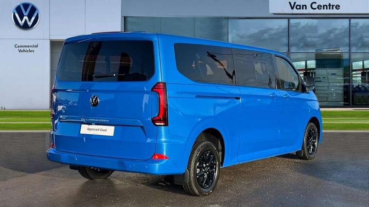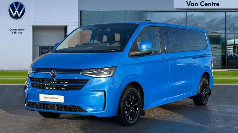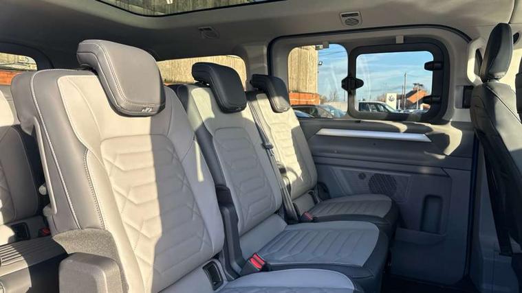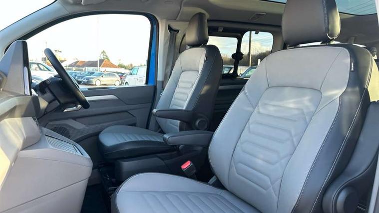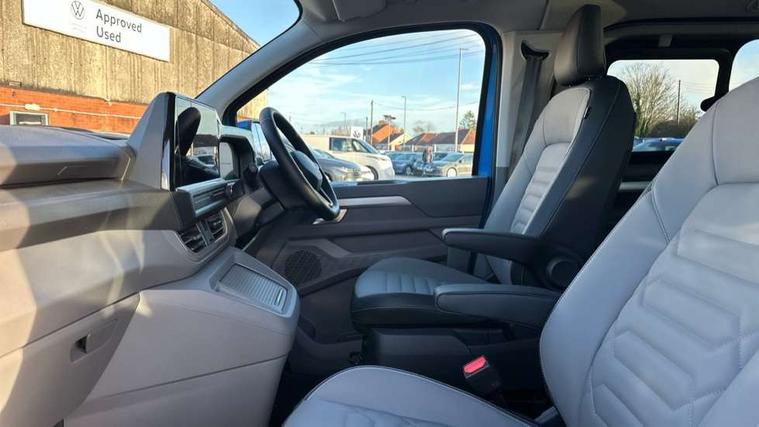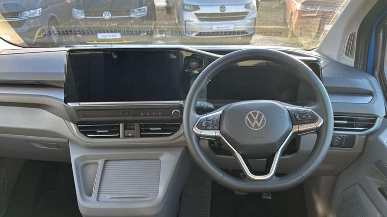 12" digital drivers display, 13" touchscreen infotainment display with wireless app connect and DAB radio, 5G Modem, Cruise control with predictive speed limiter, Driver alert system and driver attention monitor, Dynamic road sign display, eCall emergency system, Front collision warning with braking, Lane assist, Power assisted steering, Wireless mobile phone charging, Wrong way driver warning, 7x USB sockets in cab and 6x USB sockets in passenger compartment, VW Connect and VW Connect plus preparation, Advanced high beam control with dynamic light assist, Body coloured exterior mirror housings and door handles, Body coloured front and rear bumper, Exterior mirrors, power adjustable, heated and power folding with puddle lighting, Heated and laminated safety glass windshield with heat reflecting glass, Heated rear window, IQ light LED matrix headlight with coming home and leaving function, LED rear lights with exclusive light signature, Metal scuff plate on sliding door, illuminated, Mud flaps front and rear, Pop out side window in load/passenger compartment, left, Pop out side window in load/passenger compartment, right, Privacy glass in rear side windows and rear window, Rear tailgate, Rear window wiper with washer system, Sliding doors on drivers side and front passenger side with electric closing aid, Transporter nameplate on the rear fender, Vehicle opening configuration 1x 1st row of seats, 2x all doors, 12 pin terminal block, 12V outlet on D pillar at the bottom, rear right, 2 LED lights in roof of load compartment, 3 seater bench in 3rd row of seats, folding backrest, 3 single seats in 2nd row (fold & tumble ) 6x ISOFIX and 4x TopTether, 3 zone automatic air conditioning system with digital control panel in passenger compartment, 4 way height and tilt adjustable head restraints, Electric auxiliary heater, Footwell lighting in cab, Grab handle on A pillar driver and passenger side, and on B-pillar in passenger compartment, Grab handle on passenger side, A-pillar, Illuminated metal scuff plate in cab, Interior trim level Style for Shuttle, Lashing rings for load restraint system, LED light units for cab and passenger compartment, Molded headliner, woven, in passenger compartment, Overhead storage compartment, Selector lever on steering wheel, Sunshades on side windows of sliding doors in 2nd row passenger compartment, Without floor covering in load compartment, Without side trim panel load/passenger compartment, Driver and front passenger airbag with front passenger airbag deactivation, Side and curtain airbags in cab and curtain airbags in passenger compartment, Single tone horn, Anti-theft alarm system with interior monitoring, backup horn and towing protection, Anti-theft wheel bolts, Keyless access with safelock, Preparation for alcohol ignition interlock, 5+ Promise, Electronic Stability Control (ESC), Tyres 215/60 R17 C 109/107T, low rolling resistance,