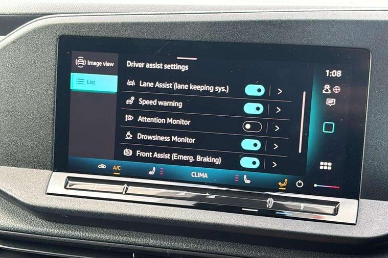 Bluetooth - Mobile phone interface, Digital multi-function cockpit display, Driver alert system, eCall emergency system, Lane assist, Seatbelt warning indicator, Service indicator, Start-stop system with regenerative braking, 2 USB interfaces type C in dashboard, DAB Radio, Automatic hazard light activation under emergency braking, Body coloured bumpers, Electric front windows, Heat insulating windscreen, Rear view mirror with anti dazzle function, Roof rail preparation, Windscreen wiper with variable intermittent delay and wash-wipe system, Electronically controlled heating system, ergoComfort seats for driver, Interior light in headliner incorporting LED technology, Lockable glove compartment door with light, Manual heating and ventilation system, Manual height adjustment for front seats and seat cushion inclination and depth adjustment on drivers seat, Multi function leather steering wheel, Power-adjustable lumbar support for drivers seat, Reach and rake adjustable steering column, Six lashing points for securing loads, Steering wheel paddle shift, Storage compartments under driver and front passenger seats, Sun visors with mirror, airbag label on front passenger sun visor, 3-point seat belts in front, with pretensioner and height adjustment, Driver and front passenger airbag with front passenger airbag deactivation, Tyre pressure monitoring system, Anti-theft alarm system, interior monitoring, backup horn, and towing protection, Electronic engine immobiliser, Remote central locking with deadlocks, interior locking, Anti locking braking system (ABS), Automatic post collision braking system, Diesel particulate filter, Electric parking brake with auto hold function, Electronic brake force distribution (EBD), Electronic differential lock (EDL), Electronic stabilisation programme (ESP), Engine drag torque control (MSR), Hill hold assist, Traction control system (TCS), Decorative beige birch vein inserts, Full size wheel trims,