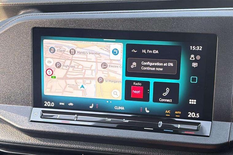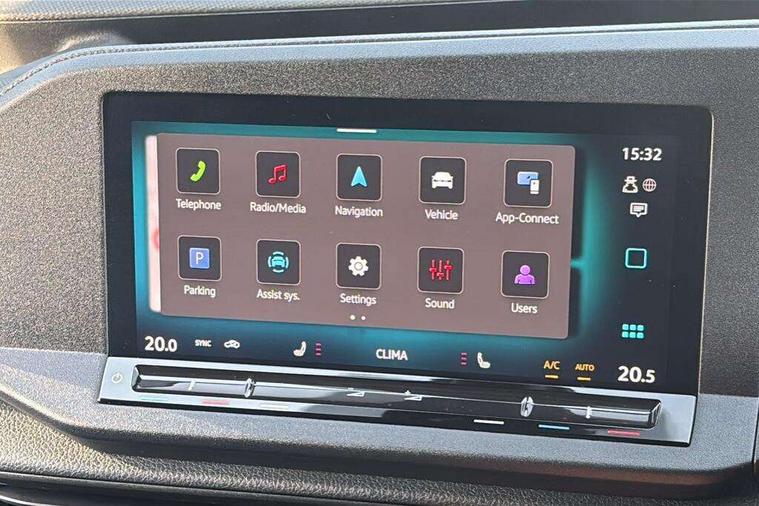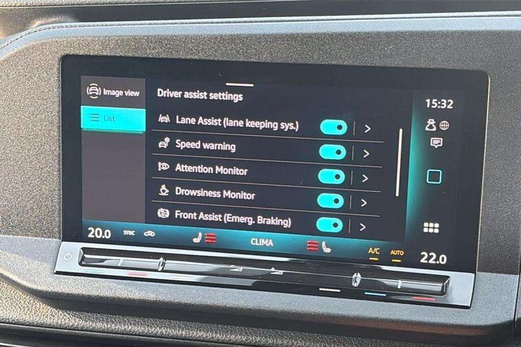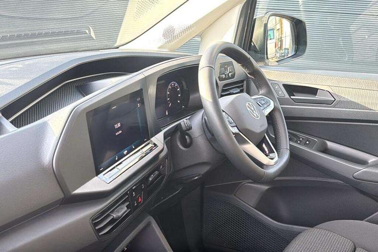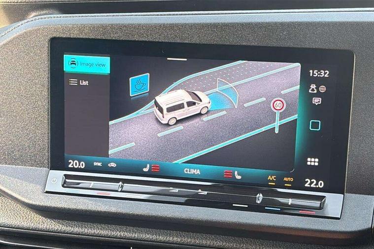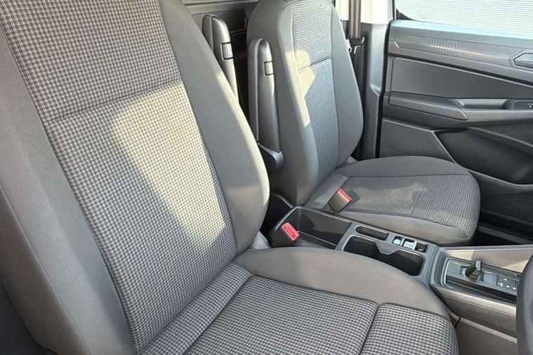 Bluetooth - Mobile phone interface, Car2X technology, Driver alert system, eCall emergency system, Intelligent Speed Assist, Lane assist, Seatbelt warning indicator, Service indicator, Start-stop system with regenerative braking, 2 USB interfaces type C in dashboard, App-Connect - Wireless for Apple CarPlay, DAB Radio, We Connect Plus Preparation, Automatic hazard light activation under emergency braking, Black painted exterior mirror housings, body-colored door handles and Silver sliding door rail, Body coloured bumpers, Electric front windows, LED rear combination lights, LED rear tail lights, Roof rail preparation, Windscreen wiper with variable intermittent delay and wash-wipe system, Dimming breakaway interior rear view mirror, Electronically controlled heating system, ergoComfort seats for driver, Interior light in headliner incorporting LED technology, Lockable glove compartment door with light, Manual heating and ventilation system, Manual height adjustment for front seats and seat cushion inclination and depth adjustment on drivers seat, Multi function leather steering wheel, Power-adjustable lumbar support for drivers seat, Reach and rake adjustable steering column, Six lashing points for securing loads, Steering wheel paddle shift, Storage compartments under driver and front passenger seats, Sun visors with mirror, airbag label on front passenger sun visor, Winter pack plus - Caddy, 3-point seat belts in front, with pretensioner and height adjustment, Driver and front passenger airbag with front passenger airbag deactivation, Tyre pressure monitoring system, Anti-theft alarm system, interior monitoring, backup horn, and towing protection, Electronic engine immobiliser, Remote central locking with deadlocks, interior locking, Anti locking braking system (ABS), Automatic post collision braking system, Brake assist, Diesel particulate filter, Electric parking brake with auto hold function, Electronic brake force distribution (EBD), Electronic differential lock (EDL), Electronic stabilisation programme (ESP), Engine drag torque control (MSR), Hill hold assist, Traction control system (TCS), Decorative beige birch vein inserts, Wheel bolts with anti-theft protection (unlockable),