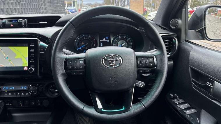 4.2" Multi information display, Bluetooth connectivity, Front and rear parking sensors, Fuel heater, Intelligent adaptive cruise control, Lane departure warning system, Lights on warning buzzer, PAS, Pre-collision system with pedestrian detection, Rear view camera, Road sign assist, Smart phone integration with Android auto & Apple CarPlay, Static guidelines on rear view camera, Tachometer, Touch 2 multimedia system with 8" display + GO navigation system, Digital radio (DAB), MP3 compatibility, Steering wheel mounted audio controls, USB connector, Auto Headlights, Automatic headlamp levelling, Black door handles, Black door mirrors, Black side steps, Body coloured front bumper, Dark grey rear bumper, Emergency brake light assist (EBS), Follow me home headlights, Front power windows with auto up and down function, Front wiper De-icer, Green tinted glass, Headlight cut-off reminder, Headlight washers, Heated door mirrors, Heated rear window, Invincible exterior - front bumper, body mouldings, tailgate handle, LED Daytime running lights, LED dual beam projector headlights, LED front fog lights, LED rear lights, Mud flaps front and rear, Power rear side window, Power retractable door mirrors, Rear fog lights, Rear window privacy glass, Tailgate damper, Trailer sway control, Underbody protection cover, Variable front wipers, Windscreen shadeband, 220V power socket, 60/40 split tip-up rear bench seat, Ambient door lighting, Automatic air conditioning, Carpet covered floor, Centre console coolbox, Centre console with lid, storage and armrest, Cooler in upper glove box, Heated front seats, Heated rear seats, Inner load hooks on cargo deck, Leather steering wheel and gearshift lever, Leather upholstery, Locking glovebox, Power adjustable drivers seat, Rear passenger footwell heating, Tilt adjustable steering wheel, Automatic front passenger airbag on/off switch, Child proof rear door locks, Front passenger airbag detector, Front seatbelt pre-tensioners + force limiters, Front seatbelt reminder, Isofix child seat preparation, Rear seatbelt pre-tensioners with load limiters, Supplement restraint system (SRS) 7 airbags - driver and passenger, knee, side and curtain, Immobiliser, Lockable tailgate, Remote central locking, Smart entry and start system button, 2 12v sockets, ABS with EBD, Auto limited slip differntial, Brake assist, Downhill Assist Control (DAC), Hill start assist, Load sensing proportioning system, Rear differential lock with auto disconnect, Stop/start function, Traction control, Vehicle stability control, 18" alloy wheels, Full size alloy spare wheel, Highway terrain tyres,