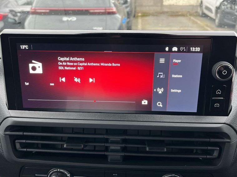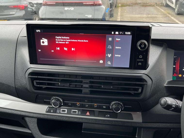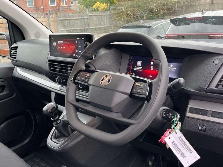 10" digital instrumental cluster, Central fascia display with digital clock, outside air temperature and audio information, Connectivity via BTA with RCE, Cruise control and speed limiter, Driver Attention Alert, level - 4 (Incl driver weariness camera), e-Call and b-Call, Electronic power steering (EPS), Energy absorbing steering column, Forward collision alert, Intelligent Speed Assist, Lane keeping assist, Mobile phone portal - Bluetooth, Vehicle microphone, Phone book access, Smartphone interface with Apple carplay/Android Auto, Multi-function trip computer, Rear parking distance sensor, TPMS (Tyre pressure monitoring system), Vauxhall connect, Audio controls mounted on steering wheel, Flexible short antenna (200mm), Two speakers and two tweeters, Automatic headlamps on/off, Automatic two speed and intermittent front wipers, Black door handles, Black front and rear bumpers, Black side protection mouldings, Black sliding door rail cover, Electrically adjustable + heated door mirrors, Familial vizor, Flexible roof mounted aerial, Front electric windows with one touch facility, Front windows tinted to 30 percentage opacity, Halogen headlamp with integrated daytime running lights, High beam assist, High level third brake light, Laminated acoustic windscreen, Lockable fuel filler cap, Offside and nearside sliding side access doors, Rain sensitive windscreen wipers, Rear fog lights, Twin solid rear doors, Twin unglazed rear doors opening to 180 degree, Visible VIN at windscreen base, 12V socket in lower glove box (1 only in cabin), Air recirculation facility, Closed upper and open lower glove boxes, Cup holders for driver and passenger at top of dashboard, Curitiba cloth upholstery, Dashboard storage areas, Driver's seat armrest, Ergonomic 6-way adjustable driver's seat with reach, rake, height and lumbar adjustment, Fixed floor mounted load restraint lashing eyes x8, Front door pockets with 1.5L bottle holder, Hard plastic floor protection in cabin, Height adjustable front headrests, Manual air conditioning, Overhead console with 1 ceiling lamp (dome type and 3 lamps), Reach and rake adjustable steering wheel, Roof trim in cabin (1st Row), USB socket in cabin (dashboard), Automatic unlocking system in case of crash, Door opening warning and audible lights on warning, Driver and front passenger airbags, Height adjustable 3-point pre-tensioner seatbelts with force limiter, Passenger airbag deactivation manually, Unfastened seat belt warning for driver and passengers, Dashboard mounted central locking push button and auto locking above 7mph, Engine deadlock immobiliser, Remote control central deadlocking, Selective cabin and cargo area locking via 3-button plip remote control key (x2), Selective door locking, Two keys with integral remote, 19 litres AdBlue tank, 70L fuel tank, ABS, Advanced emergency braking system (AEBS), EBA, Electric parking brake, Electronic brake force distribution (EBFD), ESC, ESP, Floor mounted handbrake lever, Hill start assist, Traction control, Mistral black dashboard trim with liquid paladium decor strip in mid-section, Michelin Agilis 2 tyres - 215/65 R16C,