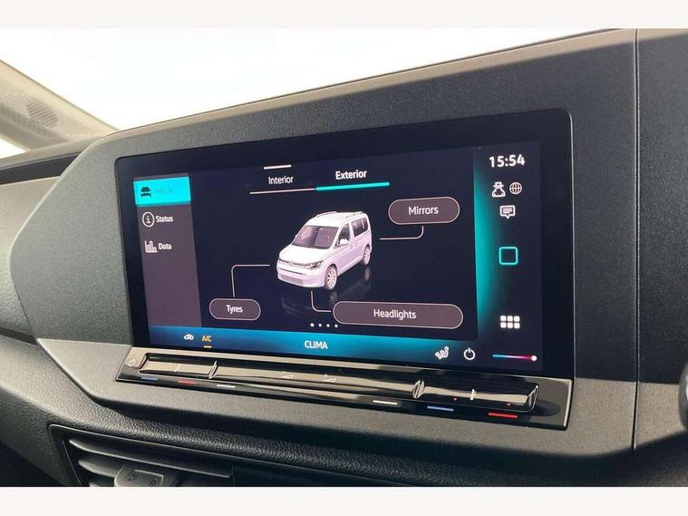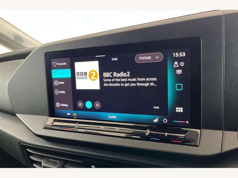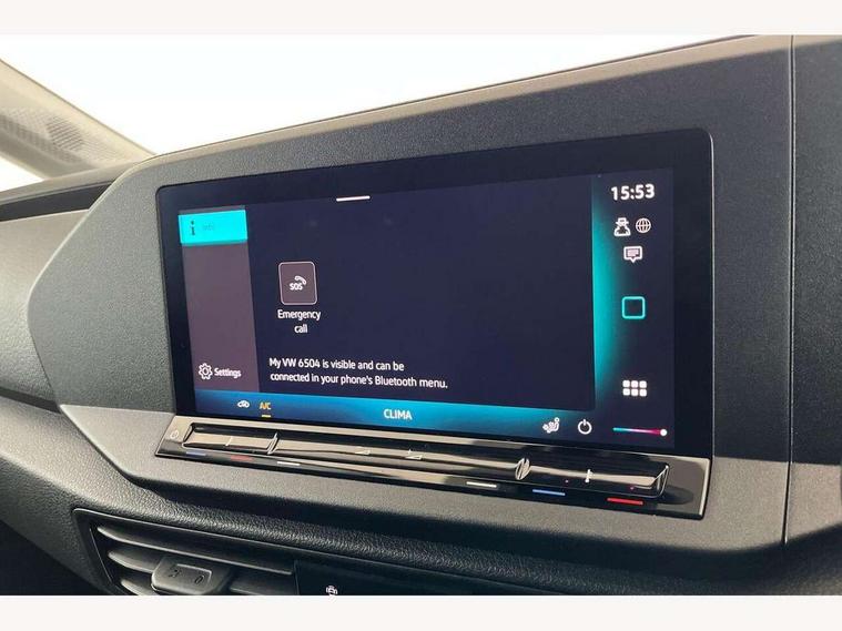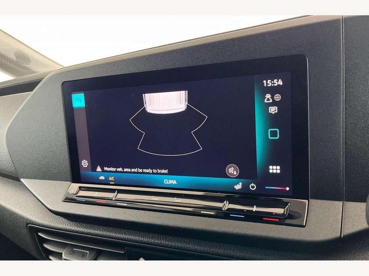Bluetooth - Mobile phone interface, Car2X technology, Driver alert system, eCall emergency system, Intelligent Speed Assist, Lane assist, Seatbelt warning indicator, Service indicator, Start-stop system with regenerative braking, 2 USB interfaces type C in dashboard, DAB Radio, We Connect Basic Preparation, Automatic hazard light activation under emergency braking, Black front and rear bumpers, Electric front windows, Heat insulating windscreen, Roof rail preparation, Windscreen wiper with variable intermittent delay and wash-wipe system, Dimming breakaway interior rear view mirror, Electronically controlled heating system, Interior light in headliner incorporting LED technology, Lockable glove compartment door with light, Manual heating and ventilation system, Manual height adjustment for front seats, Reach and rake adjustable steering column, Six lashing points for securing loads, 3-point seat belts in front, with pretensioner and height adjustment, Driver and front passenger airbag with front passenger airbag deactivation, Tyre pressure monitoring system, Anti-theft alarm system, interior monitoring, backup horn, and towing protection, Electronic engine immobiliser, Remote central locking with deadlocks, interior locking, Anti locking braking system (ABS), Automatic post collision braking system, Autonomous Emergency Braking Front Assist with Pedestrian Monitoring, Brake assist, Diesel particulate filter, Electric parking brake with auto hold function, Electronic brake force distribution (EBD), Electronic differential lock (EDL), Electronic stabilisation programme (ESP), Engine drag torque control (MSR), Hill hold assist, Traction control system (TCS), Decorative beige birch vein inserts, Full size wheel trims,