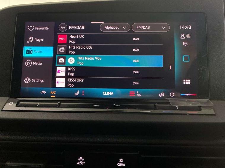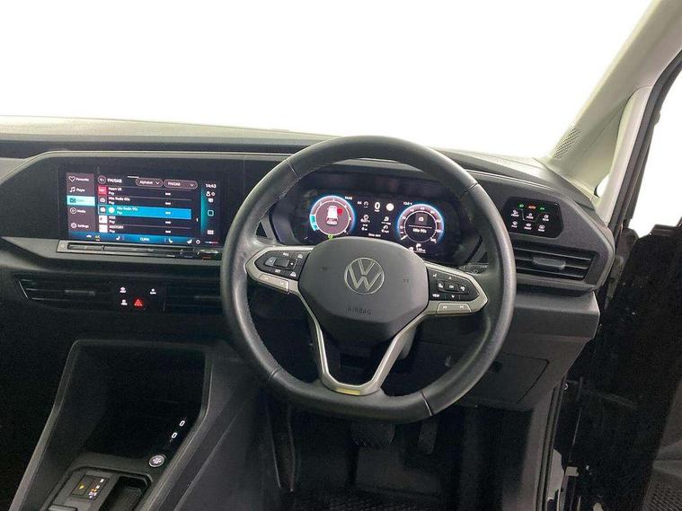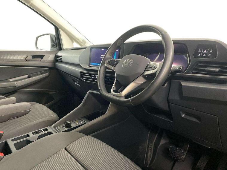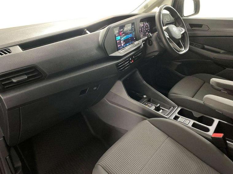 Bluetooth - Mobile phone interface, Car2X technology, Driver alert system, eCall emergency system, Intelligent Speed Assist, Lane assist, Seatbelt warning indicator, Service indicator, Start-stop system with regenerative braking, 2 USB interfaces type C in dashboard, App-Connect - Wireless for Apple CarPlay, DAB Radio, We Connect Plus Preparation, Automatic hazard light activation under emergency braking, Black painted exterior mirror housings, body-colored door handles and Silver sliding door rail, Body coloured bumpers, Electric front windows, LED rear combination lights, LED rear tail lights, Roof rail preparation, Windscreen wiper with variable intermittent delay and wash-wipe system, Dimming breakaway interior rear view mirror, Electronically controlled heating system, ergoComfort seats for driver, Interior light in headliner incorporting LED technology, Lockable glove compartment door with light, Manual heating and ventilation system, Manual height adjustment for front seats and seat cushion inclination and depth adjustment on drivers seat, Multi function leather steering wheel, Power-adjustable lumbar support for drivers seat, Reach and rake adjustable steering column, Six lashing points for securing loads, Steering wheel paddle shift, Storage compartments under driver and front passenger seats, Sun visors with mirror, airbag label on front passenger sun visor, Winter pack plus - Caddy, 3-point seat belts in front, with pretensioner and height adjustment, Driver and front passenger airbag with front passenger airbag deactivation, Tyre pressure monitoring system, Anti-theft alarm system, interior monitoring, backup horn, and towing protection, Electronic engine immobiliser, Remote central locking with deadlocks, interior locking, Anti locking braking system (ABS), Automatic post collision braking system, Brake assist, Diesel particulate filter, Electric parking brake with auto hold function, Electronic brake force distribution (EBD), Electronic differential lock (EDL), Electronic stabilisation programme (ESP), Engine drag torque control (MSR), Hill hold assist, Traction control system (TCS), Decorative beige birch vein inserts, Wheel bolts with anti-theft protection (unlockable),