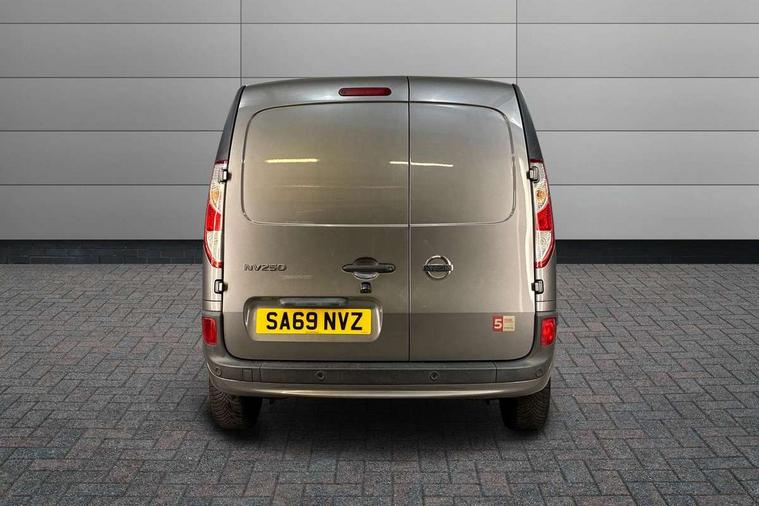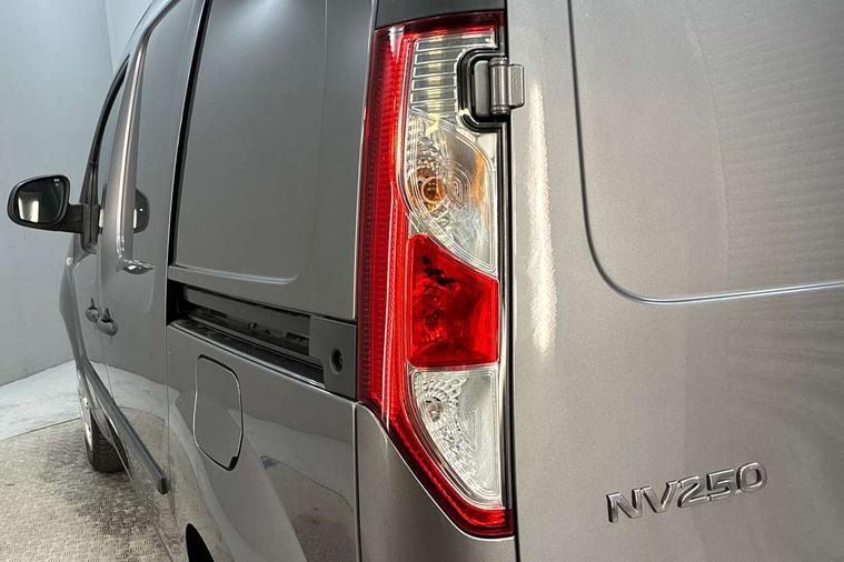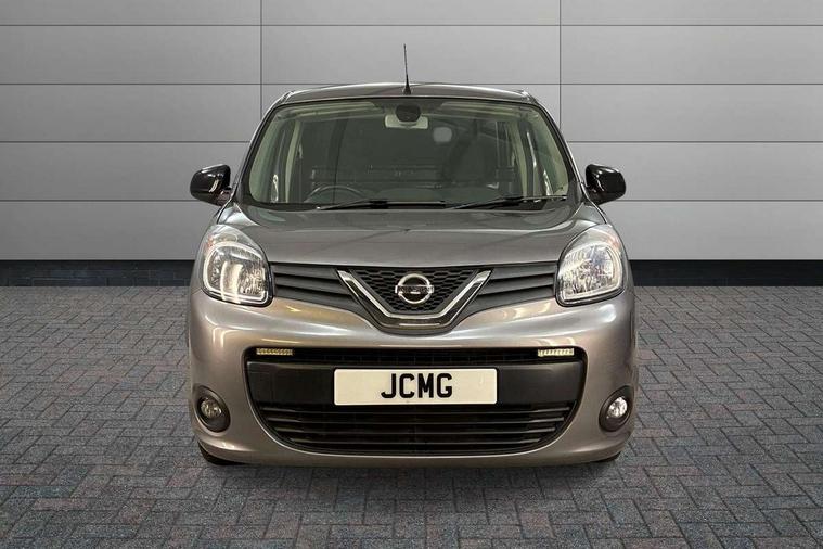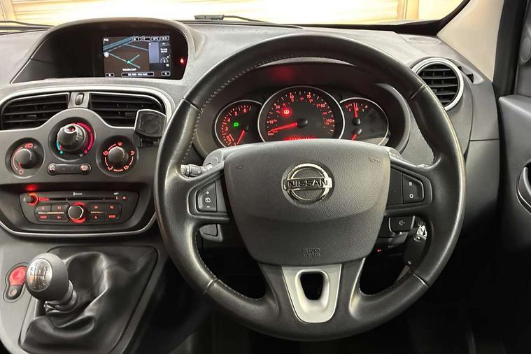 Bluetooth connectivity, Connected and integrated Nissan Connect Navigation with voice command, Cruise control with speed limiter, Eco mode, Gearshift indicator, Idle stop start, Low fuel warning light, Onboard computer, Power assisted steering, Rear parking sensors, Rear view camera, Rev counter, Service indicator, Trip computer, Tyre pressure monitor, 2 DIN, 7" touchscreen, Aux input socket, Digital radio (DAB), Steering wheel audio and hands free controls, USB socket, 180 degree asymmetric unglazed rear doors, Automatic headlights, Automatic wipers, Body colour door mirrors and bumpers, Dark grey side protection moldings, Electric folding door mirrors, Electric front windows with one touch drivers window, Electrically adjustable door mirrors, Fixed roof bars, Front fog lamps, Heated door mirrors, LED Daytime running lights, Left side sliding panel door, Nissan front end V Motion front grille, Panel french doors, Rear wiper, Side sheet metal panels, 12V socket, Central storage tray between front seats, Centre console with bottle holder and plastic armrest, Closed glove box, Driver and passenger compartment door bins, Driver seat belt warning and buzzer, Driver/passenger sun visor with pocket, Drivers seat slide, reclining and height adjustment, Front headrests, Leather steering wheel, Lighting in central, Load area lighting, Load area rubber floor covering, Manual air conditioning, Overhead parcel shelf, Steering wheel rake adjustment, Steering wheel reach adjustment, Storage for 3 cans or 2+1 ashtray, Storage for water bottle 1.5l in door bins, Storage in on the driver side, Tanega cloth upholstery, Tie down rings in load compartment, Driver's airbag, Height adjustable seatbelts, 2 button key, Electronic immobiliser, Remote central locking, Superlocking, Thatcham alarm system, ABS + EBD, ESP, Front discs and rear drums, Hill start assist, Vehicle dynamic control, 15" steel wheels, Full wheel covers, Spare wheel,