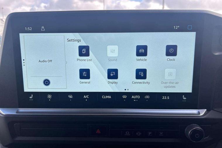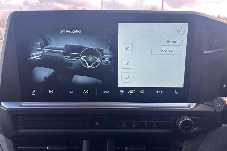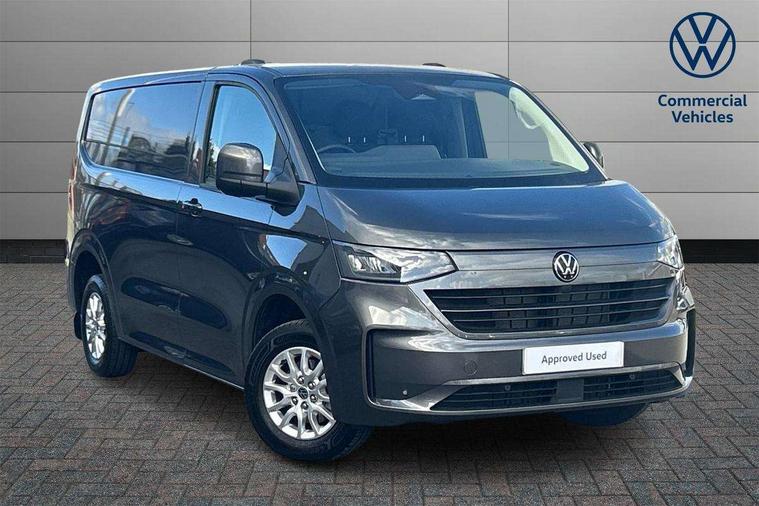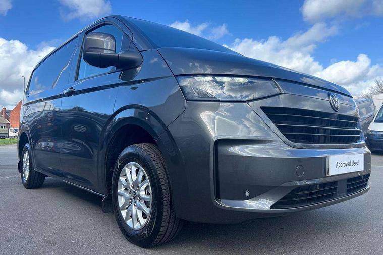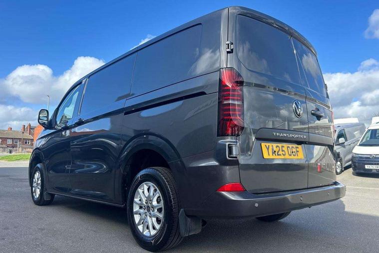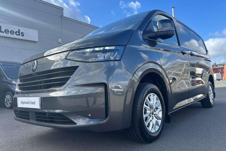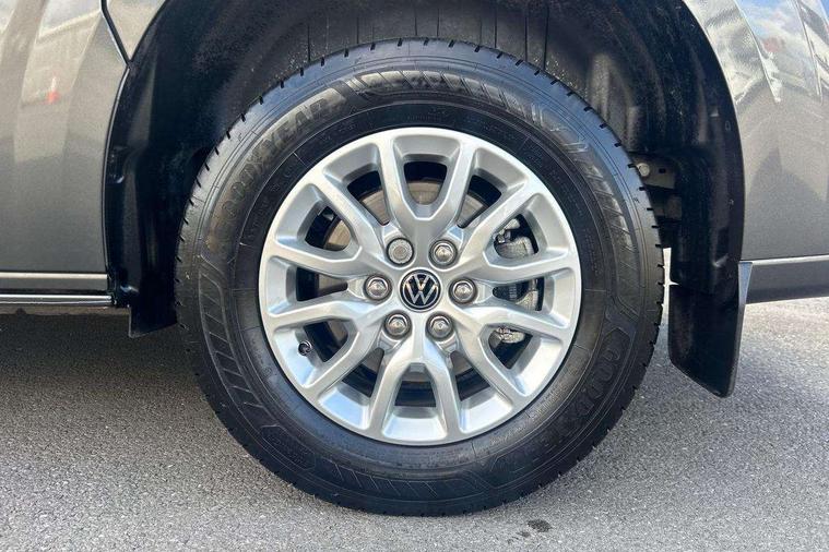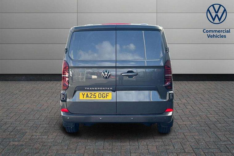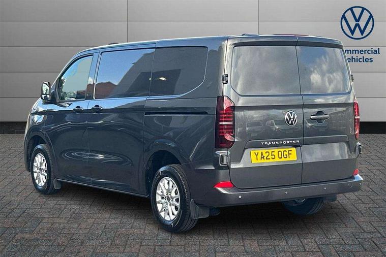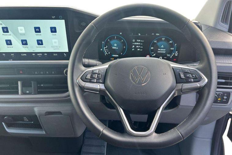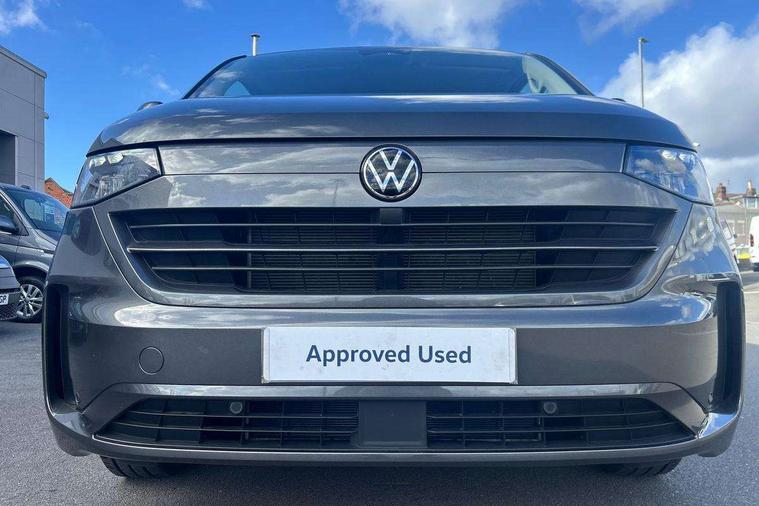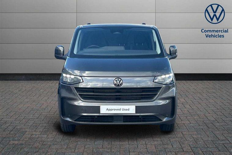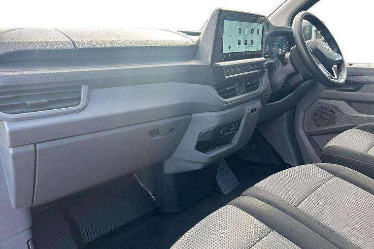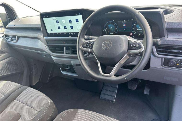 12" digital drivers display, 13" touchscreen infotainment display with wireless app connect and DAB radio, 5G Modem, Adaptive cruise control, Apple CarPlay and Android Auto, Dynamic road sign display, eCall emergency system, Electromechanical speed sensitive power steering, height and longitudinally adjustable steering column, Lane and blind spot assist with exit warning system, Preparation of VW connect and connect plus, Traffic jam assist, Wireless mobile phone charging, Wrong way driver warning, Body colour bumpers, Body coloured door handles, Body coloured door mirrors, Body coloured radiator grille, Electrically heated, adjustable and folding door mirrors, Heat reflecting side window glass, Mud flaps front and rear, Rear Transporter nameplate in black grained decorative trim, Vehicle opening configuration 1x 1st row of seats, 2x all doors, 12V outlet in centre console and 12V outlet on rear right D-pillar, 2x 15-W USB data/charging ports in dashboard and 1x USB-C, 1x USB-A center bottom, 2x LED lights in load compartment, 3x additional super bright LED lights in load compartment, 4 way height and tilt adjustable head restraints, 5 additional USB-C charging ports, Black plastic scuff plate for sliding door in cargo without illumination, Cabin interior lighting, Gear selector lever on steering wheel, Glasses compartment in driver side roof, Grab handle on A-pillar passenger side, Illuminated lockable glovebox, Lashing rings for reinforced floor covering, Narrow centre console with cup holder and compartment for mobile phone, Overhead storage compartment, Rubber floor covering in cab, Striped fabric upholstery, Without passenger seats in load compartment, Driver and front passenger airbag with front passenger airbag deactivation, Dual tone horn, Front and curtain airbags for driver and front passenger, Seat belt pretensioner for driver seat, Anti theft alarm system with interior monitoring in cab, backup horn and towing protection, Electronic immobiliser, Lockable wheel bolts, Preparation for alcohol ignition interlock, 5+ Promise, Alternator - 230A, Electromechanical brake booster, Electronic stability control, ABS, ASR with deactivation button, hill start assist and brake assist system,