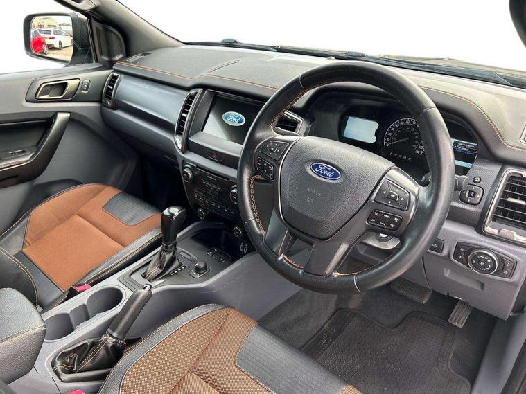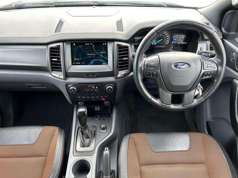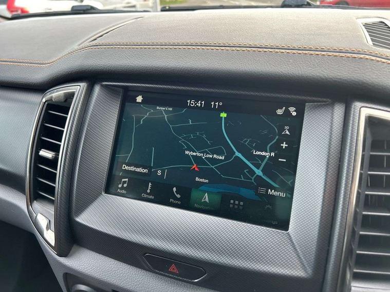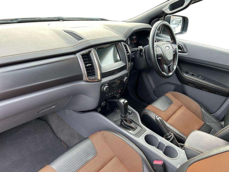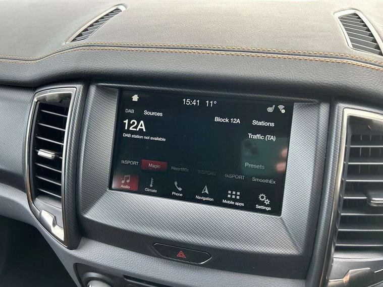 Bluetooth hands free kit with voice control, Digital tachograph, Easy fuel capless refuelling system, Multifunction colour display, Outside air temperature display with ice warning, PAS, Rear view camera, Reverse parking sensor, Satellite navigation system, SD card slot, Seatbelt warning indicator, SYNC 3.0 with 8" Colour touch screen, Trip computer, Tyre pressure monitor, 6 speakers, Aux input socket, DAB with CD and MP3 player, Steering wheel mounted audio controls, USB connection, Aerodynamic sports bar, Aluminium finish roof rails, Auto dimming rear view mirror, Black tailgate handle, Body colour bumpers, Body colour wheel arch mouldings, C-channel loadbox tie downs, Chrome effect scuff plates, Daytime running lights, Door mirror mounted LED turn signals, Electric folding door mirrors, Electric rear windows, Electric windows, one touch lowering + anti trap device (Driver only), Front fog lights, Front mud flaps, Headlamp levelling, Heated front window, Heated rear cab window, Pick up box sports rail extension, Plastic side steps, Privacy glass, Puddle lights in door mirrors, Rain sensitive wipers and auto headlights, Rear step in bumper, Steel double skinned pick up box with 2 position tailgate and inner fenders, Titanium coloured electrically adjustable and heated door mirrors with memory, Titanium grille, Under hood engine cover, 4 speed air recirculation fan + heater, 8 way adjustable and heated driver/single passenger seat with lumbar support, Ambient interior lighting, Caliber cloth/Journey grain leather upholstery, Centre console coolbox, Door operated dome light with courtesy switches on all doors, Driver and passenger sunvisors with illuminated vanity mirrors, Electronic air temperature control (EATC), Fixed bench with 2 height adjustable head restraints, Front centre armrest with storage bin, Front centre console with dual cup holders and armrest with double lidded storage box, Front door storage pockets, Front passenger grab handle, Front seat back map pockets, Graphite finish instrument panel, High performance bedliner with protective side wall, Illuminated glovebox, Interior tie down hooks and load rest, Leather gearknob, Leather wrapped steering wheel with contrast stitching, Load area light, Map reading lights, Overhead stowage with mood lighting, Overhead sunglasses holder, Premium carpet mats, Reach and rake adjustable steering column, Rear cup holders, Tie down rails and rope hooks, 3x3 point rear seatbelts, Child proof rear door locks, Driver and passenger airbag, Front passenger airbag deactivation, Front seatbelt pre-tensioners with load limiters, ISOFIX child seat mountings, Knee airbag, Side curtain airbags, Side Thorax Airbags, Speed sensing door locks, Additional flip key, Immobiliser, Lockable tailgate, Locking wheel nuts, Remote central locking, Spare wheel lock, Thatcham category 1 alarm, 2 x 12V power outlets, ABS + EBD, Emergency brake assist, ESP including traction control, Rear 12v plug, Centre console bezel with graphite finish, 18" Machined alloy wheels,