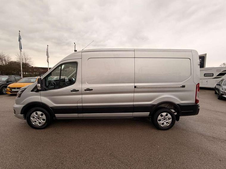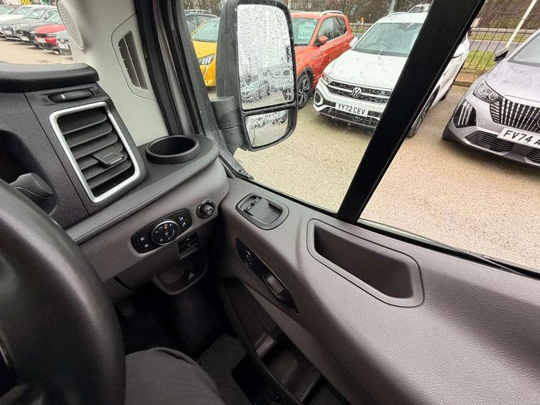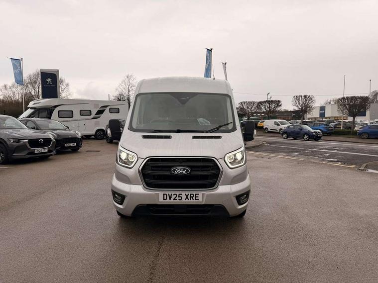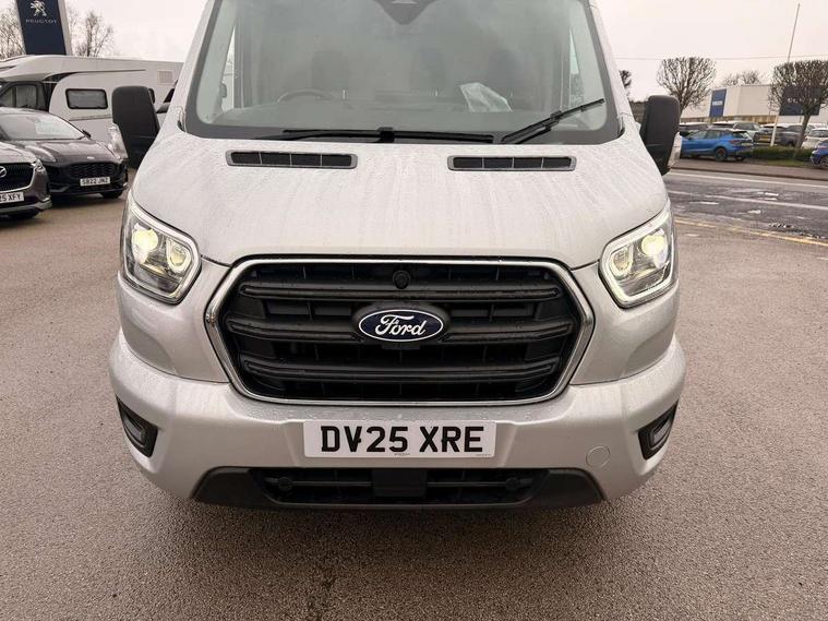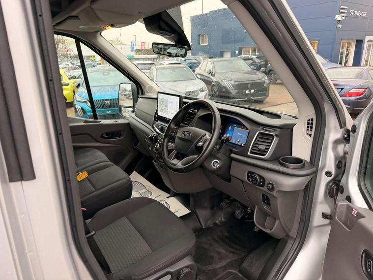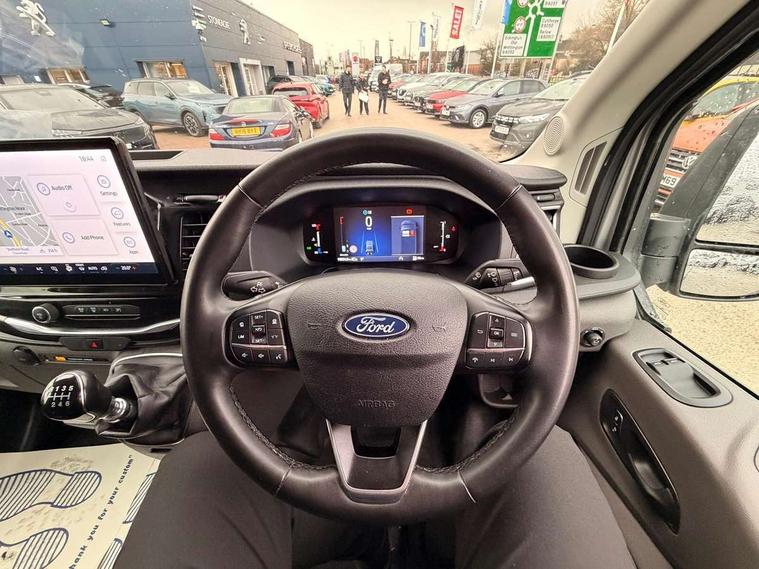 12" Touchscreen with SYNC4 navigation, 8" Part digital instrument cluster, Curvature Control, Easy fuel capless refuelling system, Emergency assistance, Emergency brake warning, Gearshift indicator light, Intelligent Speed Assist, PAS, Selectable drive mode, Vehicle maintenance monitor, Warning lights, Water in fuel filter with sensor, Wrong way alert, 4 radio speakers, Audio controls mounted on steering wheel, DAB Radio, Auto high headlamp, Automatic windshield wiper, Bi-Xenon headlights with LED daytime running lights, Body coloured lower front bumper, Body coloured upper front bumper, Digital rear view mirror, Driver large head/short arm mirror, Driver one touch up/down power windows, Electric windshield defroster, High intensity discharge headlamp with static cornering lights, High mounted stop lamp, Integrated indicators on door mirrors, Model badge, Plastic rear bumper, Quickclear heated windscreen, Rain sensing windscreen wipers, Rear fog lights, Rear mudflaps, Rear splash guards, Roof mounted radio antenna, Self coloured cargo door handle, Self coloured door handles, Self coloured front grille with chrome surround, Self coloured rear bumper with integral step, Static bending headlights, Wide bodyside self coloured mouldings, 2 litre twin facia mounted bottle holder, 4 spoke premium feel Sensico wrapped steering wheel, Automatic air conditioner with 12 inch multi function display, Driver sunglasses roof storage, Header mounted courtesy lights - 2 map lights, Leather gear shift knob, Leather steering wheel, Load compartment tie down loops, Lockable glove box lid, Overhead console, Partial molded headliner, Partial rubber inside floor cover, Radio with remote stalks, Reach and rake adjustable steering column, Storage box under dual passenger seat, Driver assistance pack 6 - Transit, Driver and passenger seatbelt reminder, Driver front seatbelt buckle pretensioner, Front passenger airbag deactivation, Tyre pressure sensors, Wireless beltminders, Configurable Unlocking, Door entry remote control unit 2 Fobs key, Locking wheel lug nut, Shielded power door deadlocks, Speed dependent power lock group, Two step door unlock system, Visible Vehicle Identification Number (VIN), 2 x 12V power outlets, ABS + ESP + Hill start assist, Auto start/stop system, Cold start (-20), Electric parking brake, Electronic dynamic cornering control, Front independent MacPherson struts, linear rate coil springs, stabiliser bar, gas pressurised shock absorbers and rear leaf springs, Non limited slip differential front axle, Rear axle Alt A - Narrow track, Side wind mitigation, 16" 5 spoke alloy wheels x 6.5, Delete wheel covers, P235/65 R16C BSW tyre size, Single rear wheels,