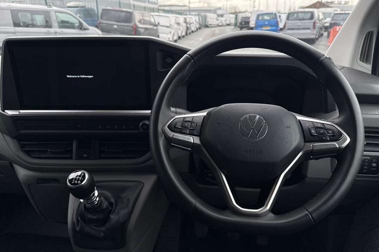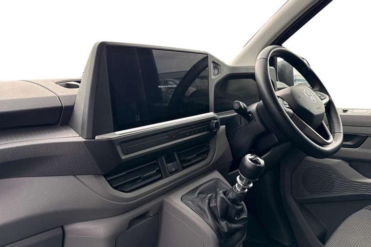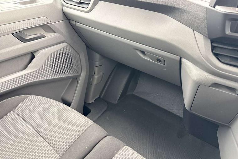 12" digital drivers display, 13" touchscreen infotainment display with wireless app connect and DAB radio, 5G Modem, Adaptive cruise control, Apple CarPlay and Android Auto, Dynamic road sign display, eCall emergency system, Electromechanical speed sensitive power steering, height and longitudinally adjustable steering column, Lane and blind spot assist with exit warning system, Preparation of VW connect and connect plus, Wireless mobile phone charging, Wrong way driver warning, Body colour bumpers, Body coloured door handles, Body coloured door mirrors, Body coloured radiator grille, Electrically heated, adjustable and folding door mirrors, Heat reflecting side window glass, Mud flaps front and rear, Rear Transporter nameplate in black grained decorative trim, Vehicle opening configuration 1x 1st row of seats, 2x all doors, 12V outlet in centre console and 12V outlet on rear right D-pillar, 2x 15-W USB data/charging ports in dashboard and 1x USB-C, 1x USB-A center bottom, 2x LED lights in load compartment, 3x additional super bright LED lights in load compartment, 4 way height and tilt adjustable head restraints, 5 additional USB-C charging ports, Black plastic scuff plate for sliding door in cargo without illumination, Cabin interior lighting, Glasses compartment in driver side roof, Grab handle on A-pillar passenger side, Illuminated lockable glovebox, Lashing rings for reinforced floor covering, Leatherette gear lever, Narrow centre console with cup holder and compartment for mobile phone, Overhead storage compartment, Rubber floor covering in cab, Striped fabric upholstery, Without passenger seats in load compartment, Driver and front passenger airbag with front passenger airbag deactivation, Dual tone horn, Front and curtain airbags for driver and front passenger, Seat belt pretensioner for driver seat, Anti theft alarm system with interior monitoring in cab, backup horn and towing protection, Electronic immobiliser, Lockable wheel bolts, Preparation for alcohol ignition interlock, 5+ Promise, Alternator - 230A, Electromechanical brake booster, Electronic stability control, ABS, ASR with deactivation button, hill start assist and brake assist system,