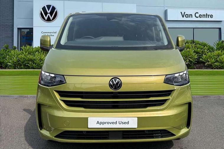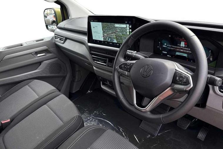 12" digital drivers display, 13" touchscreen infotainment display with wireless app connect and DAB radio, 5G Modem, Adaptive cruise control, Apple CarPlay and Android Auto, Dynamic road sign display, eCall emergency system, Electromechanical speed sensitive power steering, height and longitudinally adjustable steering column, Lane and blind spot assist with exit warning system, Preparation of VW connect and connect plus, Wireless mobile phone charging, Wrong way driver warning, Body colour bumpers, Body coloured door handles, Body coloured door mirrors, Body coloured radiator grille, Electrically heated, adjustable and folding door mirrors, Heat reflecting side window glass, Mud flaps front and rear, Rear Transporter nameplate in black grained decorative trim, Vehicle opening configuration 1x 1st row of seats, 2x all doors, 12V outlet in centre console and 12V outlet on rear right D-pillar, 2x 15-W USB data/charging ports in dashboard and 1x USB-C, 1x USB-A center bottom, 2x LED lights in load compartment, 3x additional super bright LED lights in load compartment, 4 way height and tilt adjustable head restraints, 5 additional USB-C charging ports, Black plastic scuff plate for sliding door in cargo without illumination, Cabin interior lighting, Glasses compartment in driver side roof, Grab handle on A-pillar passenger side, Illuminated lockable glovebox, Lashing rings for reinforced floor covering, Leatherette gear lever, Narrow centre console with cup holder and compartment for mobile phone, Overhead storage compartment, Rubber floor covering in cab, Striped fabric upholstery, Without passenger seats in load compartment, Driver and front passenger airbag with front passenger airbag deactivation, Dual tone horn, Front and curtain airbags for driver and front passenger, Seat belt pretensioner for driver seat, Anti theft alarm system with interior monitoring in cab, backup horn and towing protection, Electronic immobiliser, Lockable wheel bolts, Preparation for alcohol ignition interlock, 5+ Promise, Alternator - 230A, Electromechanical brake booster, Electronic stability control, ABS, ASR with deactivation button, hill start assist and brake assist system,