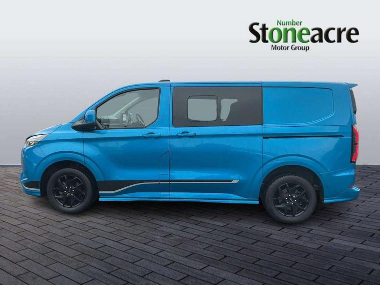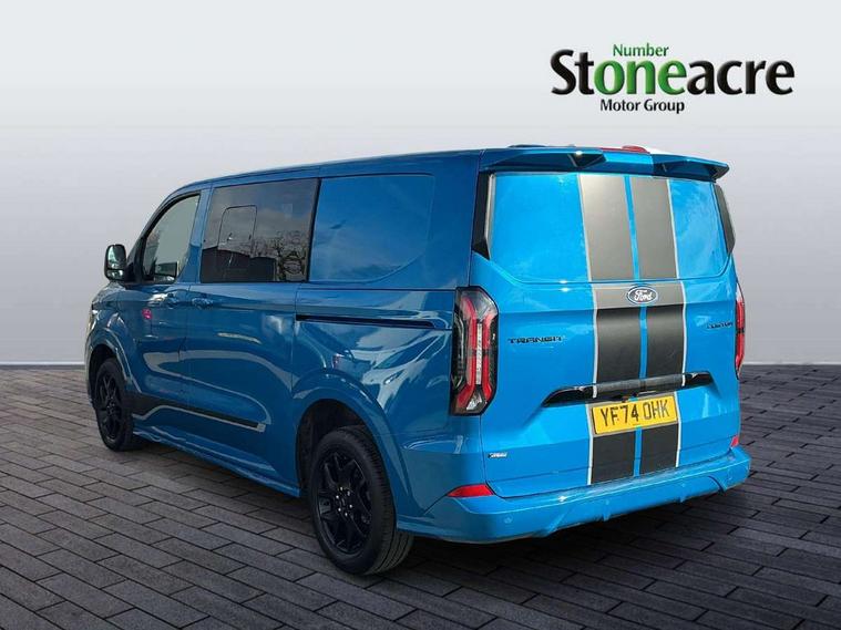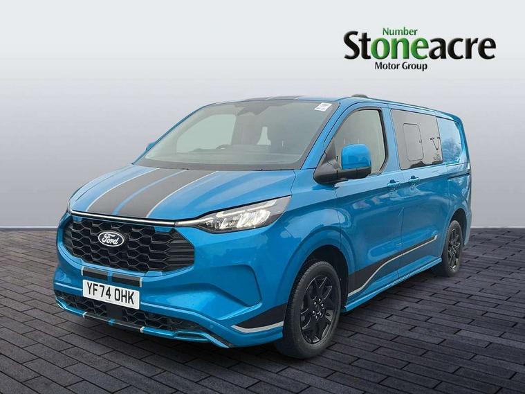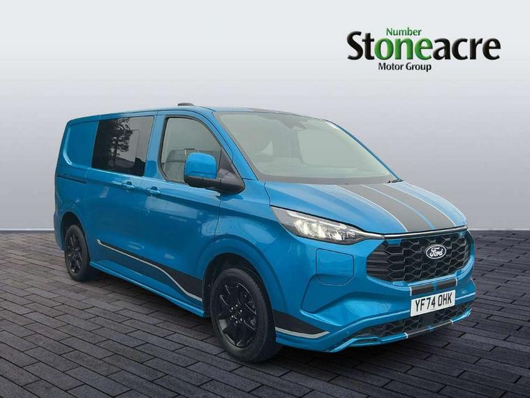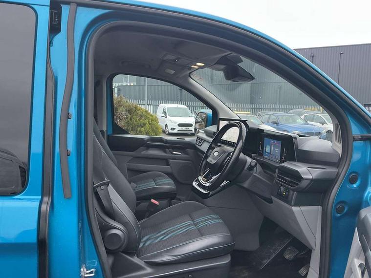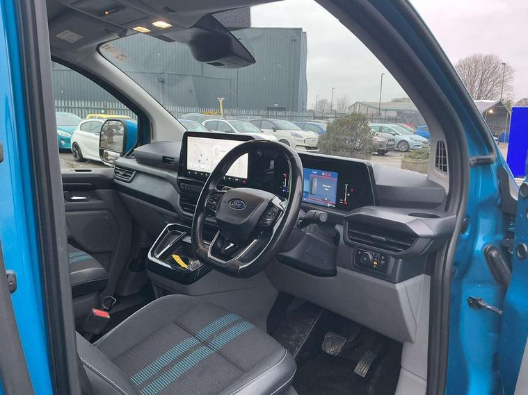 13" Touchscreen, 5G embedded modem, AECS NO SMS/Roll Detect 2G, Close Assist, PAS, Rear USB charge port, Tyre pressure monitor, Wireless charging, SYNC 4 - Android Auto/Apple Car Play, advance speech recognition, over the air update capability, Automatic headlights, Automatic windscreen wipers, Body coloured door mirrors, Body coloured front bumper, Body coloured rear bumpers, Daytime running lights, Electric front windows with one touch facility for driver and front passenger, Front mud flaps, Hood Accent Stripes, LED tail lamps, Low roof line, Molded load floor liner, Power cinch latch, Privacy glass, Quickclear front window defroster, Rear cargo hinged door, Rear spoiler, Trailer sway control, 3 Seat Rear seats with under seat stowage, 4 Load compartment tie down loops, Carpet floor in first row and second row, Courtesy light, DCiV Moulded polymer bulkhead, Dual zone automatic air conditioning, Interior grab handle with driver's sunglasses holder, Large console, LED lights, Locking glove box lid, Rear reading light, Rubber in cargo area, Sensico gearshift knob, Super bright load compartment lights, USB/Aux power socket, Complete single passenger seat pack - Transit custom Sport, Passenger airbag, 2 remote keys, Alcohol Interlock wiring preparation pack, Keyless entry and start, Locking wheel lug nut, Thatcham category 1 alarm, 63 litre fuel tank, ABS, ESP, Hill launch assist, Traction control, 16" Steel spare wheel, Full wheelcovers,