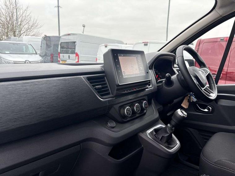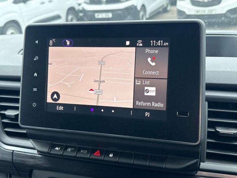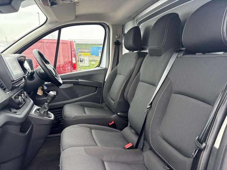 4.2" TFT colour driver information display, Driver attention alert, ECO mode button, Gearshift indicator, PAS, Smart phone integration with Android auto & Apple CarPlay, Trip computer, Body coloured door mirrors, Body coloured door rail and rear tail light column with chrome grille, Body coloured front bumper, Electric folding door mirrors, Electric front windows with one touch drivers window, Full LED headlights with C-shaped DRL, Heated with electric adjustment door mirrors and external temperature sensors, Roof bar fixings, Wide view mirror, 12V power socket in front, 16 load anchorage points, Closed glovebox, Height adjustable drivers seat with armrest and lumbar adjustment, Interior LED cabin lighting, Java cloth upholstery, Mobile office, Passenger seat bench with under seat storage, Premium dashboard with horizontal grain and chrome styling, Premium faux leather steering wheel, Reach and rake adjustable steering column, Visibility pack - Trafic, 3 point height adjustable seatbelts with pretensioners and load limiter, Driver and passenger seatbelt reminder, Driver's airbag, Alarm - Thatcham T2 volumetric alarm, Deadlocking, Electronic immobiliser, Remote central locking, 12v socket in loadspace, 20L AdBlue tank, 4 disc brakes, 80 litre fuel tank, ABS with EBD (Electronic Brake force Distribution), Active emergency braking system, ESC (Electronic Stability Control) with Hill Start Assist and Grip Xtend, 17" Avens alloy wheels,