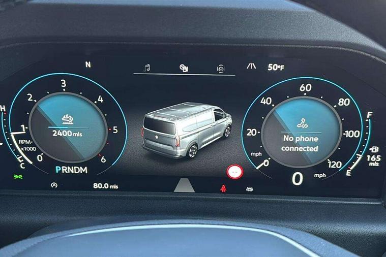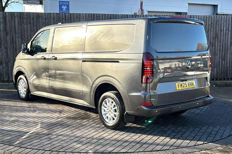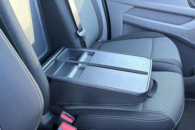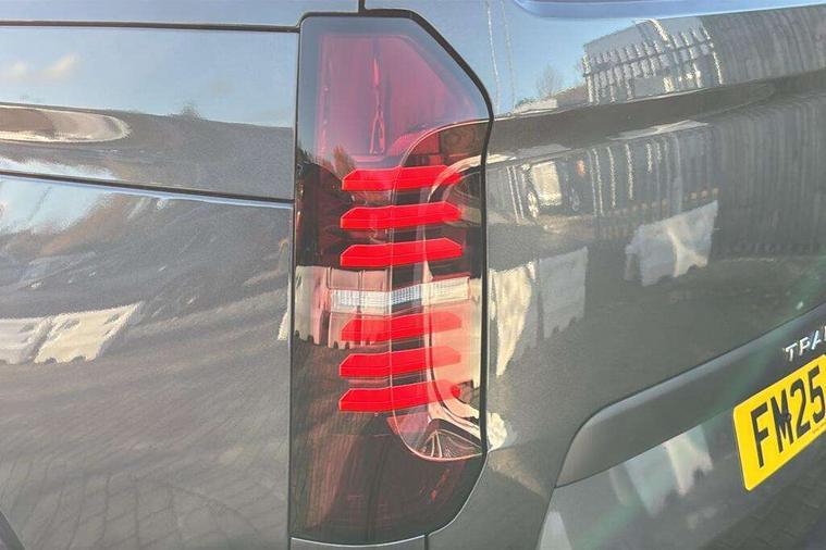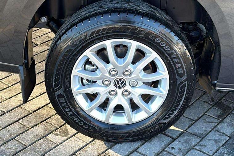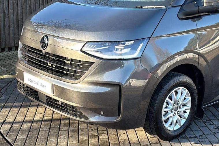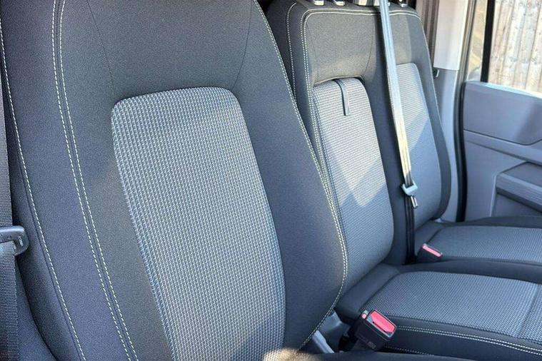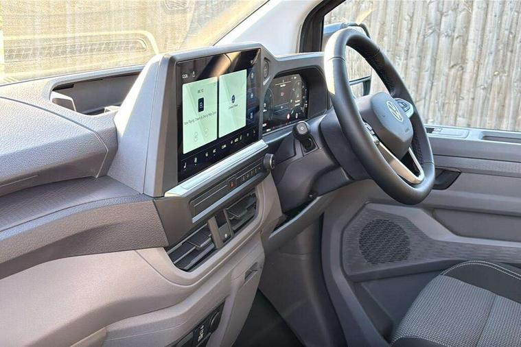 12" digital drivers display, 13" touchscreen infotainment display with wireless app connect and DAB radio, 5G Modem, Adaptive cruise control, Apple CarPlay and Android Auto, Dynamic road sign display, eCall emergency system, Electromechanical speed sensitive power steering, height and longitudinally adjustable steering column, Lane and blind spot assist with exit warning system, Preparation of VW connect and connect plus, Traffic jam assist, Wireless mobile phone charging, Wrong way driver warning, Body colour bumpers, Body coloured door handles, Body coloured door mirrors, Body coloured radiator grille, Electrically heated, adjustable and folding door mirrors, Heat reflecting side window glass, Mud flaps front and rear, Rear Transporter nameplate in black grained decorative trim, Vehicle opening configuration 1x 1st row of seats, 2x all doors, 12V outlet in centre console and 12V outlet on rear right D-pillar, 2x 15-W USB data/charging ports in dashboard and 1x USB-C, 1x USB-A center bottom, 2x LED lights in load compartment, 3x additional super bright LED lights in load compartment, 4 way height and tilt adjustable head restraints, 5 additional USB-C charging ports, Black plastic scuff plate for sliding door in cargo without illumination, Cabin interior lighting, Gear selector lever on steering wheel, Glasses compartment in driver side roof, Grab handle on A-pillar passenger side, Illuminated lockable glovebox, Lashing rings for reinforced floor covering, Narrow centre console with cup holder and compartment for mobile phone, Overhead storage compartment, Rubber floor covering in cab, Striped fabric upholstery, Without passenger seats in load compartment, Driver and front passenger airbag with front passenger airbag deactivation, Dual tone horn, Front and curtain airbags for driver and front passenger, Seat belt pretensioner for driver seat, Anti theft alarm system with interior monitoring in cab, backup horn and towing protection, Electronic immobiliser, Lockable wheel bolts, Preparation for alcohol ignition interlock, 5+ Promise, Alternator - 230A, Electromechanical brake booster, Electronic stability control, ABS, ASR with deactivation button, hill start assist and brake assist system,