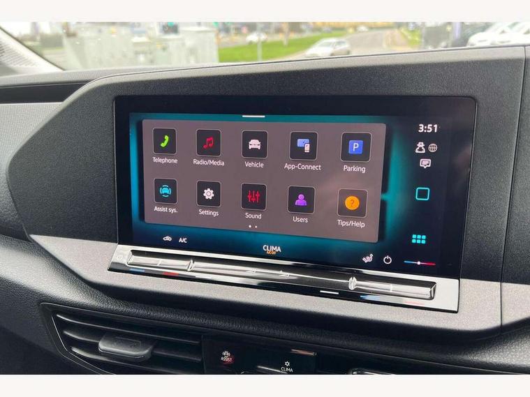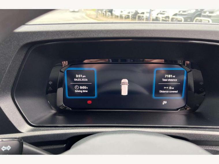 Bluetooth - Mobile phone interface, Car2X technology, Driver alert system, eCall emergency system, Intelligent Speed Assist, Lane assist, Seatbelt warning indicator, Service indicator, Start-stop system with regenerative braking, 2 USB interfaces type C in dashboard, DAB Radio, We Connect Basic Preparation, Automatic hazard light activation under emergency braking, Black front and rear bumpers, Electric front windows, Heat insulating windscreen, Roof rail preparation, Windscreen wiper with variable intermittent delay and wash-wipe system, Dimming breakaway interior rear view mirror, Electronically controlled heating system, Interior light in headliner incorporting LED technology, Lockable glove compartment door with light, Manual heating and ventilation system, Manual height adjustment for front seats, Reach and rake adjustable steering column, Six lashing points for securing loads, 3-point seat belts in front, with pretensioner and height adjustment, Driver and front passenger airbag with front passenger airbag deactivation, Tyre pressure monitoring system, Anti-theft alarm system, interior monitoring, backup horn, and towing protection, Electronic engine immobiliser, Remote central locking with deadlocks, interior locking, Anti locking braking system (ABS), Automatic post collision braking system, Autonomous Emergency Braking Front Assist with Pedestrian Monitoring, Brake assist, Diesel particulate filter, Electric parking brake with auto hold function, Electronic brake force distribution (EBD), Electronic differential lock (EDL), Electronic stabilisation programme (ESP), Engine drag torque control (MSR), Hill hold assist, Traction control system (TCS), Decorative beige birch vein inserts, Full size wheel trims,