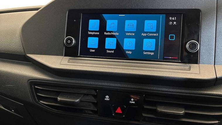 Driver alert system includes drowsiness detection, Emergency call control unit with eCall, Multi-function Display, Seatbelt warning indicator, Service indicator, Start-stop system with regenerative braking, DAB Radio, We Connect Basic Preparation, Automatic hazard light activation under emergency braking, Black front and rear bumpers, Electric front windows, Roof rail preparation, Windscreen wiper with variable intermittent delay and wash-wipe system, Dimming breakaway interior rear-view mirror, Electronically controlled heating system, Interior light in headlining, Lockable glove compartment door with light, Manual height adjustment for front seats, Reach and rake adjustable steering column, Six lashing points for securing loads, Sun visors, with ticket pocket on driver side, 3-point seat belts in front, with pretensioner and height adjustment, Driver and front passenger airbag with front passenger airbag deactivation, Electronic engine immobiliser, Remote central locking with deadlocks, interior locking, Anti locking braking system (ABS), Automatic post collision braking system, Autonomous Emergency Braking Front Assist with Pedestrian Monitoring, Electric parking brake with auto hold function, Electronic brake force distribution (EBD), Electronic differential lock (EDL), Electronic stabilisation programme (ESP), Emergency brake assist, Engine drag torque control (MSR), Hill hold assist, Traction control system (TCS), Decorative beige birch vein inserts,