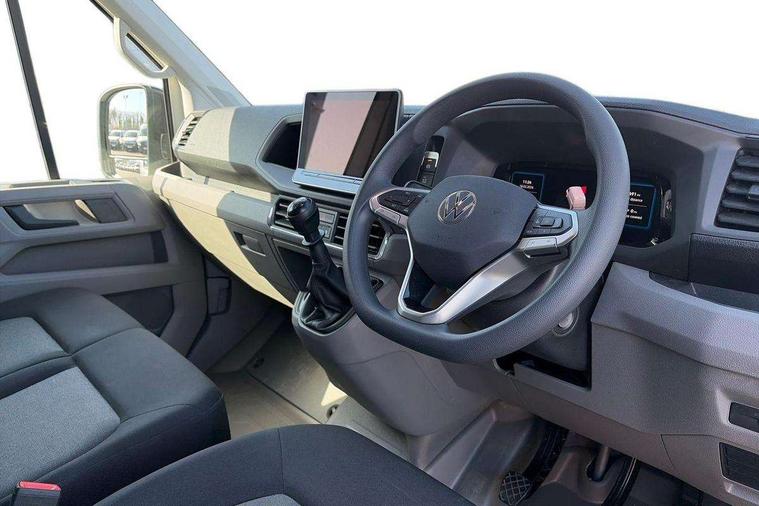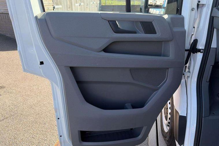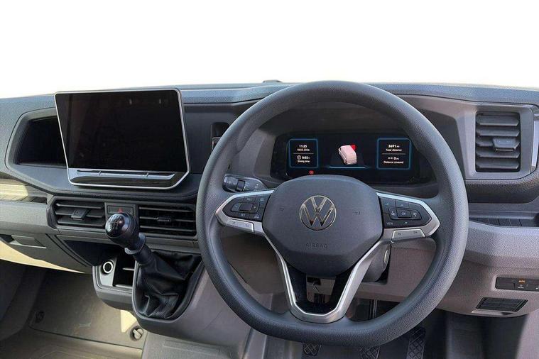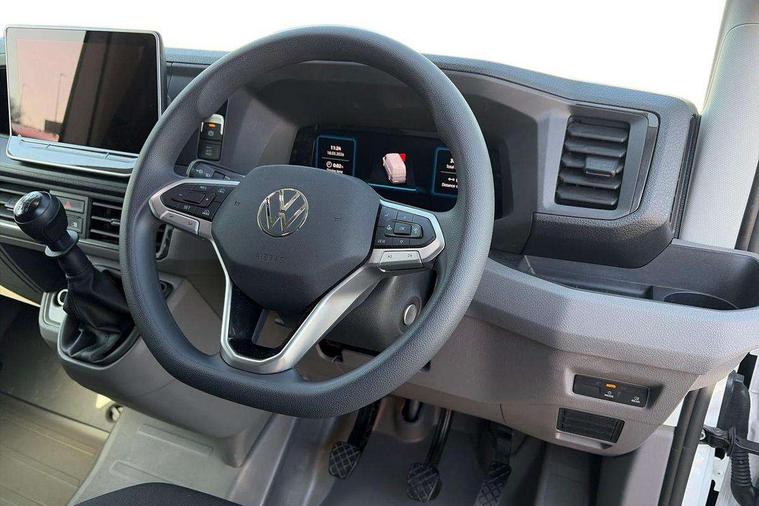 Bluetooth, Digital clock, Driver alert system, E-call + We connect basic preparation, Instrument cluster, Lights on warning buzzer, Locking fuel cap, Multi-function Display Plus, Rev counter, Service indicator, Speedometer, Voice control system, Composition media with 6.5" with we connect plus prep, 4 speaker, multifun display plus, USB, mob interface, app con, "We connect function", DAB Radio, Auto low beam mode, Leaving home function and manual coming home function, Cab doors, Convex and wide angle mirror, Driver seatbelt warning light, Electric windows, Electrically heated and adjustable door mirrors, Half painted front bumper, Heat insulating glass, Indicators in front door mirrors, One towing eye in front, Rear wing doors with 270 degree hinges, Special identification plate, Unpainted radiator grille, Air recirculation system, Ashtray, Centre console storage tray, CFCU preparation, Charcoal filter, Climatic air conditioning, Document holder on centre console, Drinks holders, Electromechanical Servotronic steering, Electronically controlled heating system, Fully adjustable suspension type driver seat, Grab handles on rear entry pillars, Height adjustable head restraints, Height and reach adjustable steering wheel, Illuminated glove compartment with lockable lid, Interior light, including 2 reading lights, Interior light, switchable by door, Jack and tool kit, Preparation for interface for external use with terminal block, Storage compartments in doors and in step, right, Storage tray on dashboard, Two 12V outlets in the cab (in the dashboard), Without rear side trim panel passenger load compartment, Non-smokers pack - Crafter, 3 point inertia reel belt on all seats, Automatic hazard light with emergency braking, Crosswind assist, Driver and front passenger airbag with front passenger airbag deactivation, Height adjustable seatbelts for outer cab seats, 1 rigid key, Anti-theft alarm with interior monitor, back up horn and tow away protect, overhead storage with two 1-DIN, reading light, SAFELOCK with 2 remote keys, Engine immobiliser, ABS, Automatic post collision braking system, EBA, EBD, EDL, ESP, Front disc brakes, HBA, Hill start assist, Parking brake - hill hold control, Start and stop system with regenerative braking, TCS, Hub cap covers,