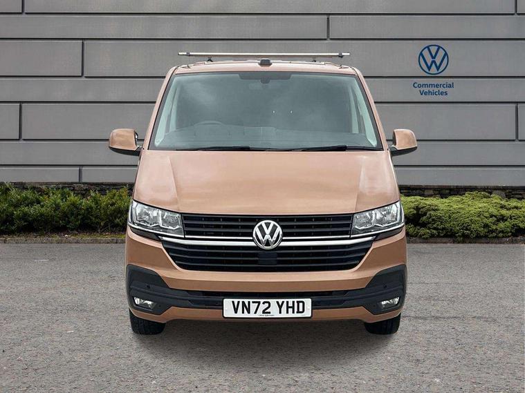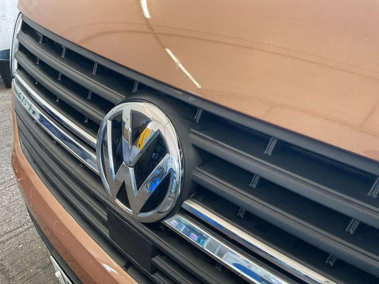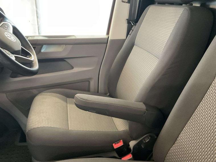 Adaptive cruise control, Cross wind assist, Dimmable illuminated instruments, Driver alert with Multi-function display plus, eCall emergency system, Forward collision warning front assist with autonomous emergency braking, Mobile phone interface, Multi function display plus with black and white display, 2 USB interfaces type C in dashboard, 4 speakers with 2 tweeters and 2 woofers, Composition colour radio with 6.5" touchscreen, Digital radio reception (DAB+), Volkswagen app connect, Automatic headlight control, leaving home and manual coming home feature, Closing rear wing door with unlatching from the inside, Front fog lamps with cornering light, Heat insulating glass (green) in cab and passenger/load compartment, Heated front windscreen, Left convex exterior mirror, Power folding adjustable door mirrors with separately heated, Radiator grille with 2 chrome trims, Rear wing doors without window apertures, Right convex exterior mirror, Transporter nameplate on the rear fender, Windshield wiper intermittent control with rain sensor for windshield wipers, 3 spoke leather wrapped multi function steering wheel, Auto dimming breakaway interior rear view mirror, Comfort headliner in cab, hardboard roof trim in passenger and load compartment, Dust/pollen filter, Front and rear left without window closed side panel in load compartment, Front seats on the right in 1st row of seat, Glove compartment with illumination, Heavy duty tool kit and jack, High partition, Interior plastic loading edge protection, LED Interior lighting in load and passenger compartment, Manual adjustable lumbar support for right single seat in 1st row seats, Refrigerant R134a, Standard lower part dashboard in palladium, Storage compartments on cab seats and reading light, Without right side window apertures in passenger and load compartment, Comfort pack - Transporter, Exterior pack without fog light- Transporter, Non smoker pack - Transporter, 3 point height adjustable seat belts on outer seats cab with electric pretensioners, Driver and front passenger airbag with front passenger airbag deactivation, Warning buzzer and light for driver and front passenger seat belt not fastened, Without child safety lock in passenger compartment, Anti theft alarm system with interior monitoring in cab, backup horn and towing protection, Lockable wheel bolts, 16" chassis with 16" brake system, Diesel particulate filter, Electronic stability control, ABS, ASR with deactivation button, hill start assist and brake assist system, Start/stop system with regenerative breaking, 16" Clayton alloy wheels,