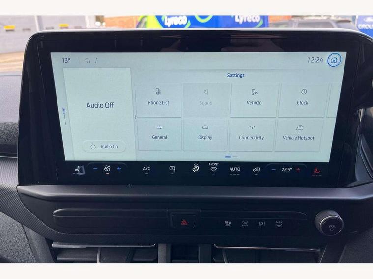 13" Touchscreen, 5G embedded modem, AECS NO SMS/Roll Detect 2G, PAS, Tyre pressure monitor, SYNC 4 - Android Auto/Apple Car Play, advance speech recognition, over the air update capability, Automatic headlights, Automatic windscreen wipers, Body coloured door mirrors, Body coloured front bumper, Body coloured rear bumpers, Daytime running lights, Electric front windows with one touch facility for driver and front passenger, Front mud flaps, Front splash guards, Low roof line, Quickclear front window defroster, Rear cargo hinged door, Rear splash guards, Trailer sway control, 8 Load compartment tie down loops, Courtesy light, Interior grab handle with driver's sunglasses holder, LED lights, Locking glove box lid, Sensico gearshift knob, 2 remote keys, Alcohol Interlock wiring preparation pack, Keyless entry and start, Locking wheel lug nut, Thatcham category 1 alarm, 20L AdBlue tank, ABS, Diesel particulate filter, ESP, Hill launch assist, Traction control, Full wheelcovers,