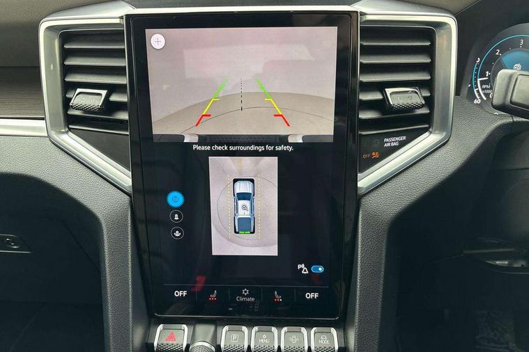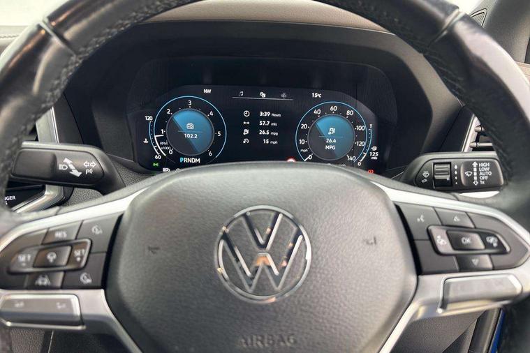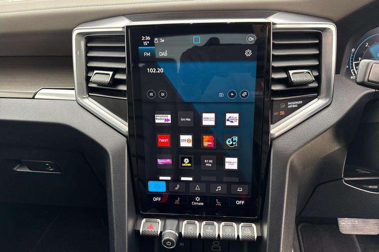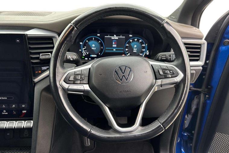 12-inch Infotainment system, Adaptive cruise control ACC with predictive speed limiter, Area View 360 camera, Autonomous emergency braking front assist with monitoring and braking for vehicles, pedestrians, cyclists, Digital Cockpit 12-inch, Dynamic road sign display, eCall emergency system, Lane keeping system lane assist and lane change system side assist, Navigation system, Park assist including park distance control in front and rear, rear traffic alert, PAS, Selector lever, Without manual activation of 360-degree surround and cargo area lighting, Without tachograph, Without trailer maneuvering system Trailer Assist, 1 USB charging socket on the interior rearview mirror, 6 speakers, AM / FM antenna and digital radio reception DAB+, Preparation for VW Connect Basic and VW Connect Navigation, Advanced high-beam control Dynamic Light Assist for IQ.LIGHT LED matrix headlamps, Black bumper in rear with chrome-plated styling elements, Body coloured exterior mirror housings and door handles, Body coloured front bumper, Body-colored rear gate handle, Chrome styling roll bar, Dark-tinted privacy glass rear side windows and rear window, Diversity antenna, Dynamic headlight range control, Exterior mirrors, power-adjustable, heated and power-folding, with surround lighting, Front and rear power windows, Fuel filler door with integrated misfueling prevention device, Heated rear window, IQ Light LED matrix headlamps, LED front fog lamps, LED rear combination lamps, Mud flaps front and rear, Radiator grille with chrome bezel, Satin air vents, Step with chrome insert, Trailer hitch preparation, Windshield sound-insulating with windshield heater, Windshield wiper intermittent control with rain sensor, Without hardtop, Without roof rails/roof rack, Without towing eyes in rear, Without trailer hitch, Without underride guard, 10-way power-adjustable driver seat and 8-way adjustable front passenger seat, 3 head restraints in 2nd row of seats, 3 point belts in addition height-adjustable in 1st row of seats, 3-point belts in 2nd row of seats, 3-seater bench in 2nd row of seats, Ambient lighting, Art velours upholstery, Carpet floor covering, Center armrest in rear, Child seat anchors ISOFIX on outer rear seats, i-Size compatible, Child seat recognition, Door handles in chrome, Driver seat with map pocket, Dual-zone climate control Climatronic, Gearshift/selector lever knob, leather, Glove compartment, illuminated and lockable, Headliner ebony black, Heating and fresh air system, Inductive charging feature, Leather-wrapped multi-function steering wheel, Overhead console 2 reading lights for driver and front passenger with glasses compartment in overhead console, Premium dashboard in leather look vinyl, Refrigerant, Roof grab handle on driver side, rigid grab handles, on A-pillar, Seat belt pretensioner, Seat occupied recognition with seat belt reminder for driver, front passenger and rear seat area, Sun visor on driver and front passenger side with illuminated vanity mirror, Tie-downs on the cargo area, Top tether child safety seat anchorage, Velour floor mats, Without hand brake lever, Without LED cargo area lighting, Without load compartment cover, Without load compartment loadliner, Without load support including protection frame on the rear cabin wall, Rear seat package II, Curtain and side airbags with center airbag, Front passenger airbag deactivation, Knee airbags for driver and front passenger, Without fire extinguisher, Without first aid kit, Anti-theft alarm system with interior monitoring, backup horn and towing protection, Keyless locking and starting system Keyless Access with SAFELOCK and 2 remote control folding keys, Online anti-theft alarm system, Rear gate lockable via central locking system, Remote control key, Tire Pressure Monitoring System (direct measurement), Wheel lock for spare wheel, Wheel locks, With programmable key, 120-V/230-V outlet in rear center console and cargo area, 3.55 gear ratio, Alternator - 250A, Automatic post collision braking system, Electronic parking brake, Electronic stability control (ESC) and Electromechanical brake booster, Emission standard, Four-wheel drive, Particle filter, Standard suspension, Stop/start function, Without differential lock in rear, Without electrical interface for external use, 6 switches in overhead console, 18" Amadora silver alloy wheels, Alloy spare wheel,