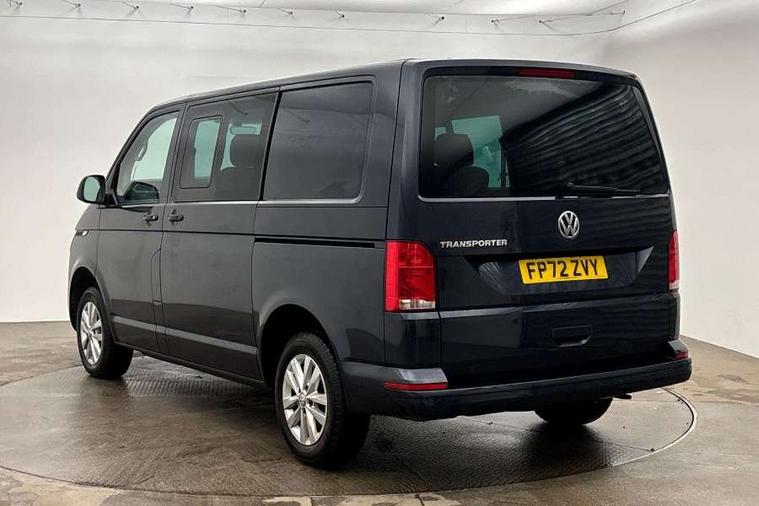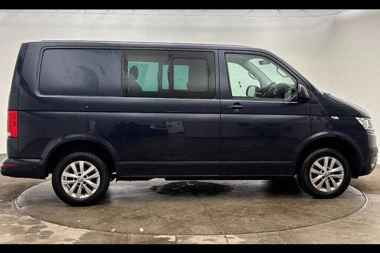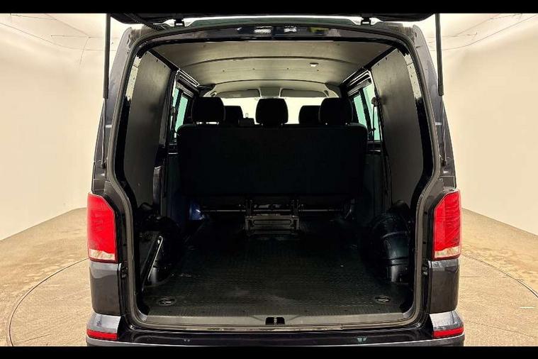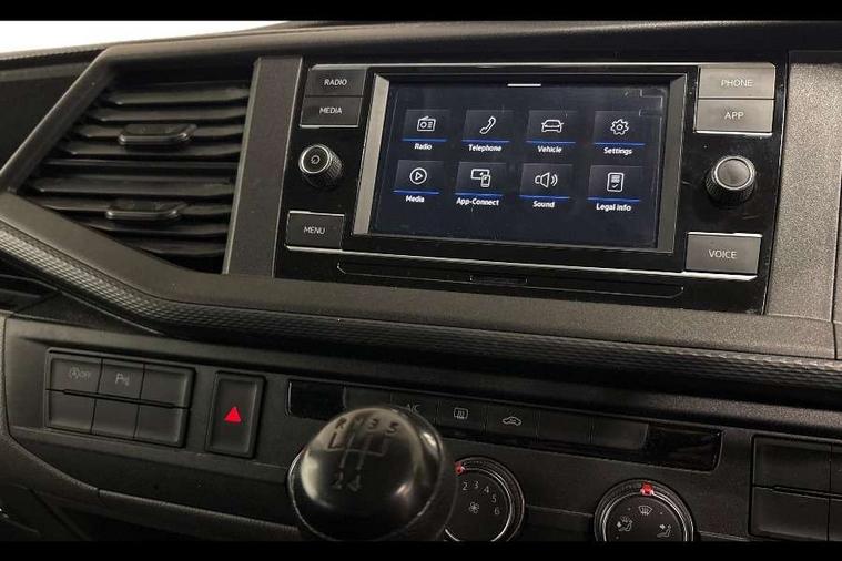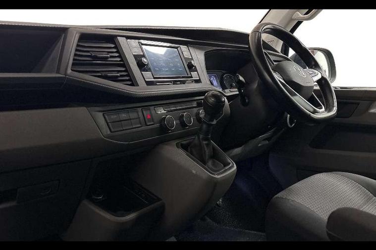 Adaptive cruise control, Child seat anchors ISOFIX and top tether in 2nd row of seats, Cross wind assist, Dimmable illuminated instruments, Driver alert with black and white multi function display plus, eCall emergency system, Forward collision warning front assist with autonomous emergency braking, Headlight range control, Mobile phone interface, Without voice control, 2 USB interfaces type C in dashboard, 4 speakers with 2 tweeters and 2 woofers, Composition colour radio with 6.5" touchscreen, Digital radio reception (DAB+), Volkswagen app connect, Automatic headlight control, leaving home and manual coming home feature, Front fog lamps with cornering light, Green heat insulating glass, Heated front windscreen, Illuminated steps in passenger/load compartment, Left convex exterior mirror, Power folding adjustable door mirrors with separately heated, Privacy glass from the B-pillar and heat-insulating glass in front, Radiator grille with 2 chrome trims, Rear window with heated insulating glass, heated rear window wiper and washer system, Right convex exterior mirror, Tailgate closing with unlatching from the inside, Transporter nameplate on the rear fender, Windshield wiper intermittent control with rain sensor for windshield wipers, Without adhesive film, 3 spoke leather wrapped multi function steering wheel, Additional sound deadening measures in cab and passenger compartment, Auto dimming breakaway interior rear view mirror, Comfort headliner in cab, hardboard roof trim in passenger and load compartment, Dust/pollen filter, Folding grab handles and storage compartments on cab seats, reading light, Front seats on the right in 1st row of seat, Glove compartment with illumination, Heavy duty tool kit and jack, Interior plastic loading edge protection, Lashing rings for load restraint system, LED Interior lighting in load and passenger compartment, Medium height for vehicles with window aperture hardboard side trim panels in passenger/load compartment, Refrigerant R134a, Standard lower part dashboard in palladium, Without partition, Without seats in 3rd row of seats, Comfort pack - Transporter, Exterior pack without fog light- Transporter, Light and vision pack - Transporter, Non smoker pack - Transporter, 3 point height adjustable seat belts on outer seats cab with electric pretensioners, Driver and front passenger airbag with front passenger airbag deactivation, Power operated child safety lock, Warning buzzer and light for driver seat belt not fastened, Anti theft alarm system with interior monitoring in cab, backup horn and towing protection, Lockable wheel bolts, 16" chassis with 16" brake system, Diesel particulate filter, Electronic stability control, ABS, ASR with deactivation button, hill start assist and brake assist system, Speed limiter, Start/stop system with regenerative breaking, 16" Clayton alloy wheels, Wheel trims,