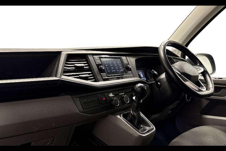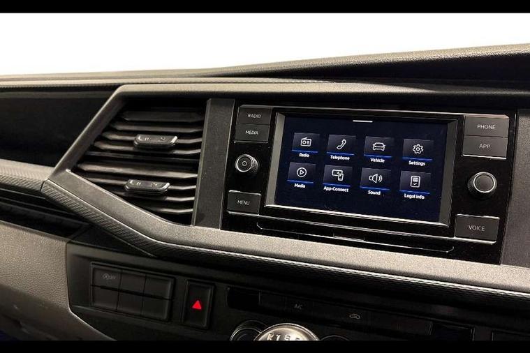 Cross wind assist, Dimmable illuminated instruments, Driver alert with Multi-function display plus, eCall emergency system, Forward collision warning front assist with autonomous emergency braking, Mobile phone interface, Multi function display plus with black and white display, 2 USB interfaces type C in dashboard, 4 speakers with 2 tweeters and 2 woofers, Composition colour radio with 6.5" touchscreen, Digital radio reception (DAB+), Volkswagen app connect, 4 stages windshield wiper intermittent control for windshield wipers, Closing rear wing door with unlatching from the inside, H7 twin halogen headlamps, Heat insulating glass (green) in cab and passenger/load compartment, Heat insulating windshield made of laminated glass, Left convex exterior mirror, Rear wing doors without window apertures, Right convex exterior mirror, Separate Daytime running lights, Transporter nameplate on the rear fender, Unpainted radiator grille with 2 chrome trims, 3 spoke leather wrapped multi function steering wheel, Comfort headliner in cab, hardboard roof trim in passenger and load compartment, Dust/pollen filter, Folding grab handles on roof frame, Front and rear left without window closed side panel in load compartment, Front seats on the right in 1st row of seat, Glove compartment without illumination, Heavy duty tool kit and jack, High partition, Interior plastic loading edge protection, LED Interior lighting in load and passenger compartment, Manual adjustable lumbar support for right single seat in 1st row seats, Standard lower part dashboard in palladium, Without breakaway interior rear view mirror, Without refrigerant, Without right side window apertures in passenger and load compartment, Non smoker pack - Transporter, 3 point height adjustable seat belts on outer seats cab with electric pretensioners, Driver and front passenger airbag with front passenger airbag deactivation, Warning buzzer and light for driver and front passenger seat belt not fastened, Without child safety lock in passenger compartment, Electronic immobiliser, Wheel bolts without wheel locks, 16" chassis with 16" brake system, Diesel particulate filter, Electronic stability control, ABS, ASR with deactivation button, hill start assist and brake assist system, Standard anti drum measures, Start/stop system with regenerative breaking,