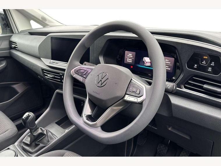 Bluetooth - Mobile phone interface, Car2X technology, Driver alert system, eCall emergency system, Intelligent Speed Assist, Lane assist, Seatbelt warning indicator, Service indicator, Start-stop system with regenerative braking, 2 USB interfaces type C in dashboard, DAB Radio, We Connect Basic Preparation, Automatic hazard light activation under emergency braking, Black front and rear bumpers, Electric front windows, Heat insulating windscreen, Roof rail preparation, Windscreen wiper with variable intermittent delay and wash-wipe system, Dimming breakaway interior rear view mirror, Electronically controlled heating system, Interior light in headliner incorporting LED technology, Lockable glove compartment door with light, Manual heating and ventilation system, Manual height adjustment for front seats, Reach and rake adjustable steering column, Six lashing points for securing loads, 3-point seat belts in front, with pretensioner and height adjustment, Driver and front passenger airbag with front passenger airbag deactivation, Tyre pressure monitoring system, Anti-theft alarm system, interior monitoring, backup horn, and towing protection, Electronic engine immobiliser, Remote central locking with deadlocks, interior locking, Anti locking braking system (ABS), Automatic post collision braking system, Autonomous Emergency Braking Front Assist with Pedestrian Monitoring, Brake assist, Diesel particulate filter, Electric parking brake with auto hold function, Electronic brake force distribution (EBD), Electronic differential lock (EDL), Electronic stabilisation programme (ESP), Engine drag torque control (MSR), Hill hold assist, Traction control system (TCS), Decorative beige birch vein inserts, Full size wheel trims,