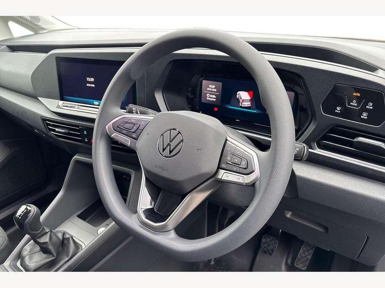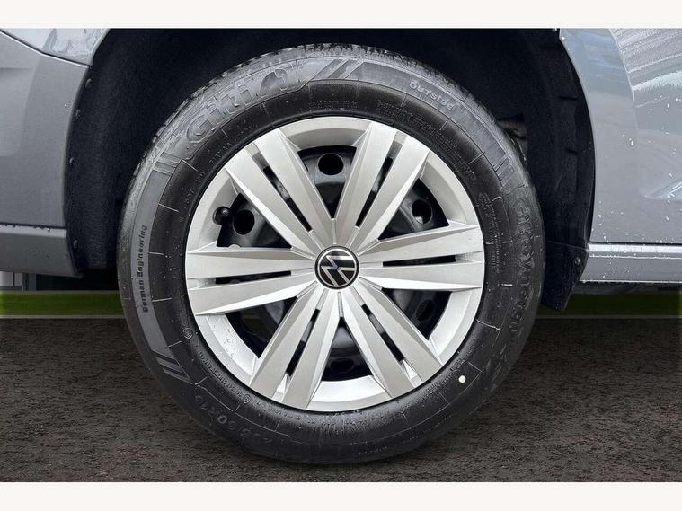 Bluetooth - Mobile phone interface, Car2X technology, Driver alert system, eCall emergency system, Intelligent Speed Assist, Lane assist, Seatbelt warning indicator, Service indicator, Start-stop system with regenerative braking, 2 USB interfaces type C in dashboard, DAB Radio, We Connect Basic Preparation, Automatic hazard light activation under emergency braking, Black front and rear bumpers, Electric front windows, Heat insulating windscreen, Roof rail preparation, Windscreen wiper with variable intermittent delay and wash-wipe system, Dimming breakaway interior rear view mirror, Electronically controlled heating system, Interior light in headliner incorporting LED technology, Lockable glove compartment door with light, Manual heating and ventilation system, Manual height adjustment for front seats, Reach and rake adjustable steering column, Six lashing points for securing loads, 3-point seat belts in front, with pretensioner and height adjustment, Driver and front passenger airbag with front passenger airbag deactivation, Tyre pressure monitoring system, Anti-theft alarm system, interior monitoring, backup horn, and towing protection, Electronic engine immobiliser, Remote central locking with deadlocks, interior locking, Anti locking braking system (ABS), Automatic post collision braking system, Autonomous Emergency Braking Front Assist with Pedestrian Monitoring, Brake assist, Diesel particulate filter, Electric parking brake with auto hold function, Electronic brake force distribution (EBD), Electronic differential lock (EDL), Electronic stabilisation programme (ESP), Engine drag torque control (MSR), Hill hold assist, Traction control system (TCS), Decorative beige birch vein inserts, Full size wheel trims,