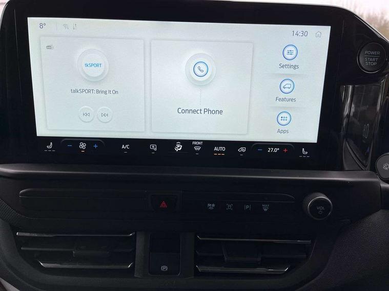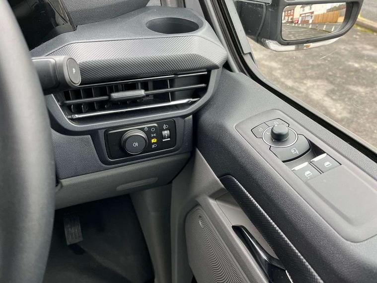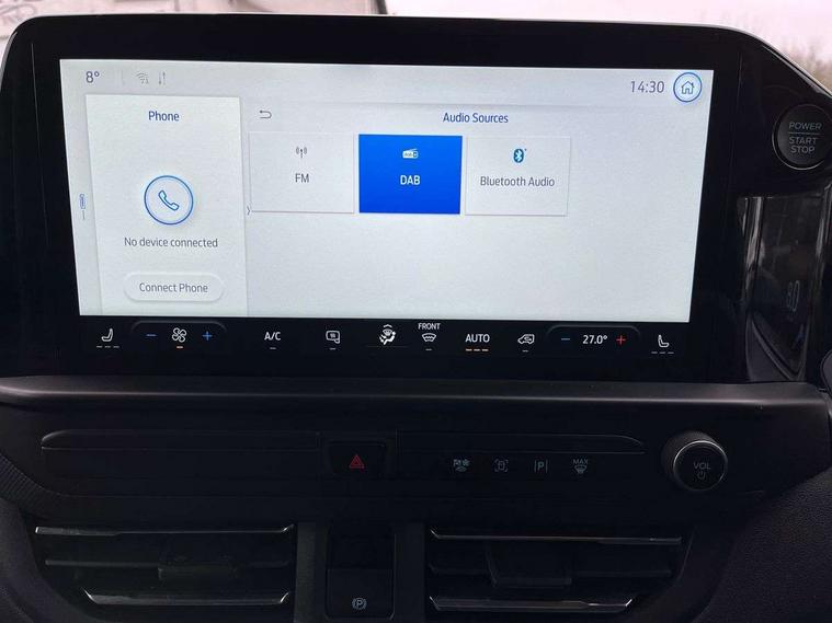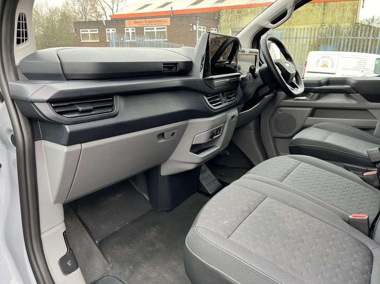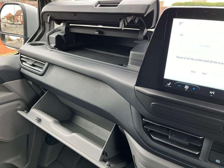 13" Touchscreen, 5G embedded modem, AECS NO SMS/Roll Detect 2G, PAS, Tyre pressure monitor, SYNC 4 - Android Auto/Apple Car Play, advance speech recognition, over the air update capability, Automatic headlights, Automatic windscreen wipers, Body coloured door mirrors, Body coloured front bumper, Body coloured rear bumpers, Daytime running lights, Electric front windows with one touch facility for driver and front passenger, Front mud flaps, Front splash guards, Low roof line, Quickclear front window defroster, Rear cargo hinged door, Rear splash guards, Trailer sway control, 6 Load compartment tie down loops, Courtesy light, Interior grab handle with driver's sunglasses holder, LED lights, Locking glove box lid, Sensico gearshift knob, 2 remote keys, Alcohol Interlock wiring preparation pack, Keyless entry and start, Locking wheel lug nut, Thatcham category 1 alarm, 20L AdBlue tank, ABS, Diesel particulate filter, ESP, Hill launch assist, Traction control, Full wheelcovers,
