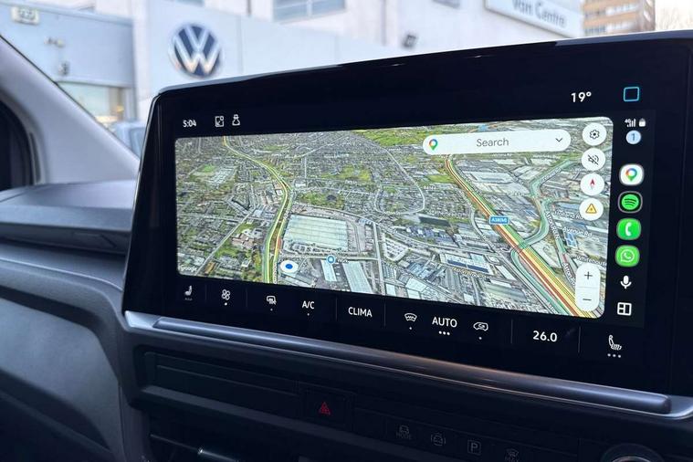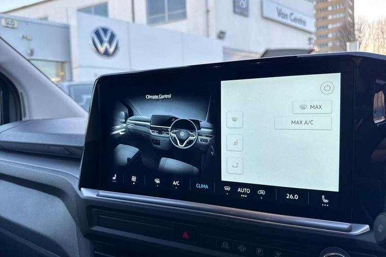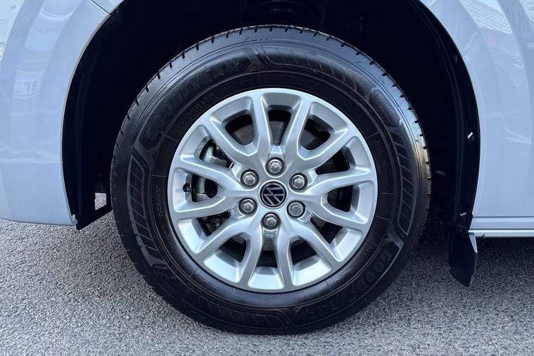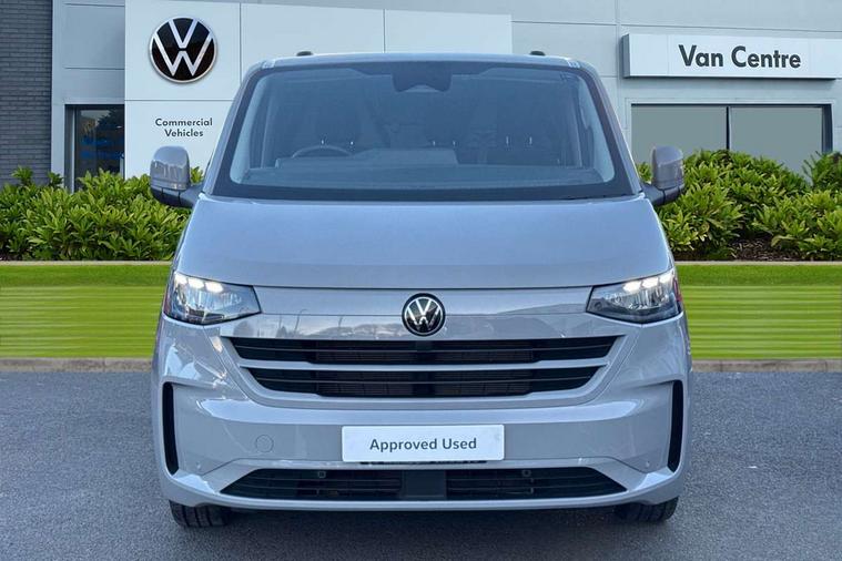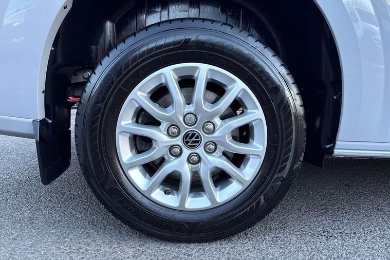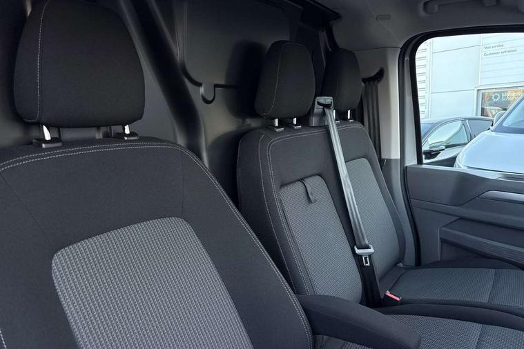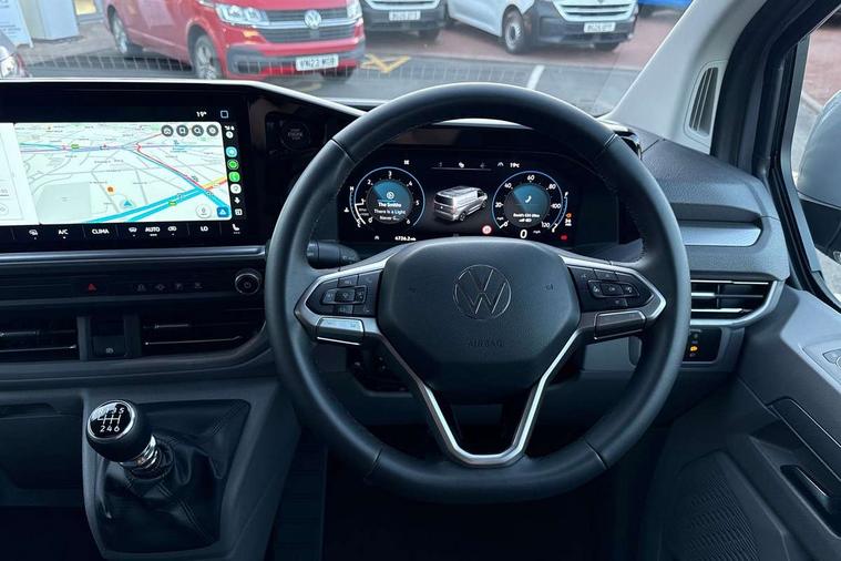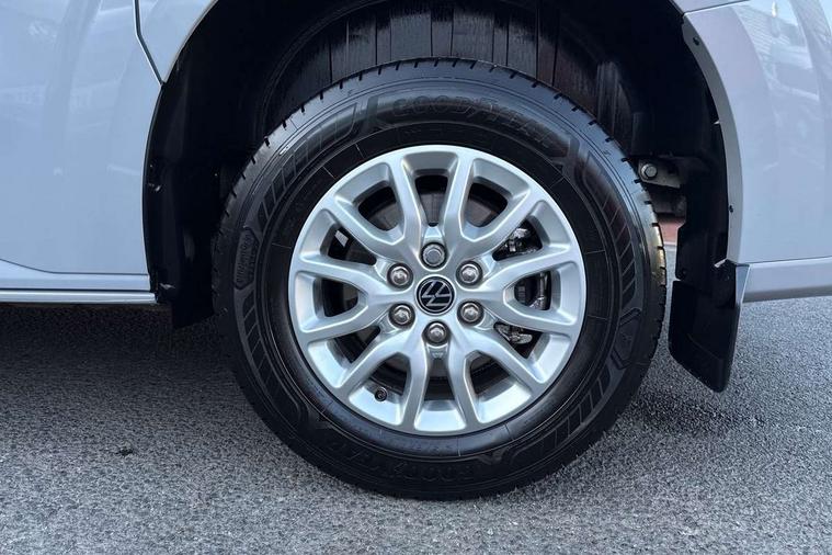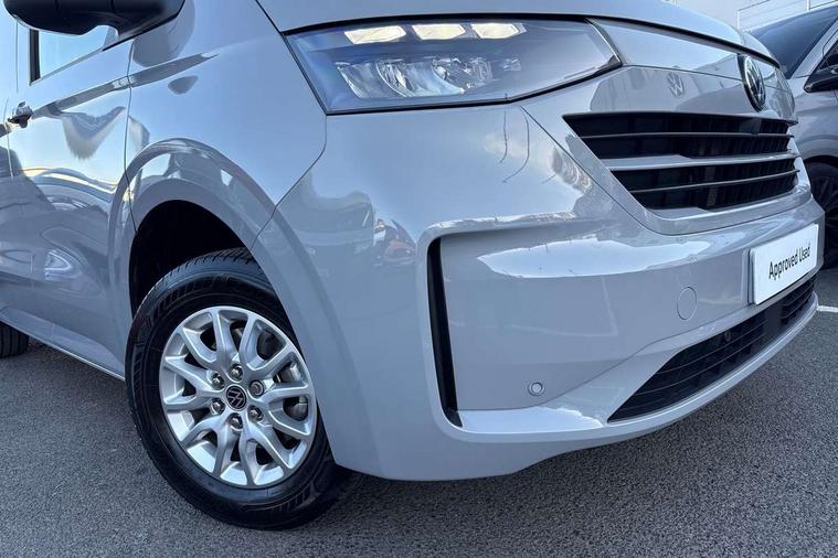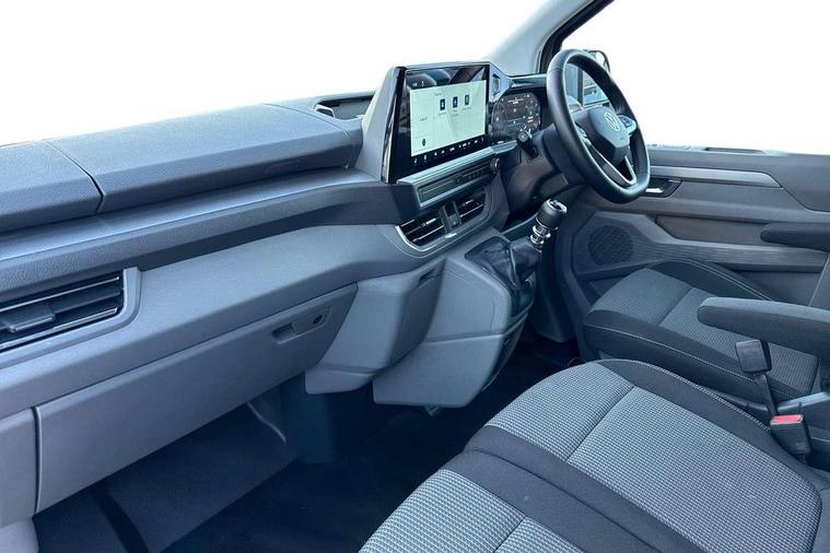12" digital drivers display, 13" touchscreen infotainment display with wireless app connect and DAB radio, 5G Modem, Adaptive cruise control, Apple CarPlay and Android Auto, Dynamic road sign display, eCall emergency system, Electromechanical speed sensitive power steering, height and longitudinally adjustable steering column, Lane and blind spot assist with exit warning system, Preparation of VW connect and connect plus, Wireless mobile phone charging, Wrong way driver warning, Body colour bumpers, Body coloured door handles, Body coloured door mirrors, Body coloured radiator grille, Electrically heated, adjustable and folding door mirrors, Heat reflecting side window glass, Mud flaps front and rear, Rear Transporter nameplate in black grained decorative trim, Vehicle opening configuration 1x 1st row of seats, 2x all doors, 12V outlet in centre console and 12V outlet on rear right D-pillar, 2x 15-W USB data/charging ports in dashboard and 1x USB-C, 1x USB-A center bottom, 2x LED lights in load compartment, 3x additional super bright LED lights in load compartment, 4 way height and tilt adjustable head restraints, 5 additional USB-C charging ports, Black plastic scuff plate for sliding door in cargo without illumination, Cabin interior lighting, Glasses compartment in driver side roof, Grab handle on A-pillar passenger side, Illuminated lockable glovebox, Lashing rings for reinforced floor covering, Leatherette gear lever, Narrow centre console with cup holder and compartment for mobile phone, Overhead storage compartment, Rubber floor covering in cab, Striped fabric upholstery, Without passenger seats in load compartment, Driver and front passenger airbag with front passenger airbag deactivation, Dual tone horn, Front and curtain airbags for driver and front passenger, Seat belt pretensioner for driver seat, Anti theft alarm system with interior monitoring in cab, backup horn and towing protection, Electronic immobiliser, Lockable wheel bolts, Preparation for alcohol ignition interlock, 5+ Promise, Alternator - 230A, Electromechanical brake booster, Electronic stability control, ABS, ASR with deactivation button, hill start assist and brake assist system,
